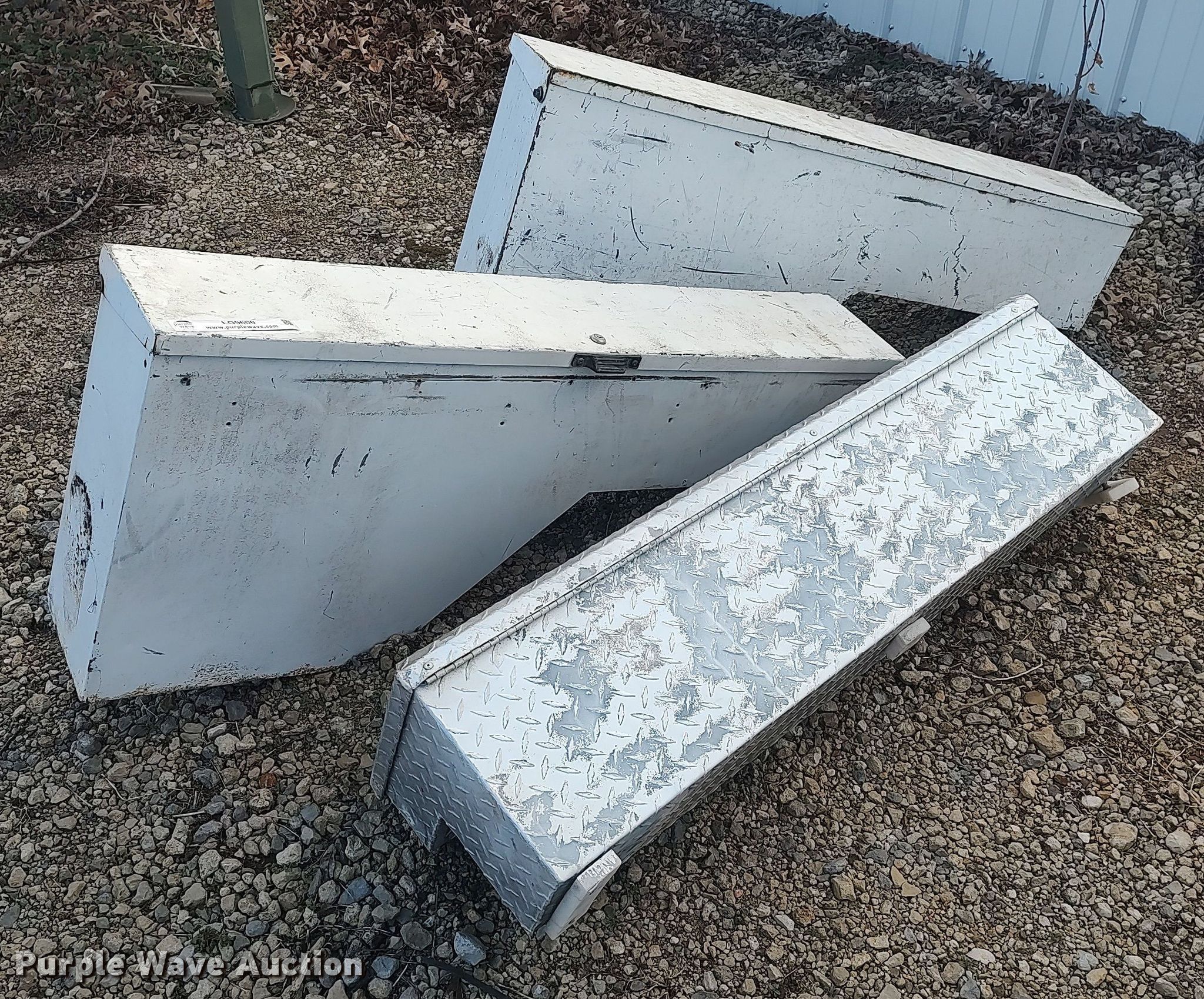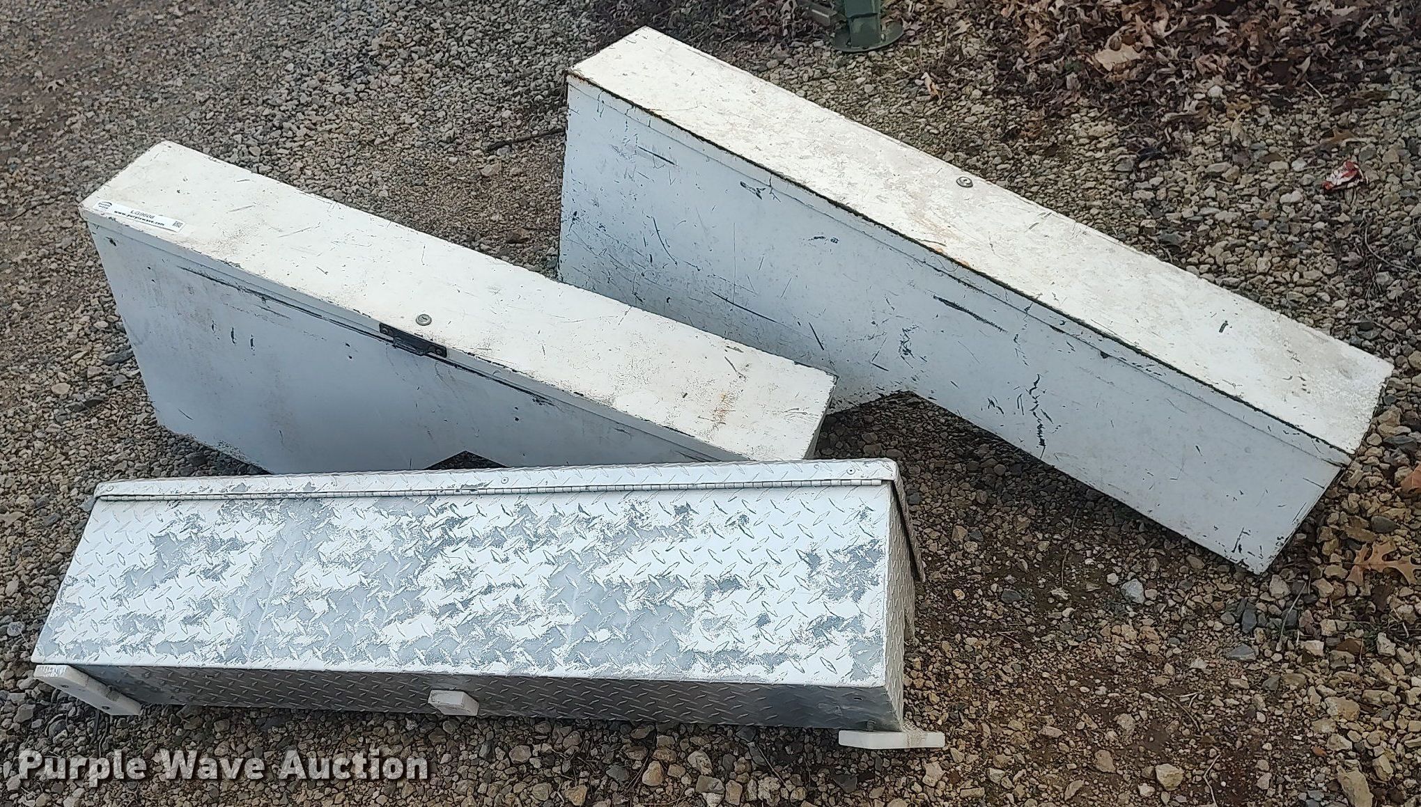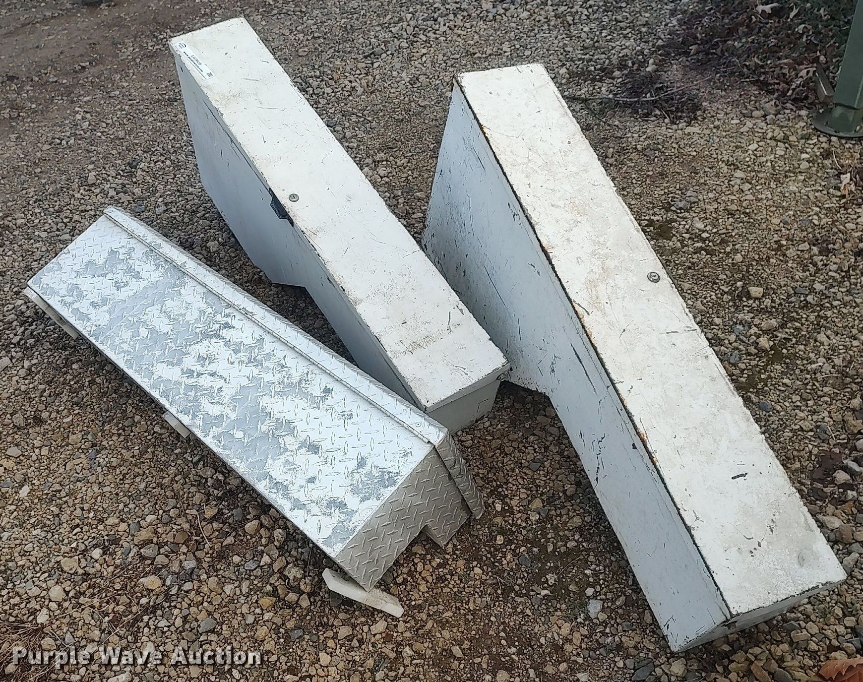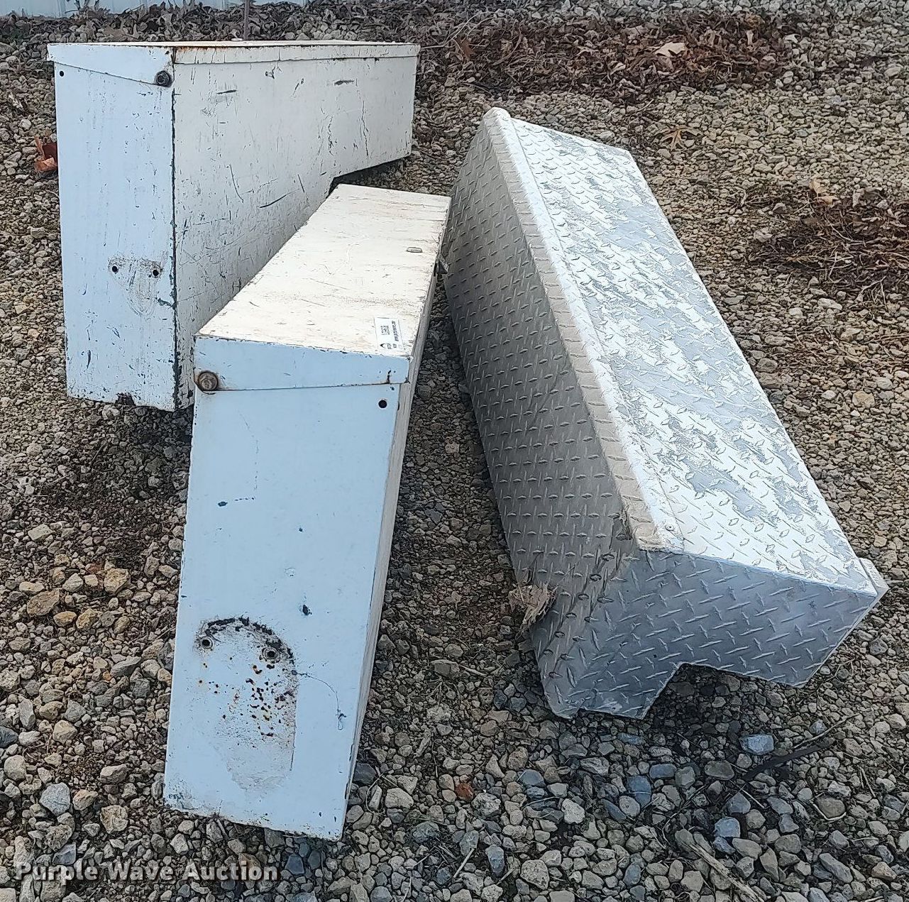 Purple Wave is selling a used Automotive Parts or Acces. in Kansas. This item is a (3) toolboxes with the following: UWS side-mounted box, (2) wheel well boxes