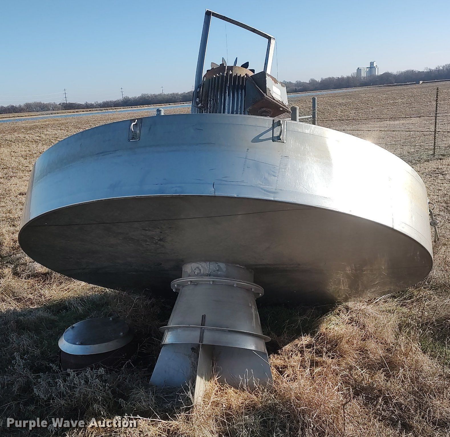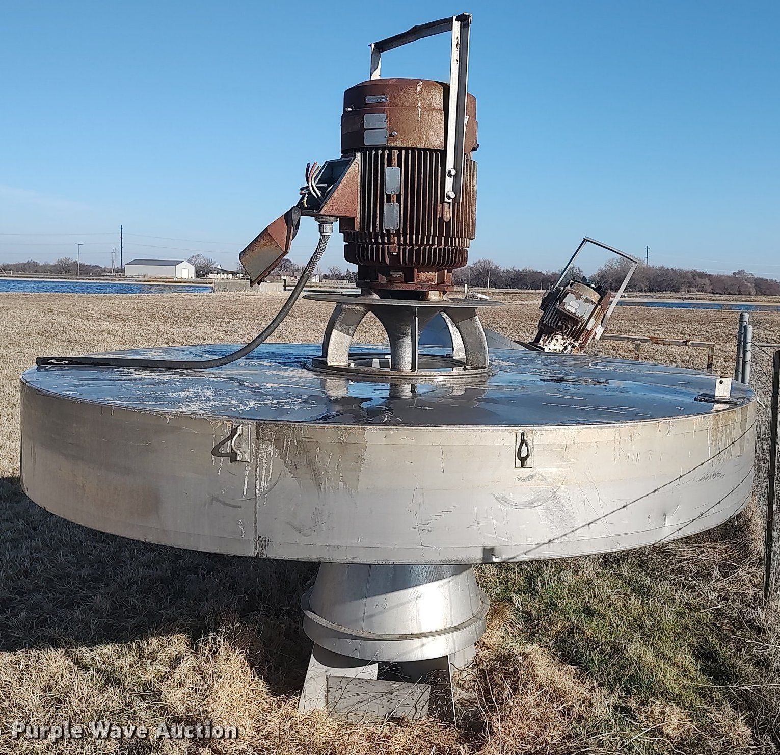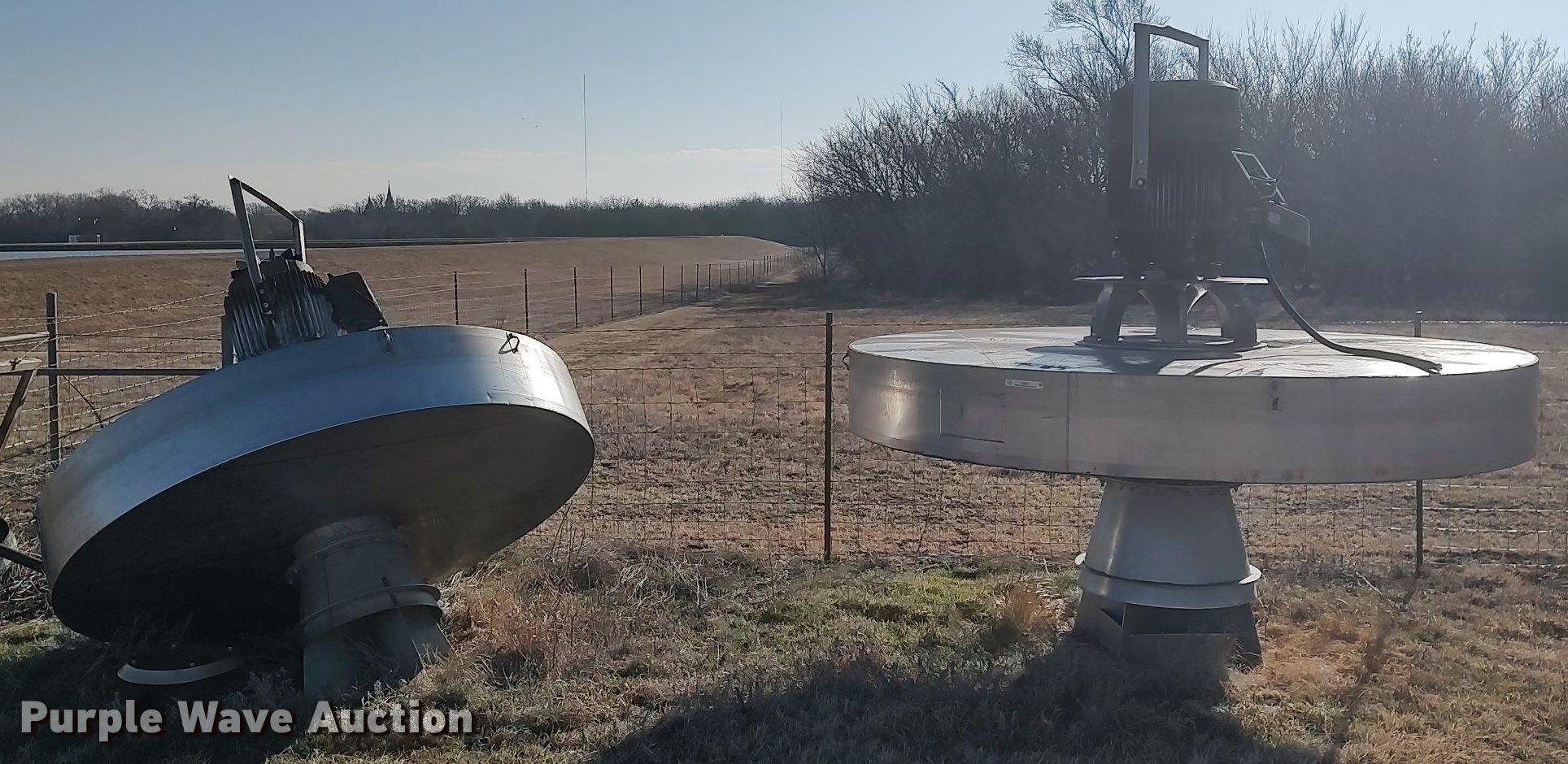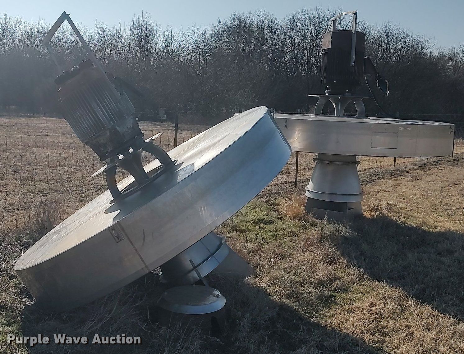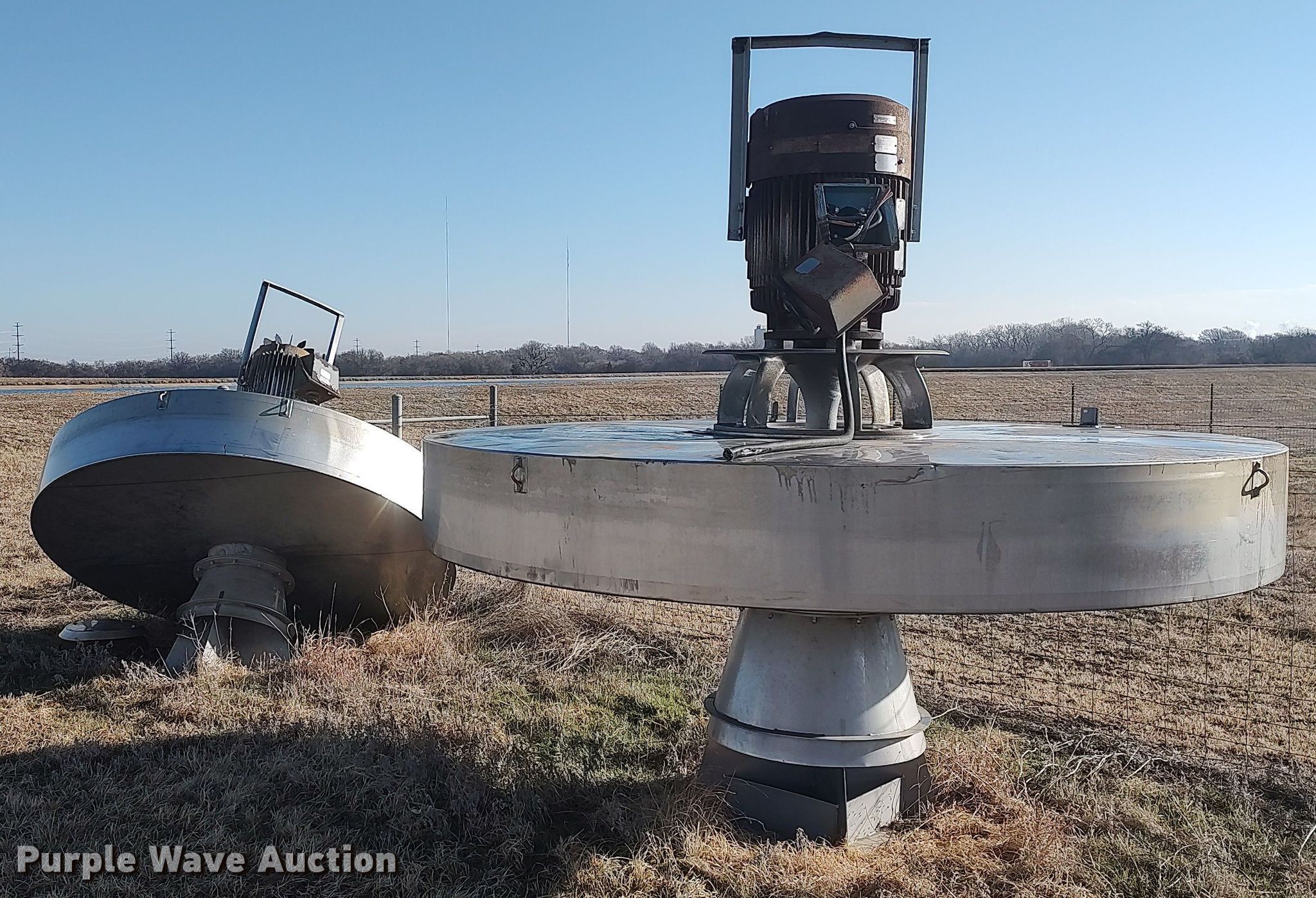 Purple Wave is selling a used Other Industrial or Business in Kansas. This item is a (2) Aqua-Aerobic Aqua-Jet surface aerators with the following: 112" diameter, Serial 8146, Centuar electric motor, 75 HP, Three phase, 94" diameter, Serial 20715, Reliance electric motor, 50 HP, Three phase