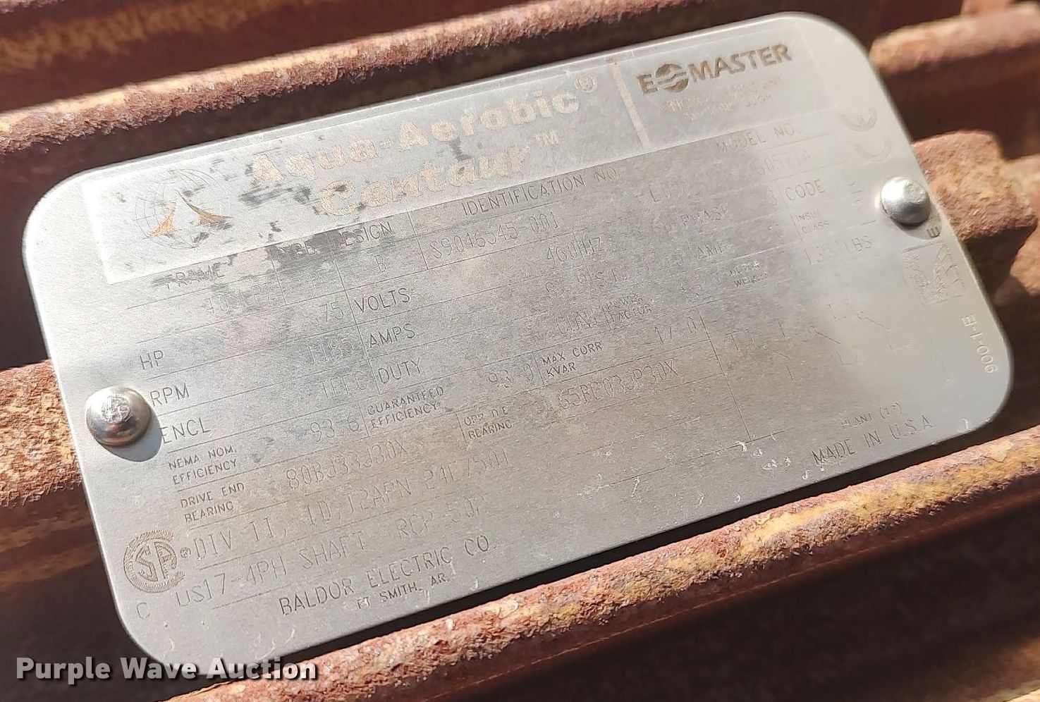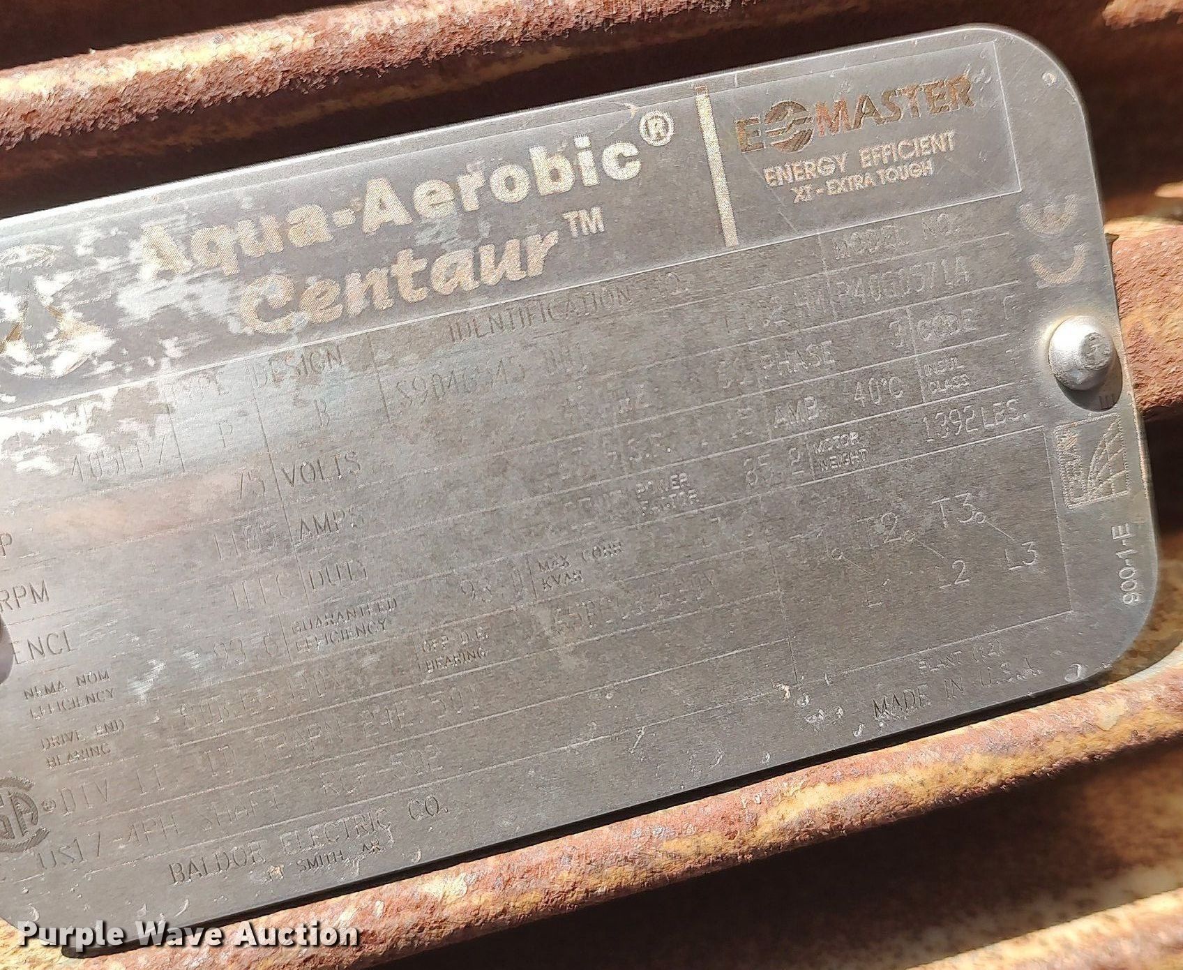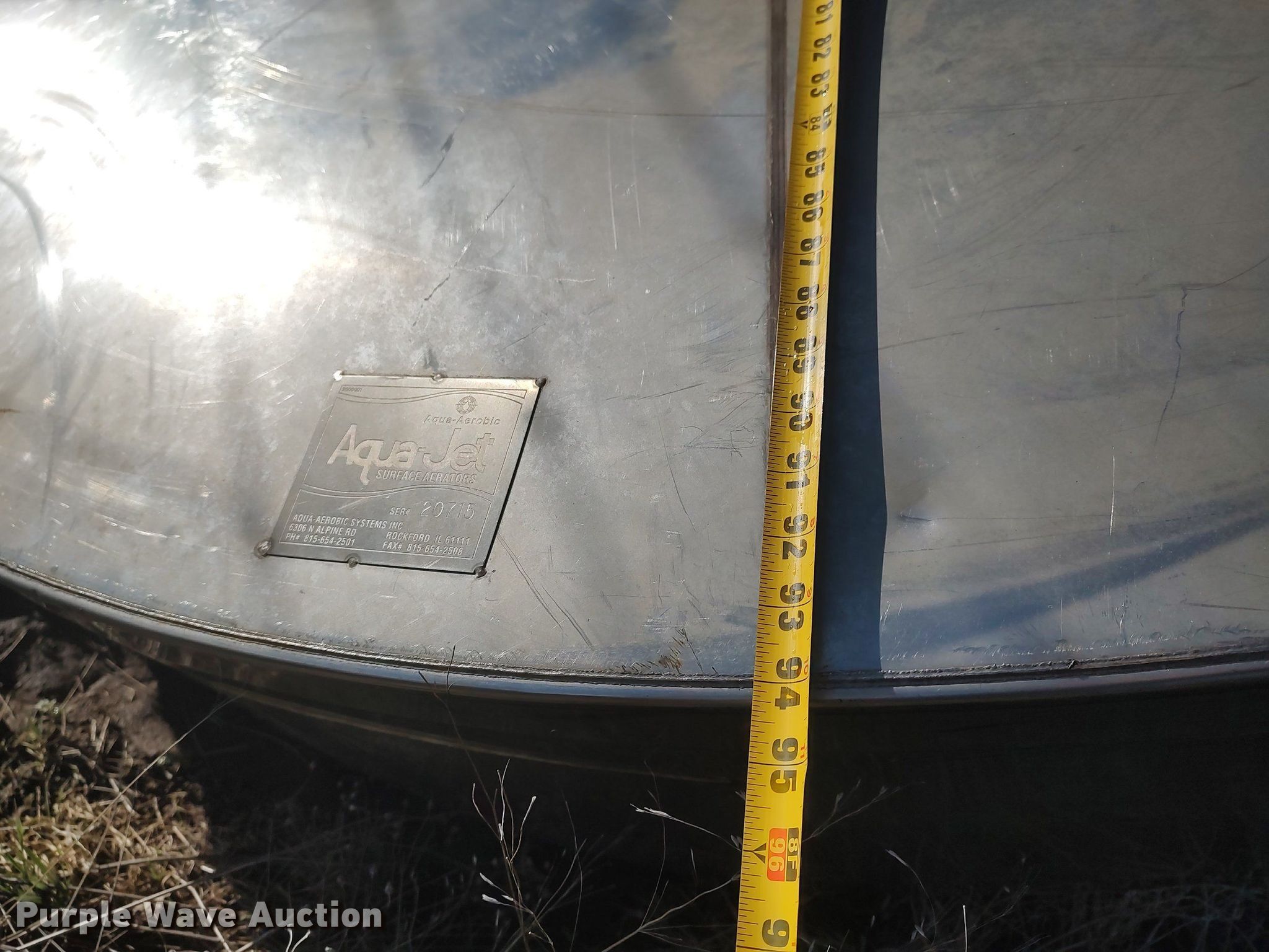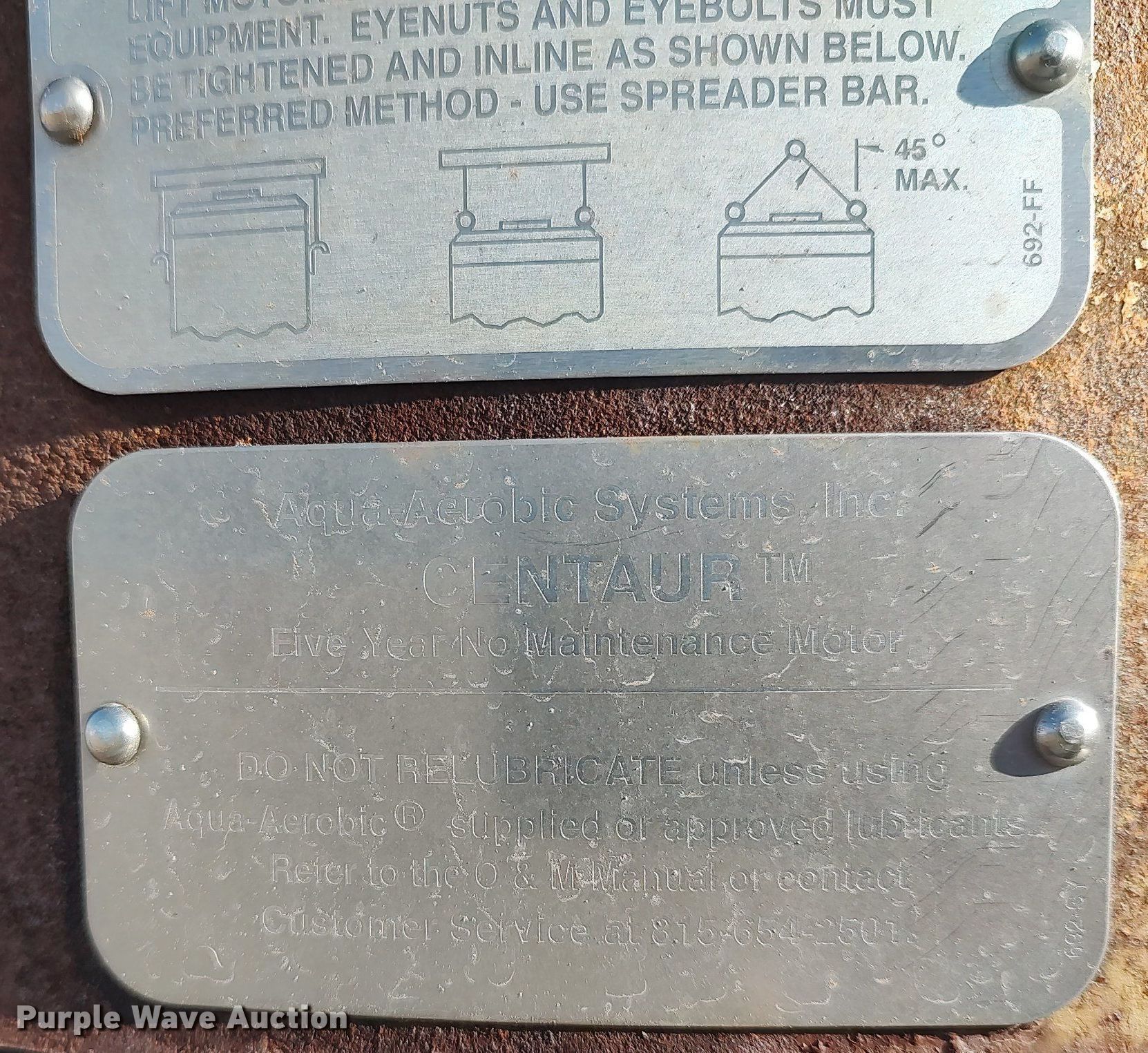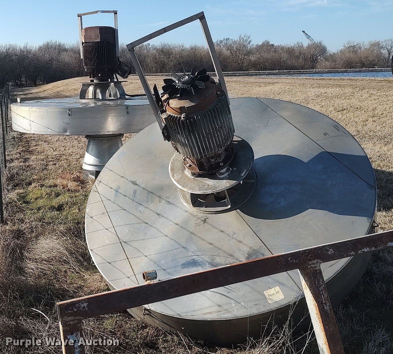 Purple Wave is selling a used Other Industrial or Business in Kansas. This item is a (2) Aqua-Aerobic Aqua-Jet surface aerators with the following: 112" diameter, Serial 8146, Centuar electric motor, 75 HP, Three phase, 94" diameter, Serial 20715, Reliance electric motor, 50 HP, Three phase