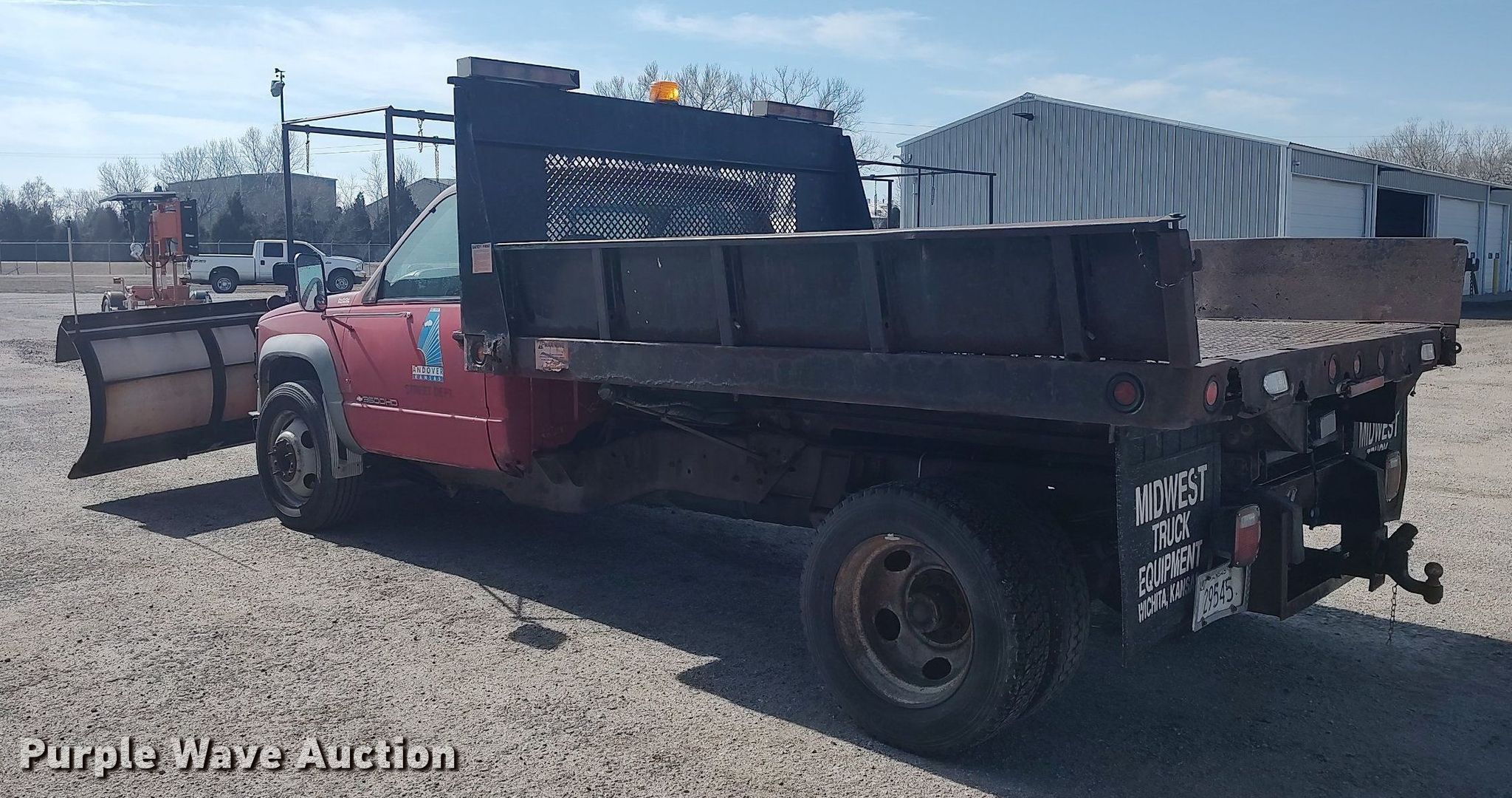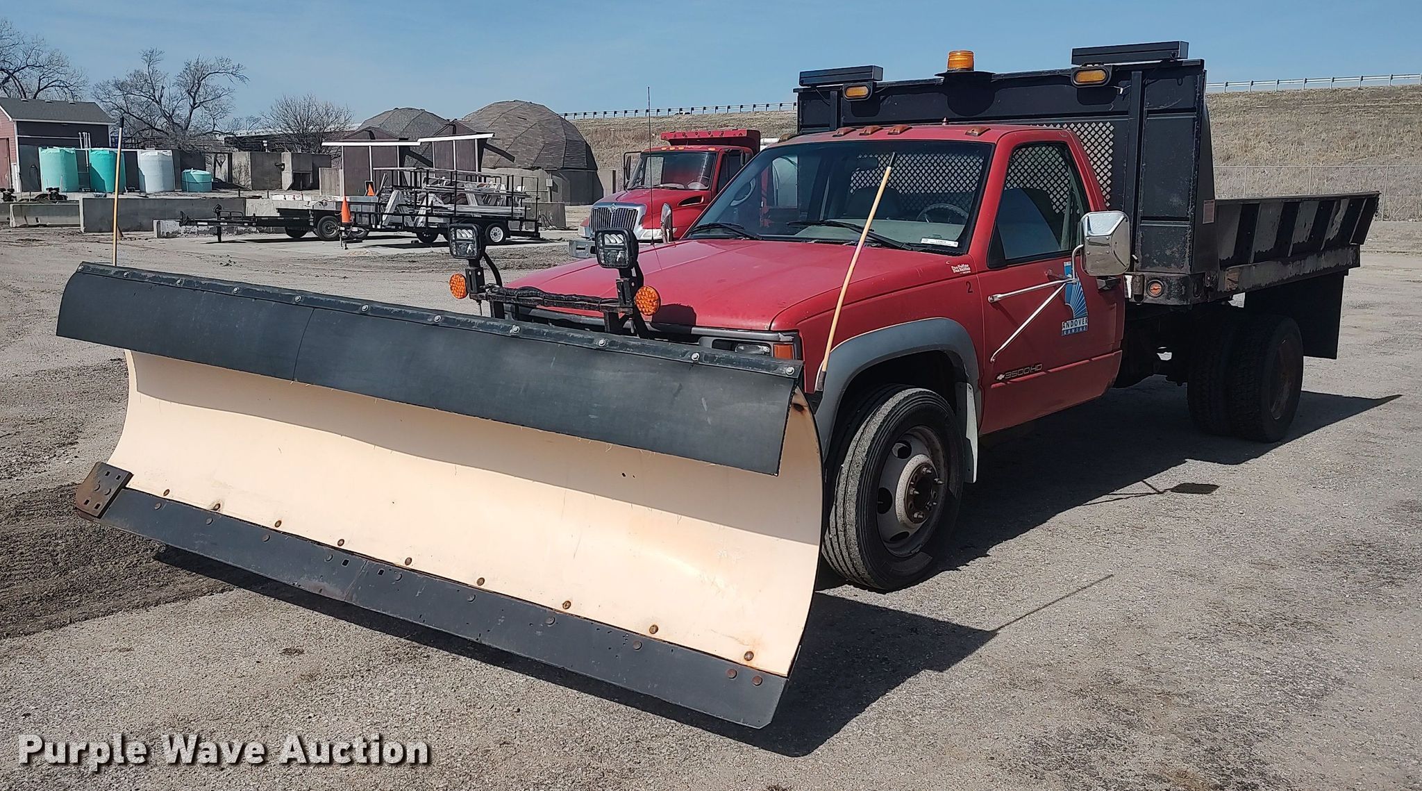 1996 Chevrolet C3500 dump flatbed pickup truck. Miles: 89,688 on odometer, VIN: 1GBKC34F8TJ109616. Engine Displacement: 6.5L V8 OHV, Cylinders: 8, Fuel type: Diesel. Transmission Automatic. Interior AC, Heat. Features Dump flatbed 9' 8" L x 96" W, Snow plow Width: 10'. Tires Size: 225/70R19.5. Notes Dash warning indicator: Service engine soon. Kansas title. Title distribution may be delayed up to 14 days from verification of funds. 1606 N Andover Rd. Andover, KS 67002