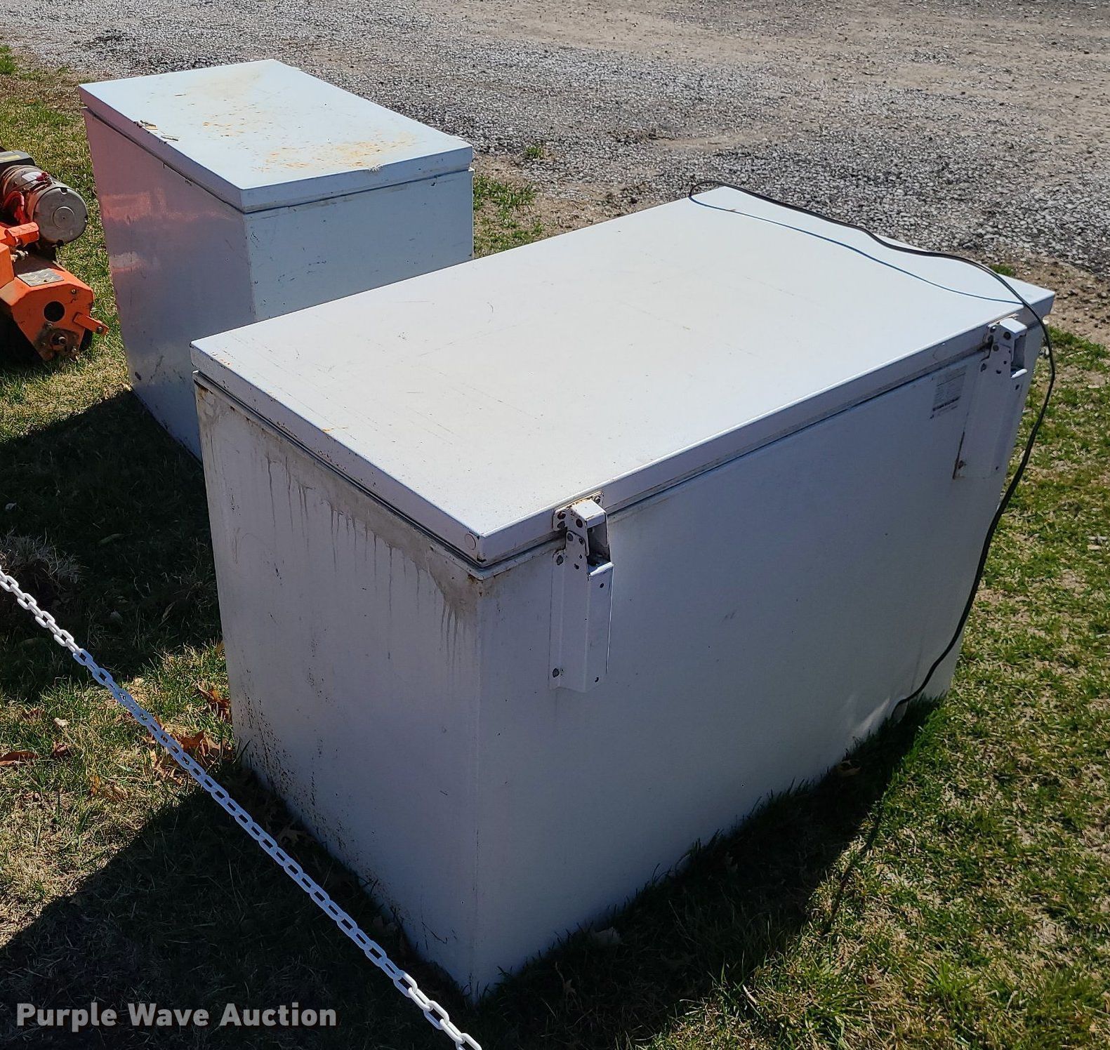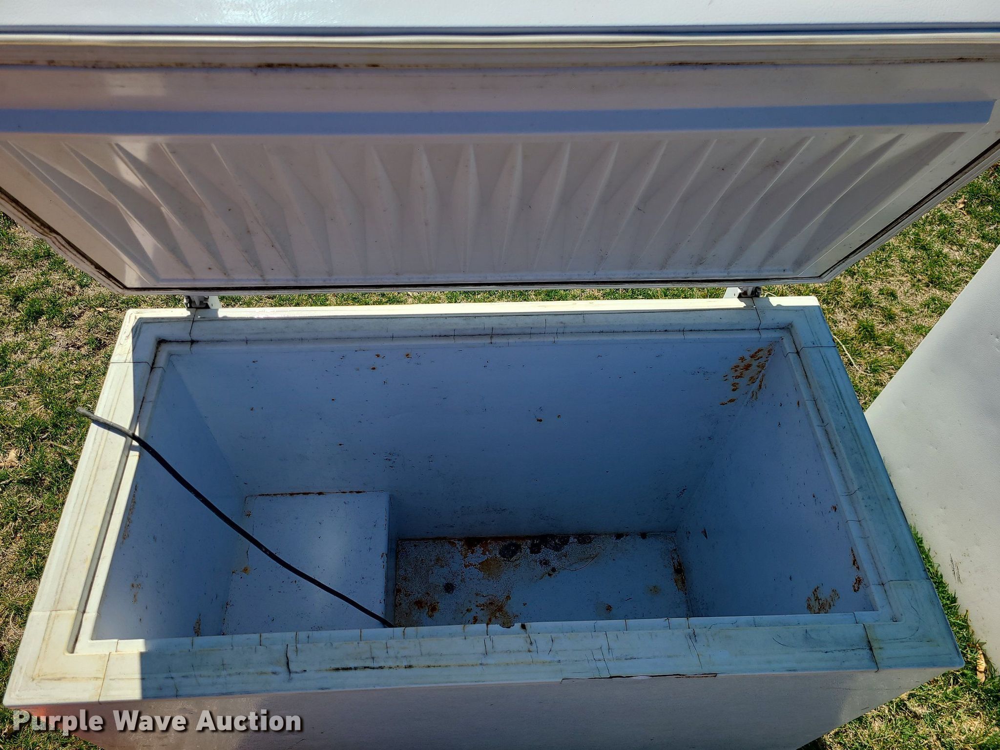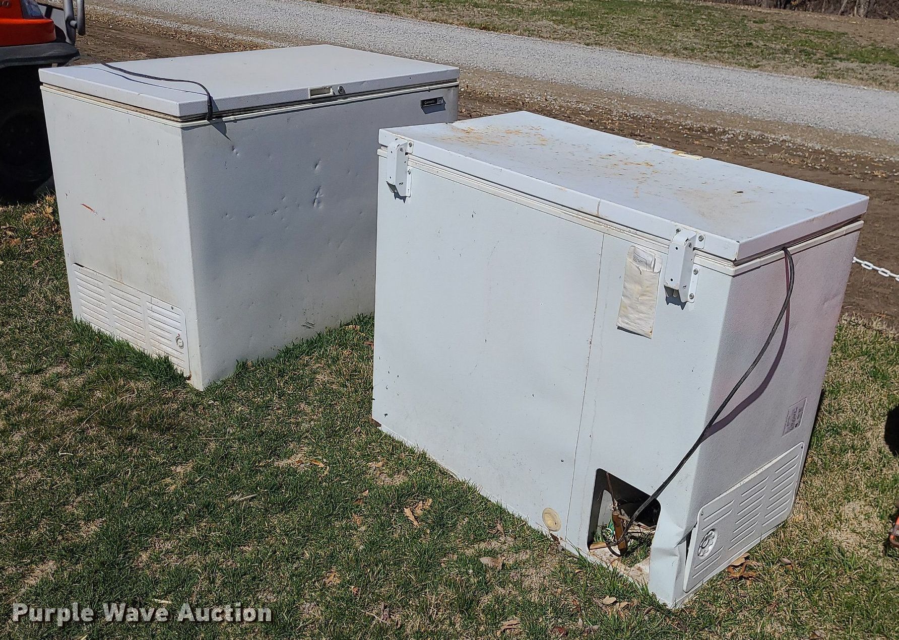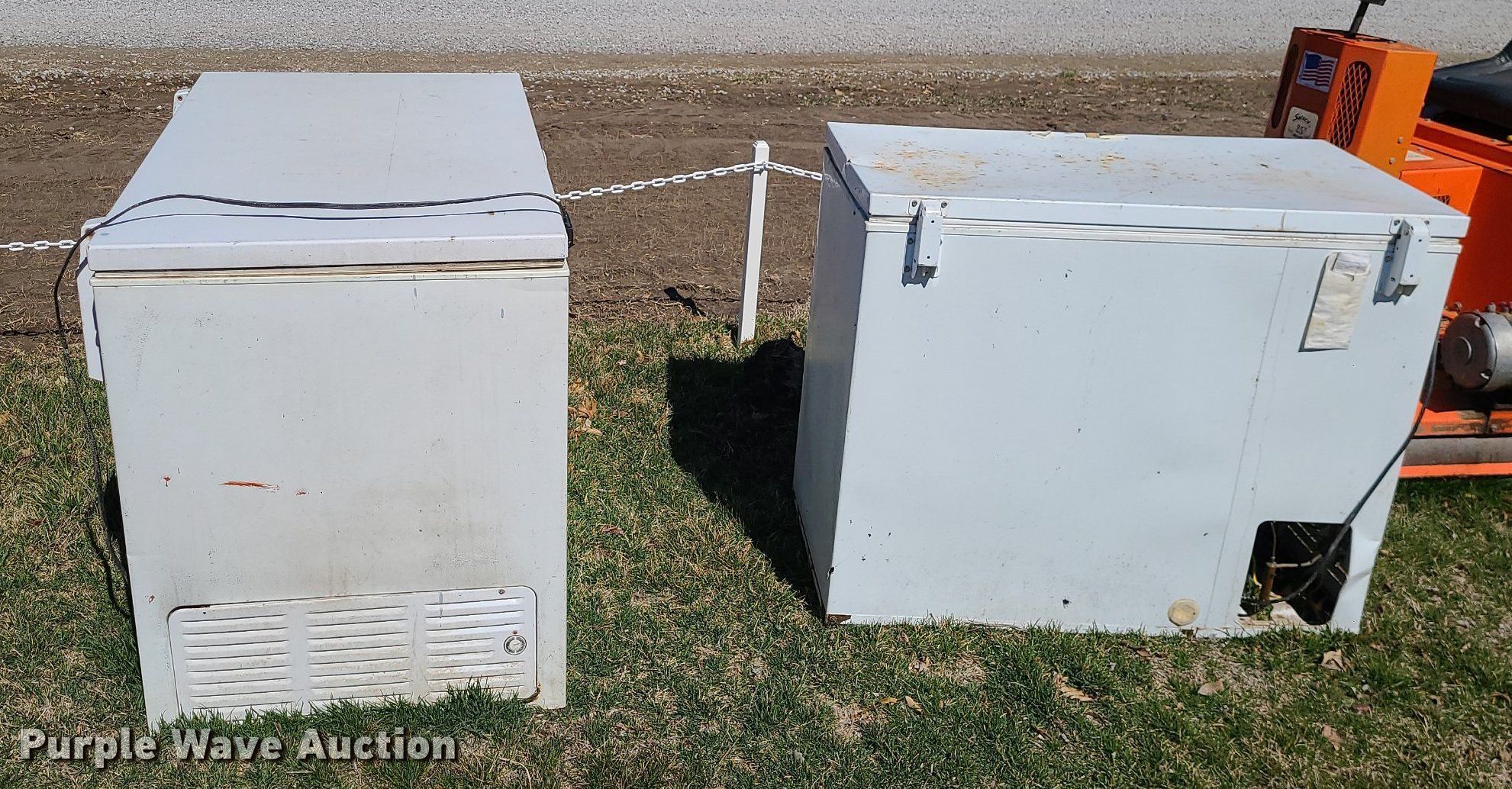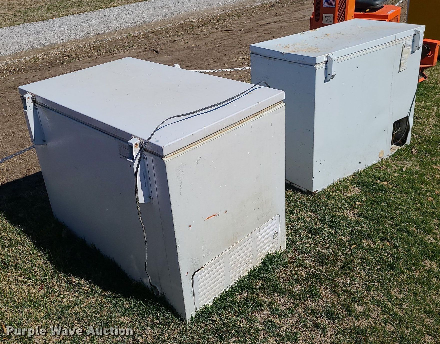 Purple Wave is selling a used Appliances in Missouri. This item is a Appliances with the following: (2) chest freezers, Cooling table, Storage box, Unknown operating conditions