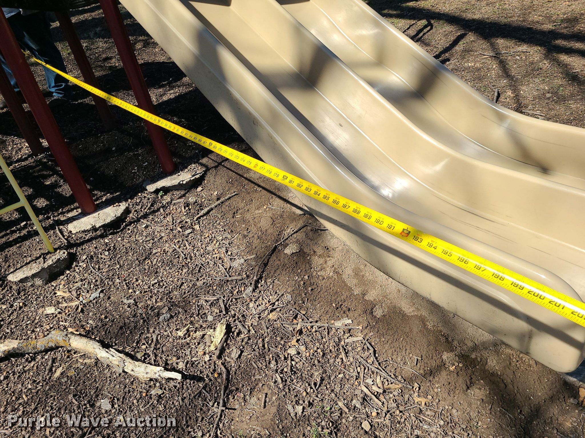 Purple Wave is selling a used Sporting Goods in Missouri. This item is a Playground equipment with the following: 17' x 19', Slide, (2) climbers, Ladder