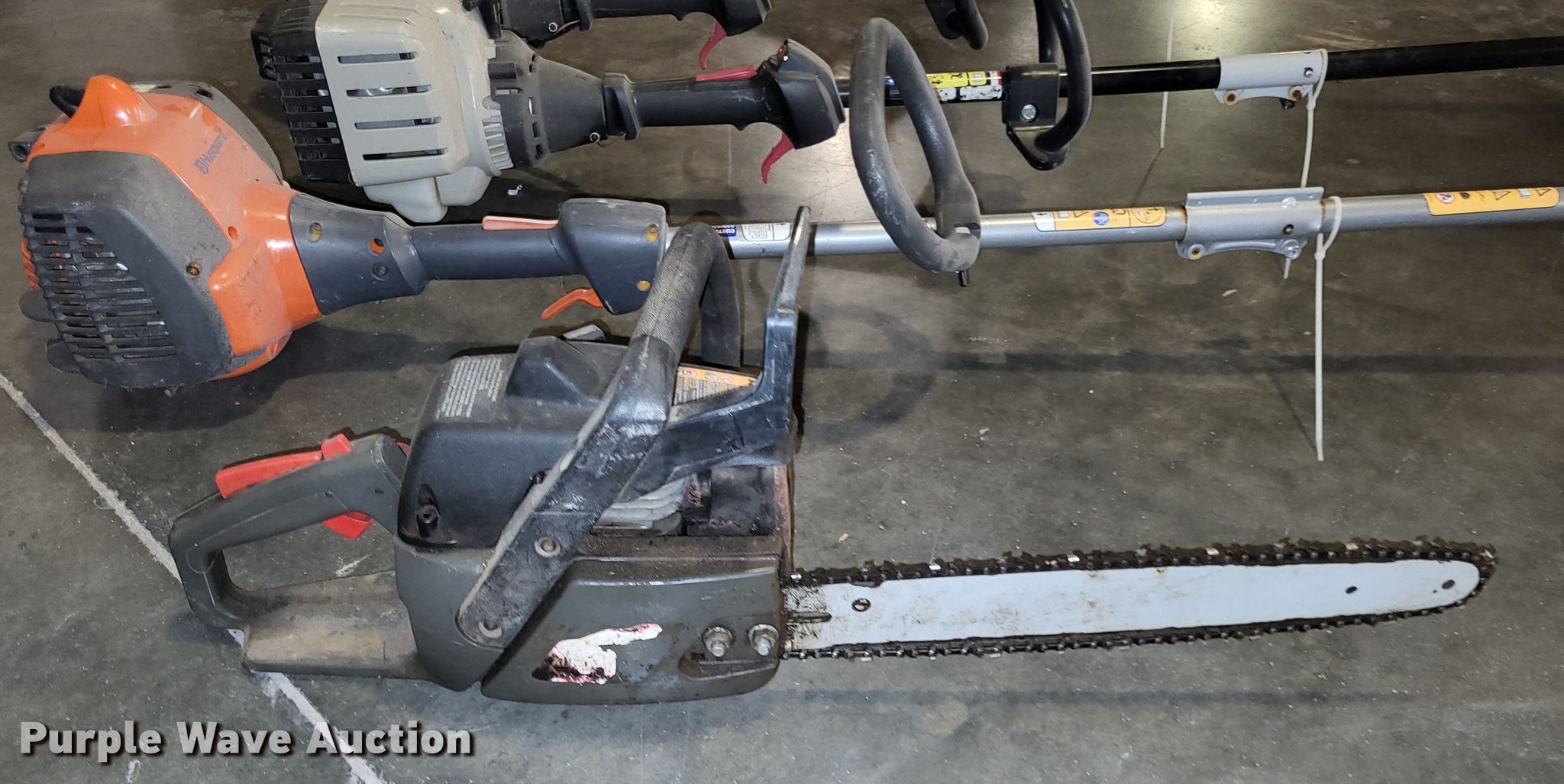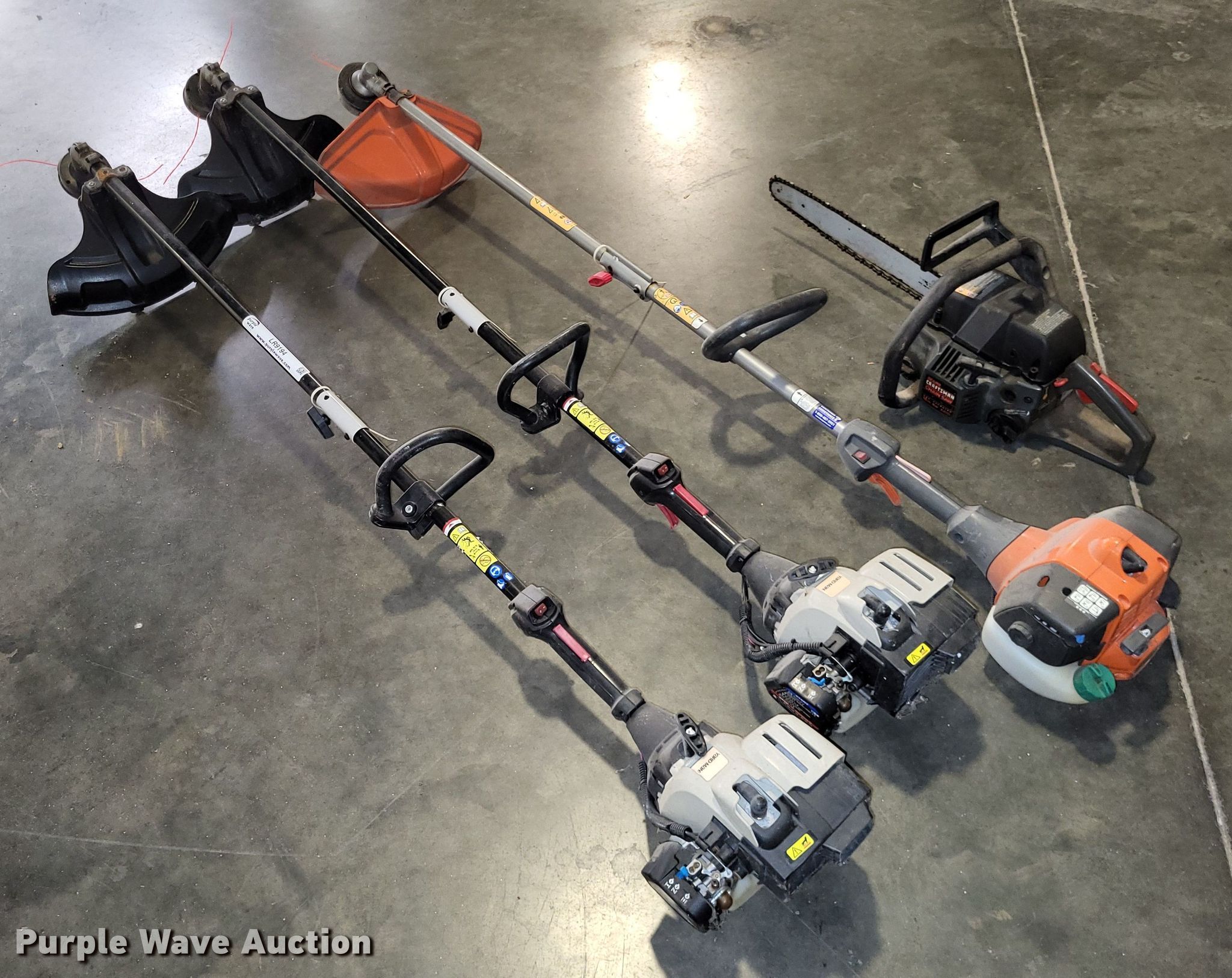 Purple Wave is selling a used Lawn and Garden in Missouri. This item is a Lawn and garden equipment with the following: (2) Yard Man string trimmers, Gas engine, Husqvarna 128LD string trimmer, Gas engine, Craftsman chainsaw, Gas engine, 16" bar
