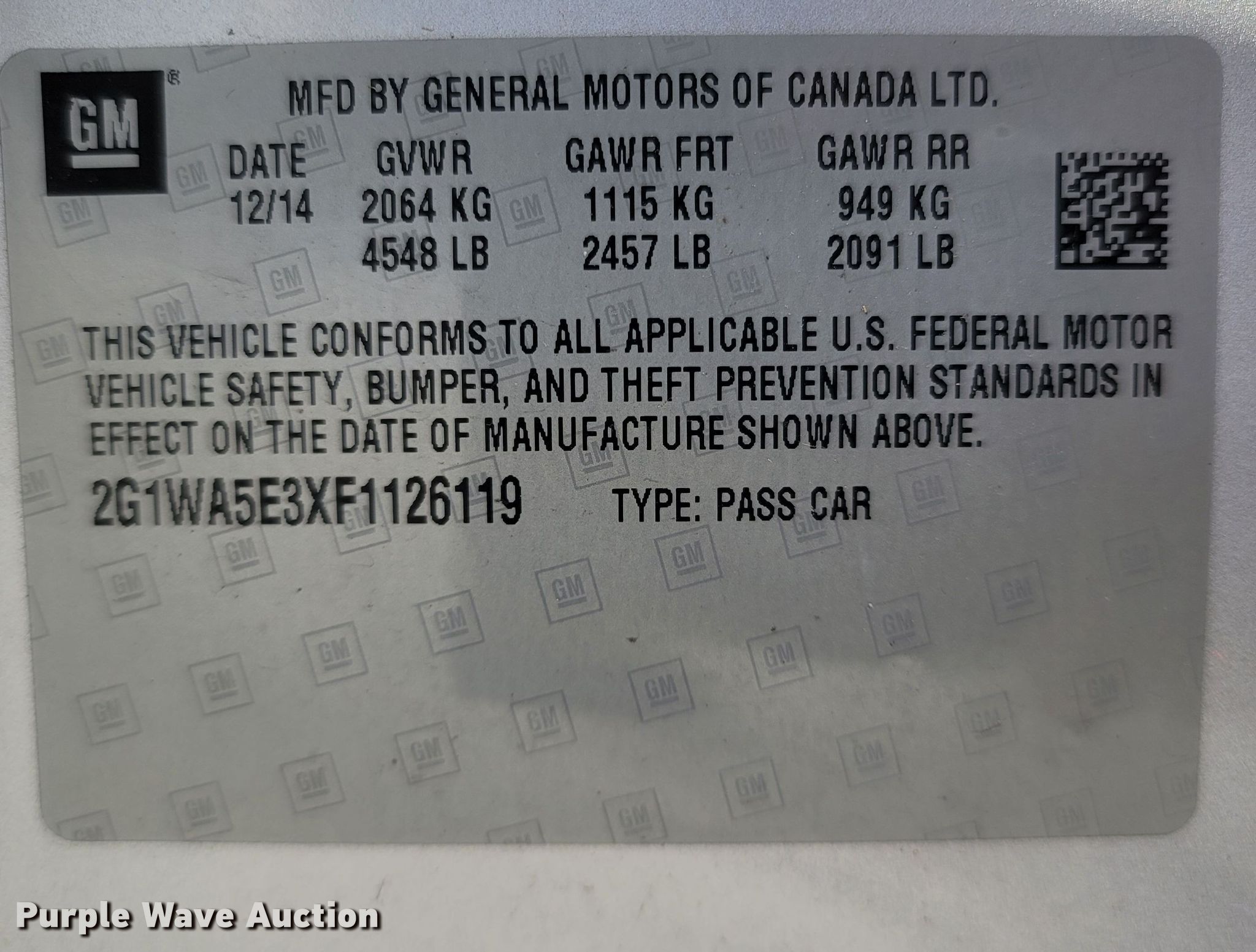 Purple Wave is selling a used Passenger Vehicle in Missouri. This item is a 2015 Chevrolet Impala with the following: Miles: 90,855 on odometer, VIN: 2G1WA5E3XF1126119