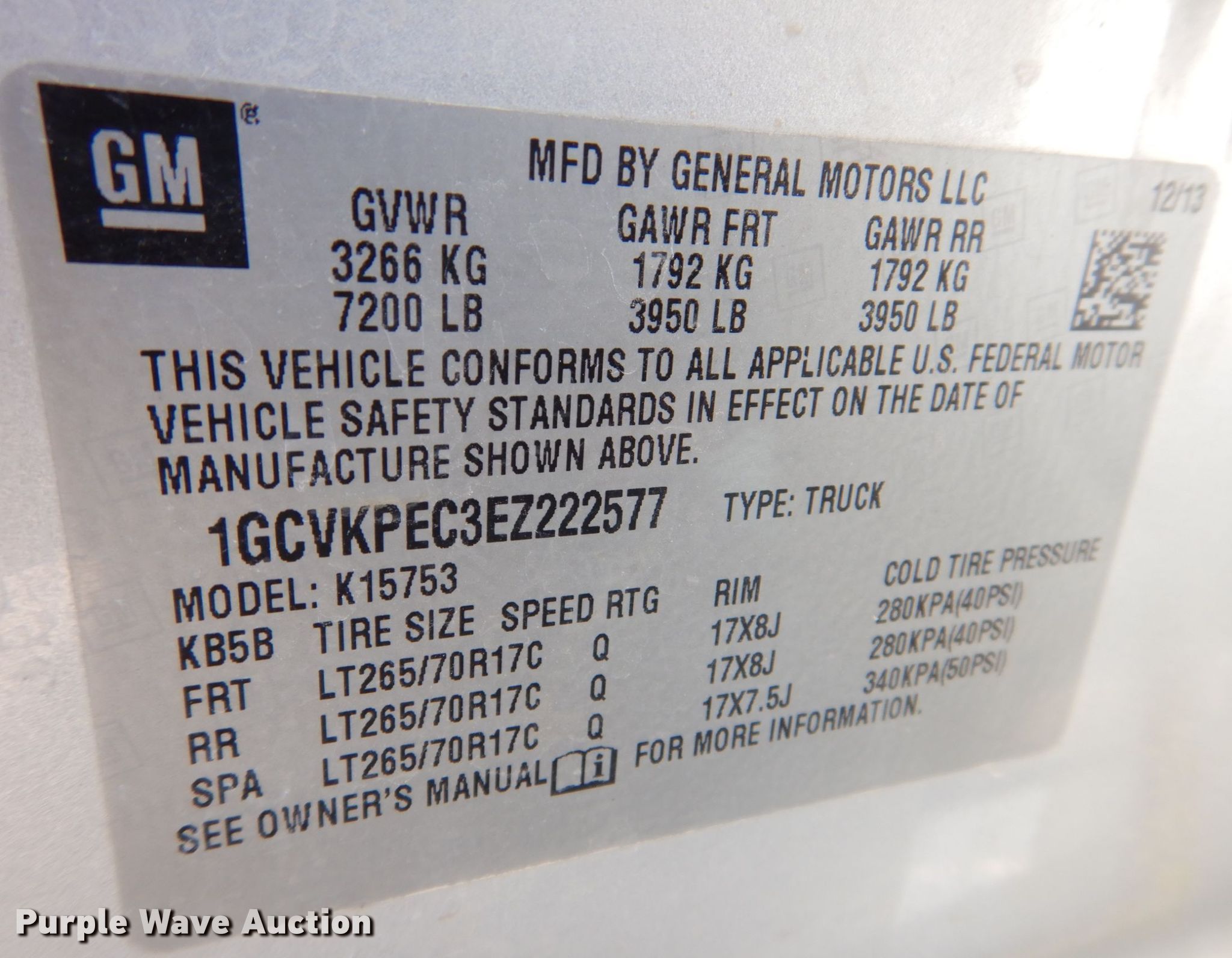 2014 Chevrolet Silverado 1500 Double Cab pickup truck. Miles: 129,805 on odometer, Hours: 10,048 on meter, VIN: 1GCVKPEC3EZ222577. Engine Displacement: 5.3L V8 OHV, Cylinders: 8, Fuel type: Gas. Transmission Automatic, Four wheel drive. Interior AC, Heat, Power windows, Power locks, Cruise control. Tires SIze: 265/70R17. Iowa title. Seller is a government entity who will be assigning and distributing the title. Please contact the seller for distribution questions. Scott County Conservation. 19251 290th Street. Long Grove, IA 52756