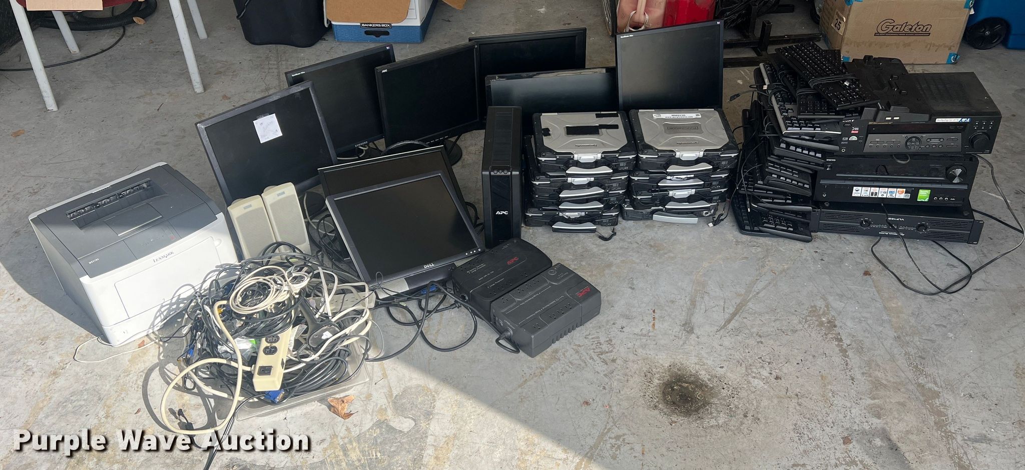 Purple Wave is selling a used Electronics in Missouri. This item is a Electronics with the following: (8) Panasonic Toughbook computers, (8) monitors, (16) keyboards, (3) APC backup surge protectors, (2) stereo receivers, (2) desktop speakers, American amplifier, Lexmark MS310D printer, Wiring and more, Unknown operating conditions
