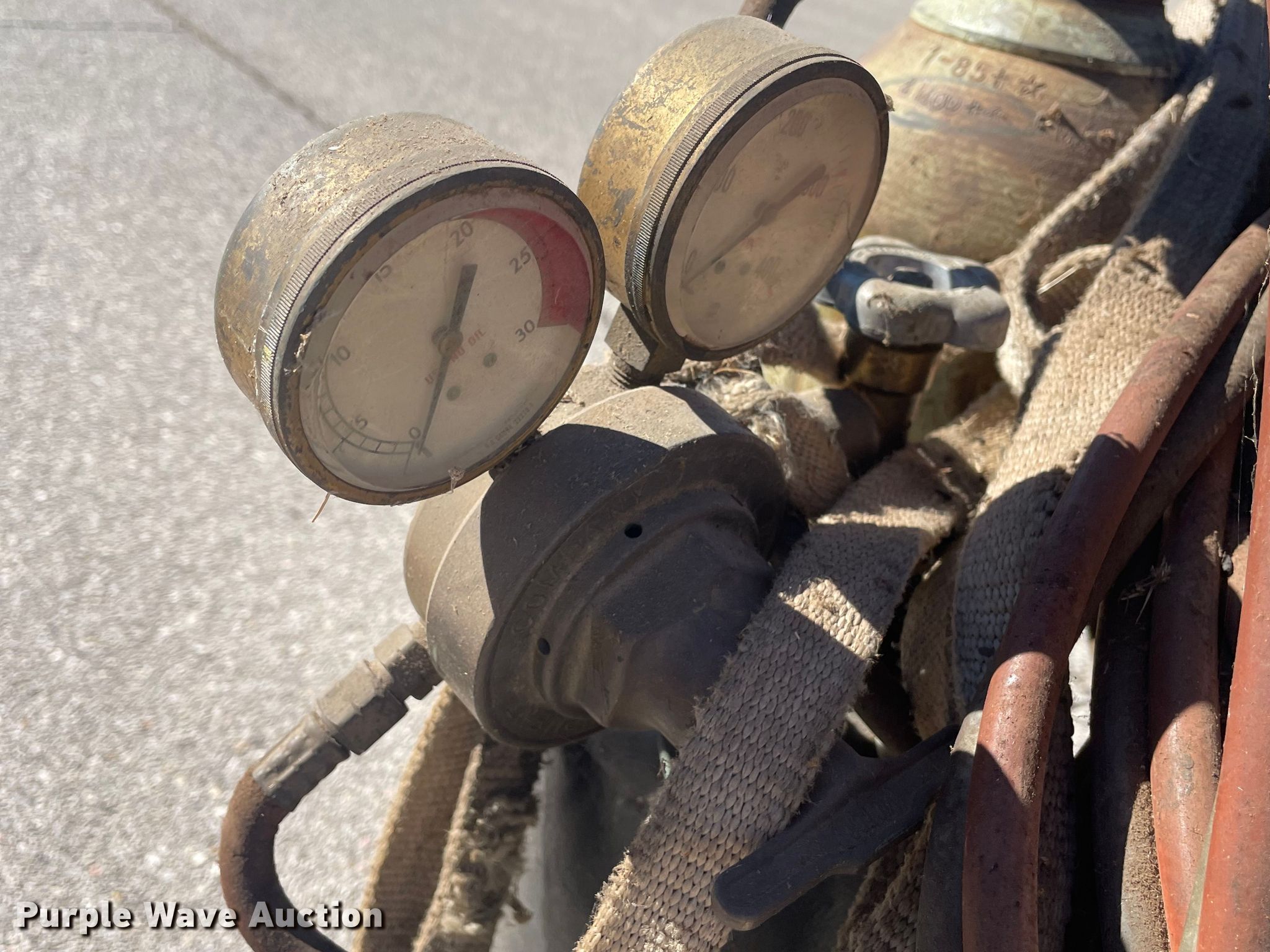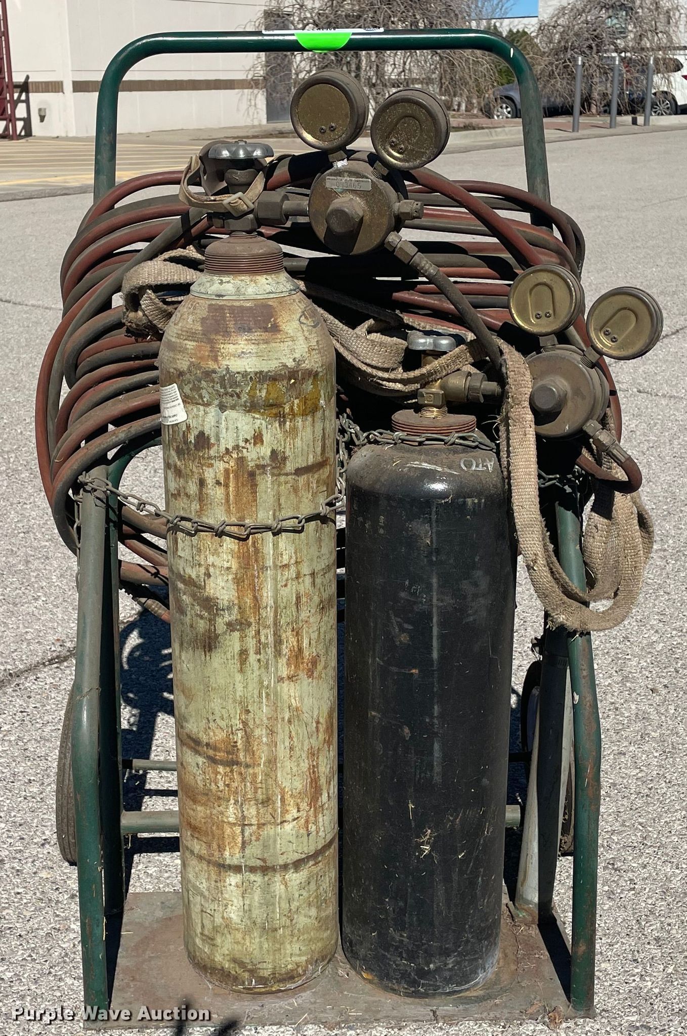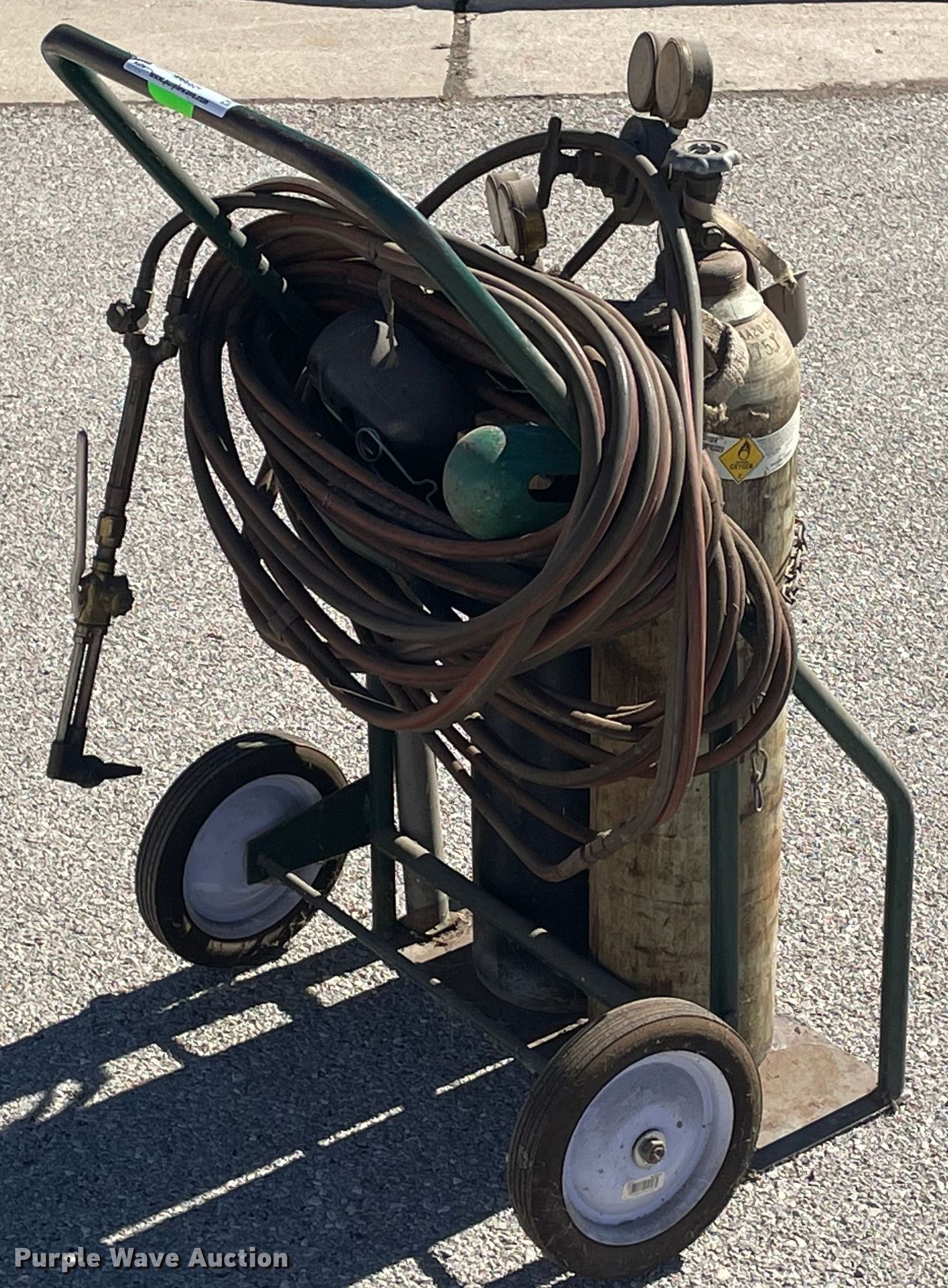Purple Wave is selling a used Torch in Oklahoma. This item is a Victor torch with the following: (2) tanks, Hose, Cart, Nozzle, Regulator, Cutting torch