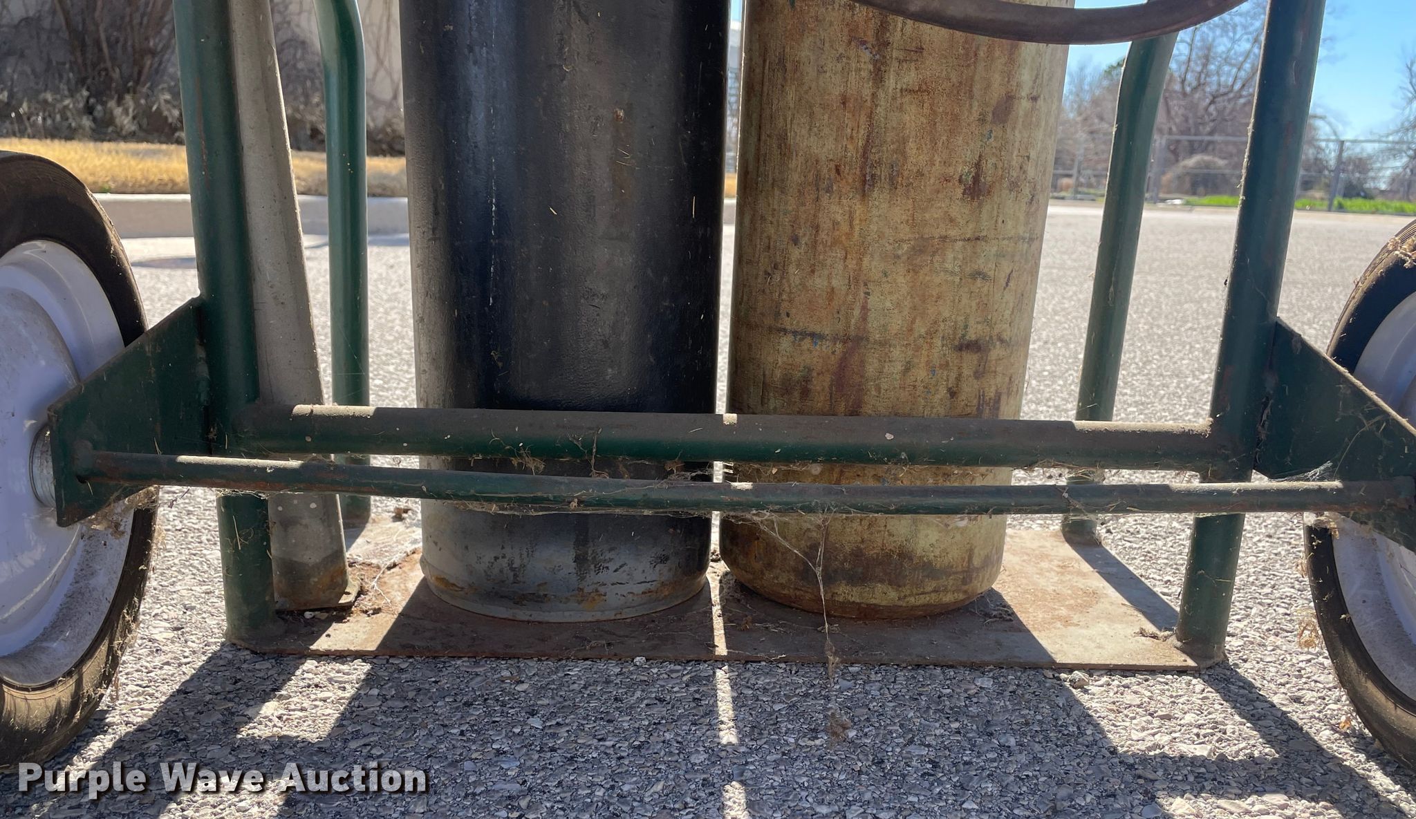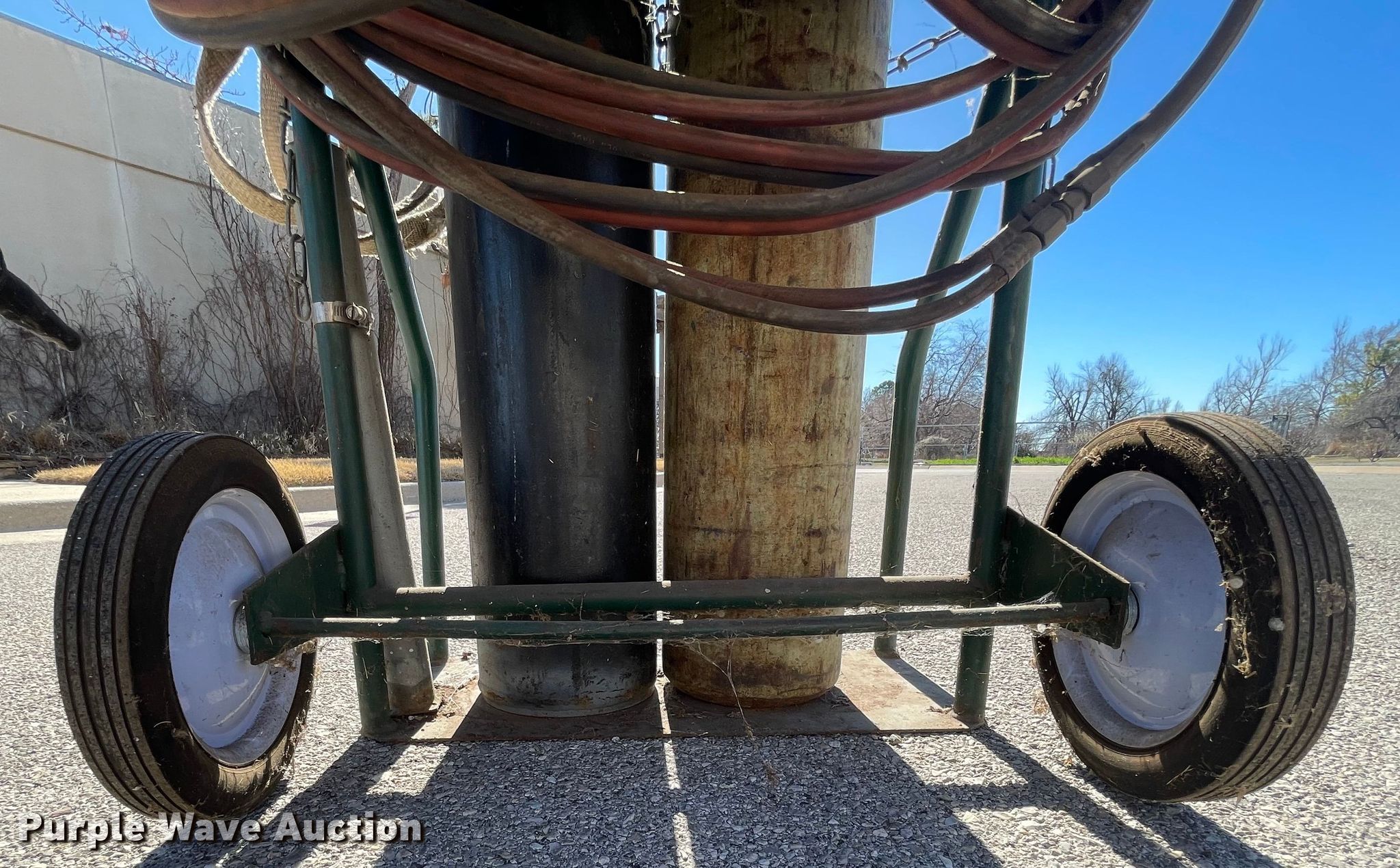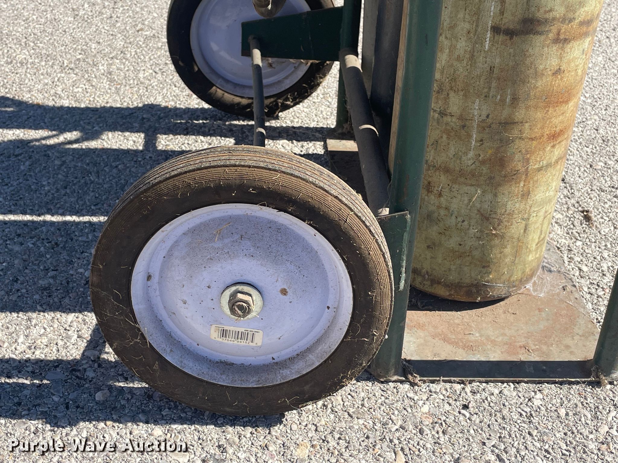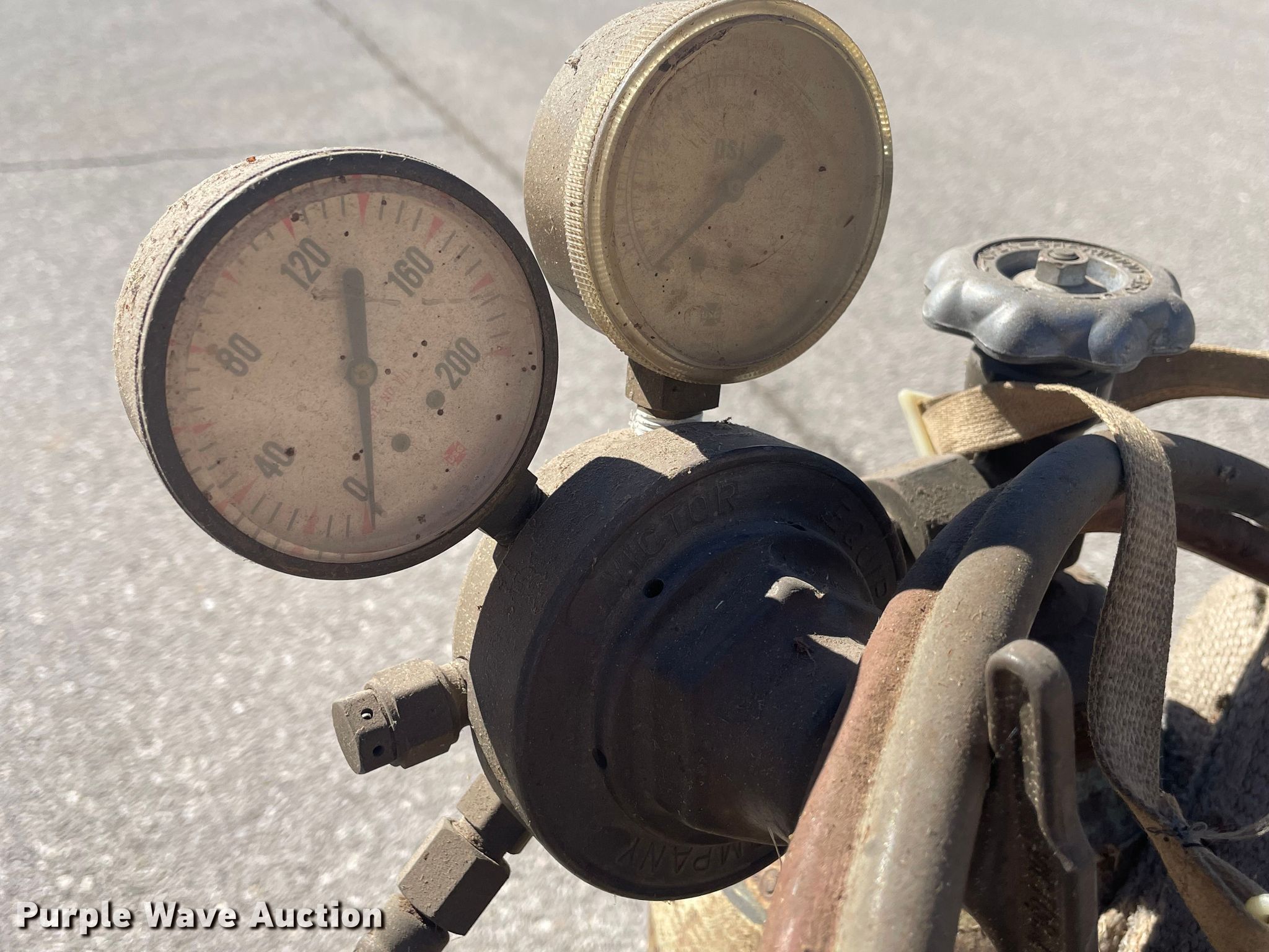 Purple Wave is selling a used Torch in Oklahoma. This item is a Victor torch with the following: (2) tanks, Hose, Cart, Nozzle, Regulator, Cutting torch