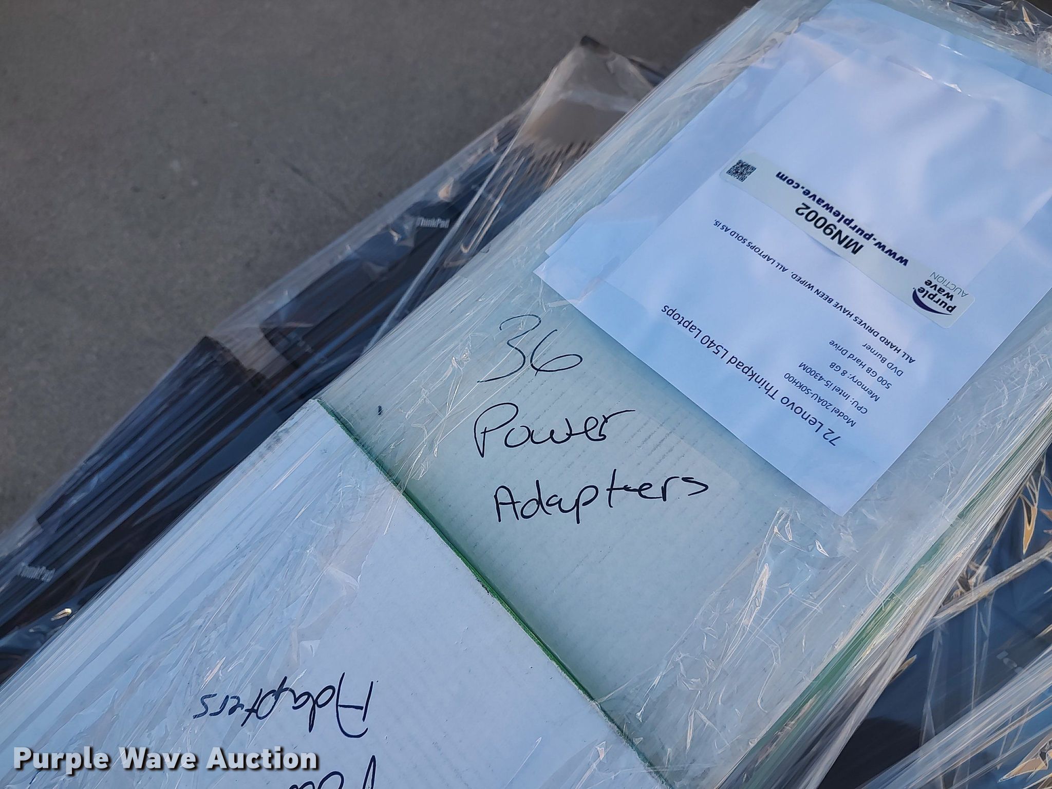Purple Wave is selling a used Computers in Kansas. This item is a (72) Lenovo Thinkpad L540 laptops with the following: Intel I5-4300M CPU, Memory 8 GB, 500 GB hard drive, DVD burner, Hard drives wiped