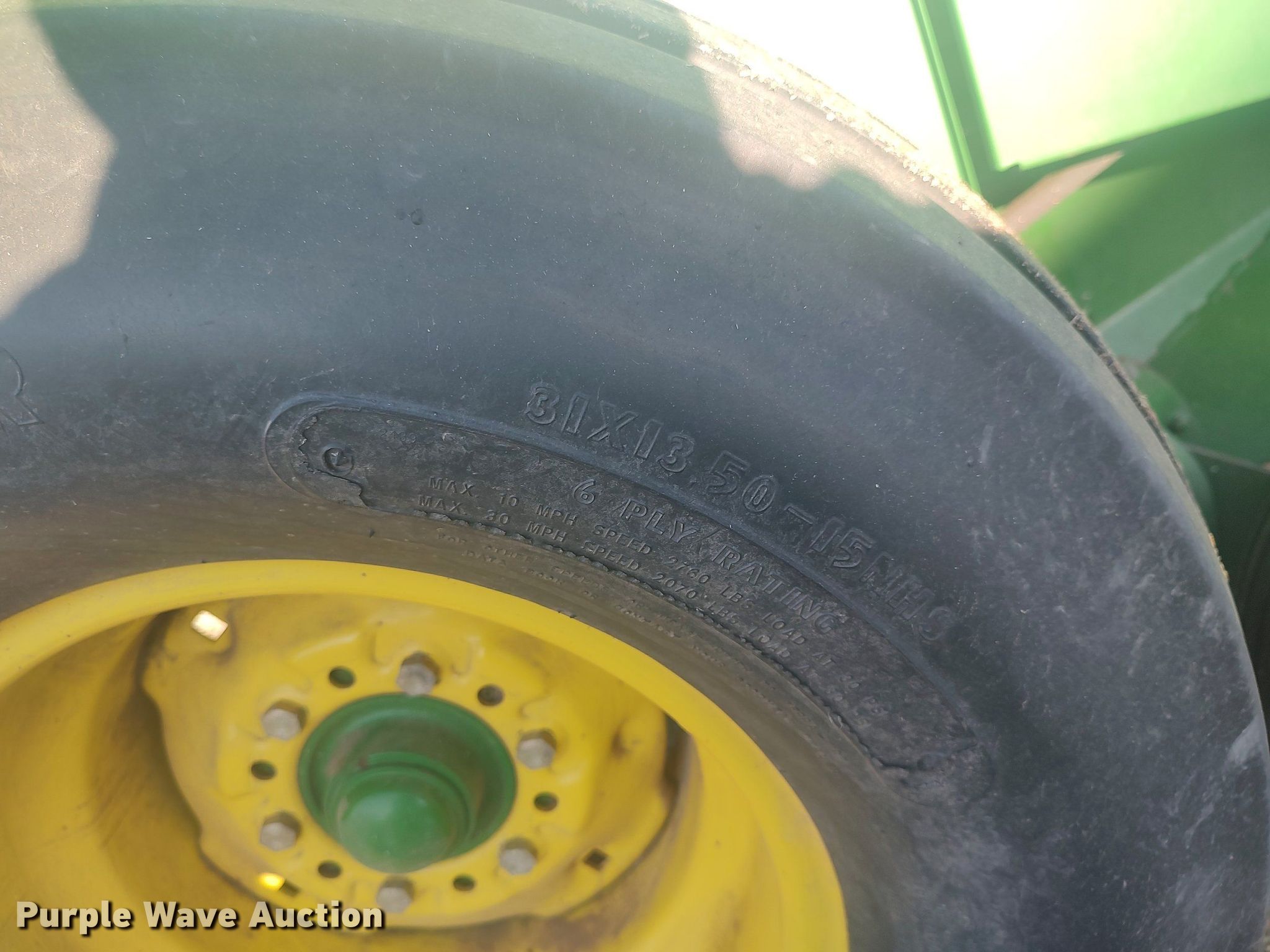 John Deere 435 round baler. Bale count: 57, Serial: E00435X986023. Features PTO: 1000, Monitor John Deere Bale-Trak, Pickup width: 4', Hydraulic pickup lift, Bale size: 4'x6', Twin twine tie, Bale kicker. Tires Size: 31x13.5-15. Andale, KS 67001