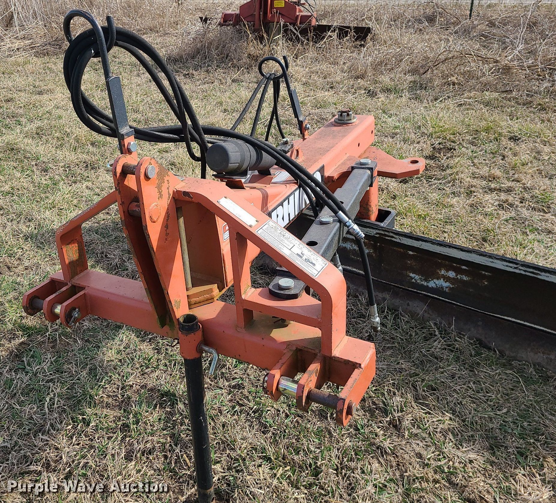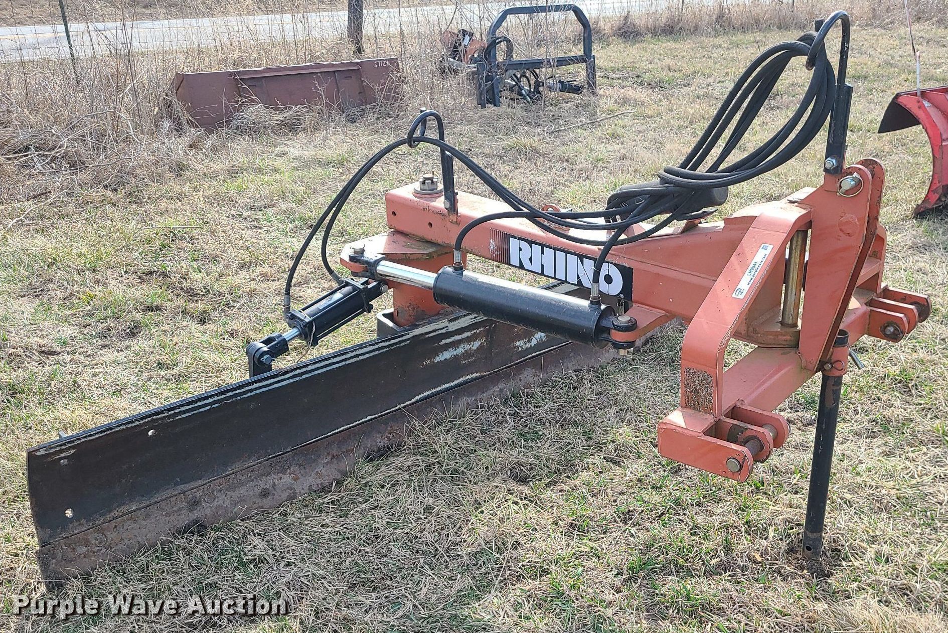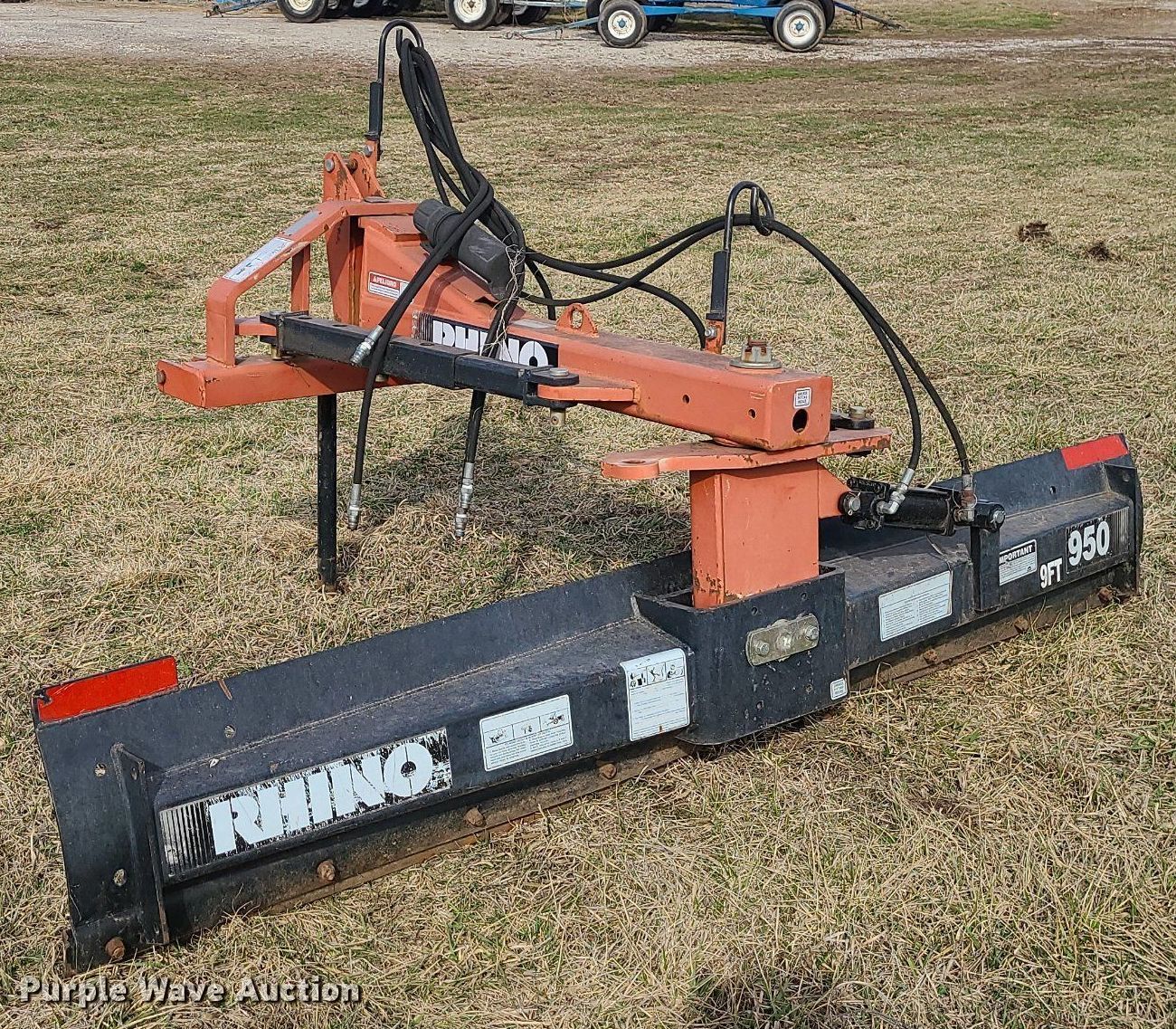 Purple Wave is selling a used Ag Tractor Loader or Attach. in Missouri. This item is a Rhino R950 blade with the following: Serial: 15931, 9' W, Three-point hitch, Hydraulic tilt and rotation