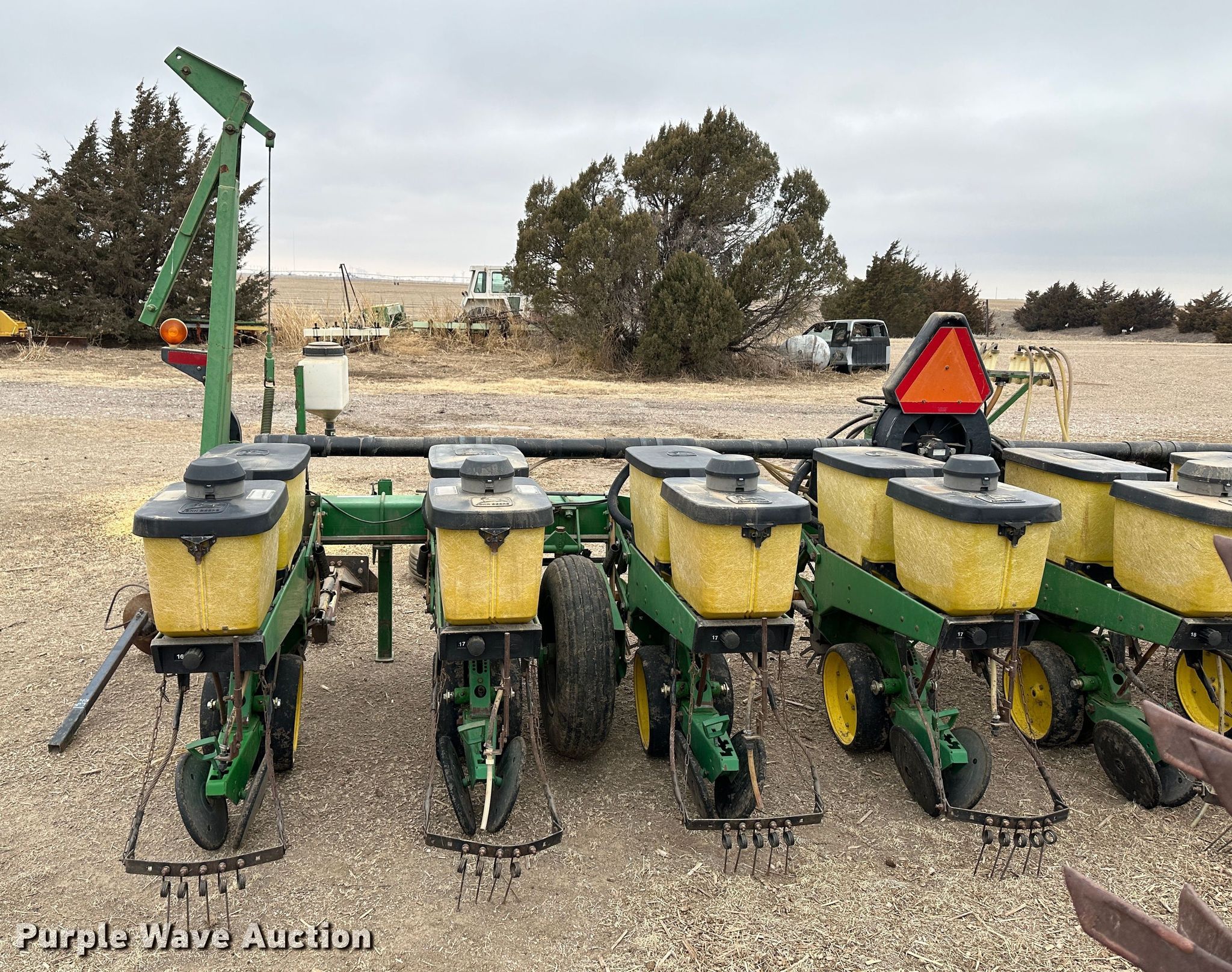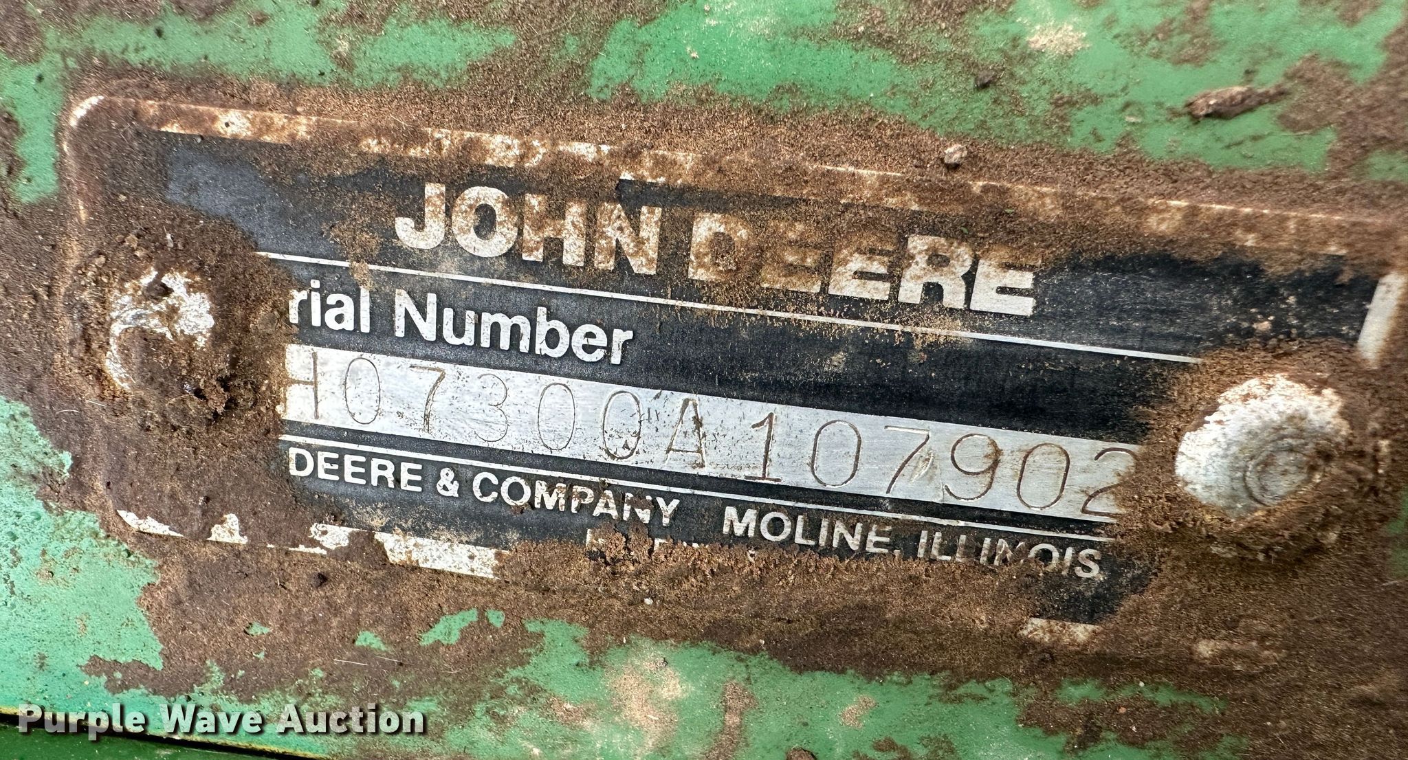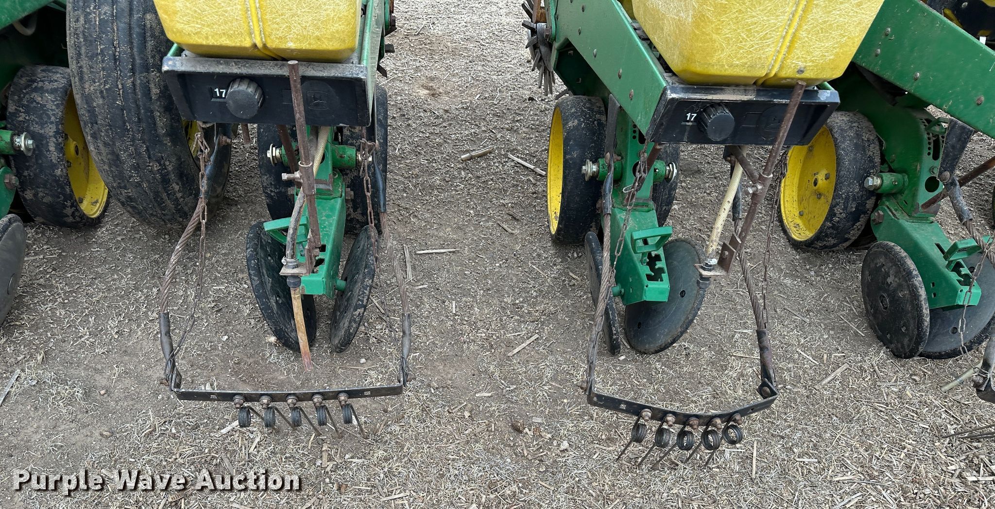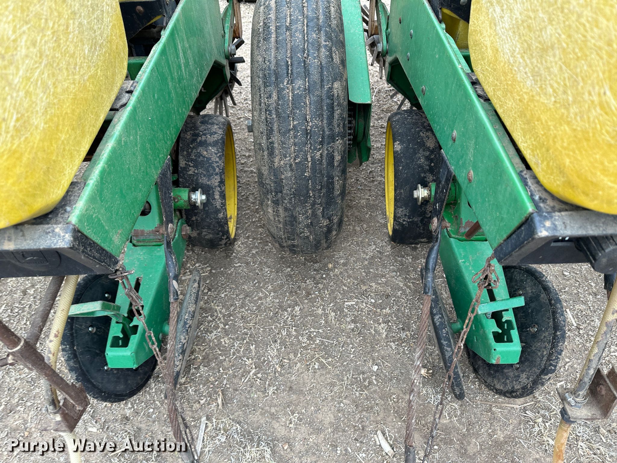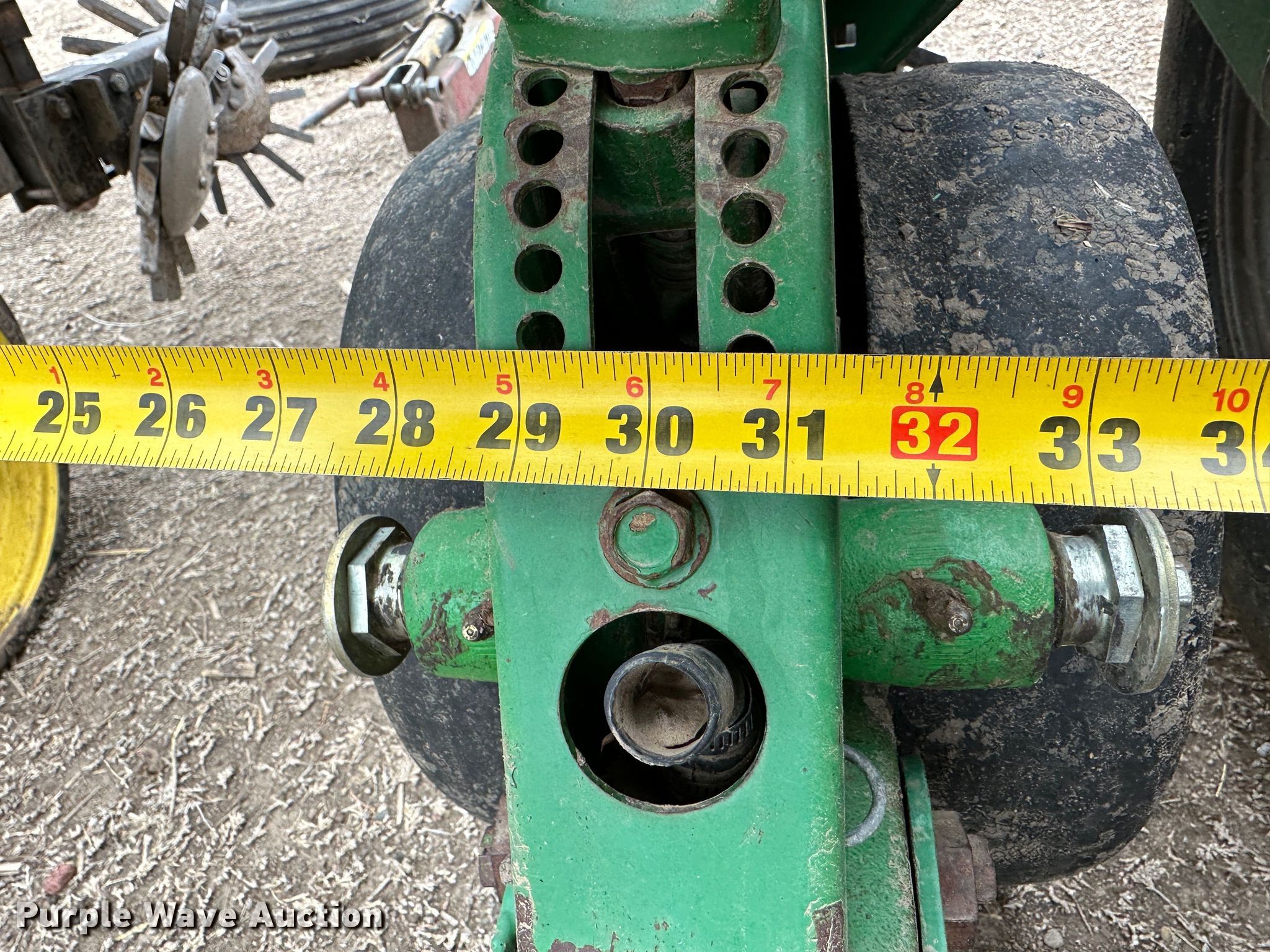 John Deere 7300 planter. Row units: 8, Row spacing: 30", Serial: H07300A107902. Features Frame Hitch: Three point, Marker arm, Seed delivery Individual seed hoppers, Row units Vacuum metering, Meter drive: Ground, Down pressure: Spring, Disk openers: Double, Gauge wheels: Double, Closing system: Double Type: Rubber, Fertilizer/ insecticide Insecticide boxes. Tires Drive/ outside tire size: 7.60-15. 25103 21 Rd. Cimarron, KS 67835