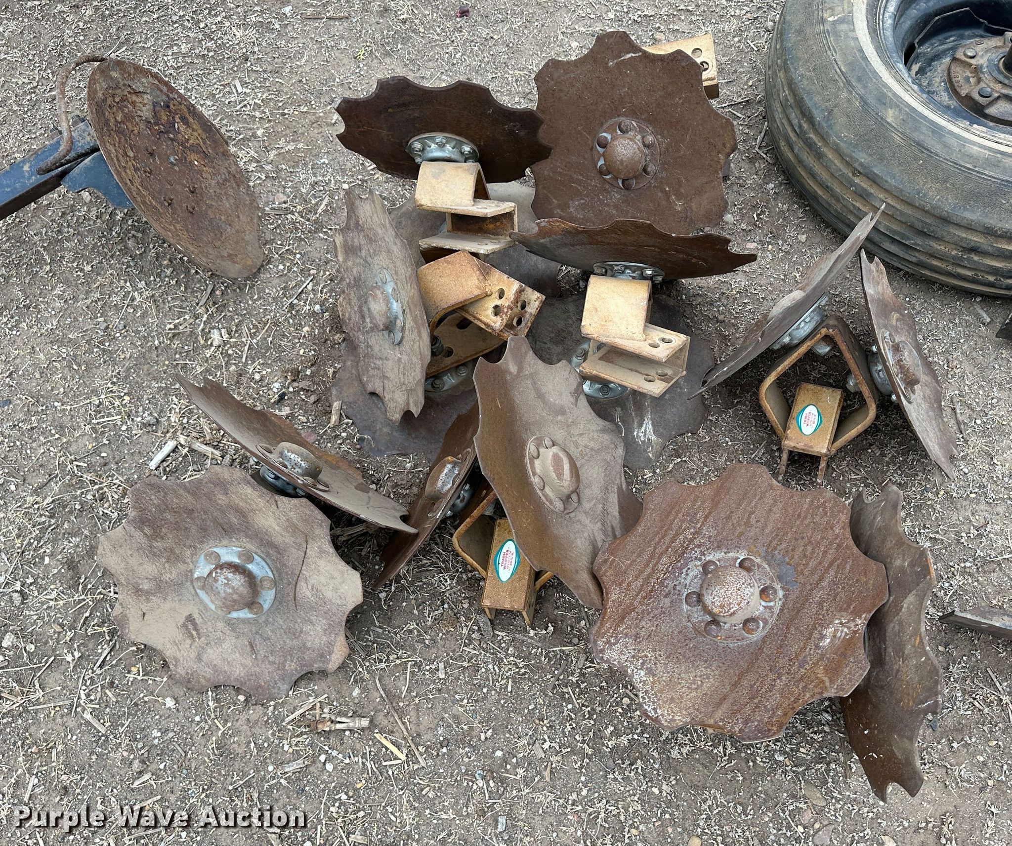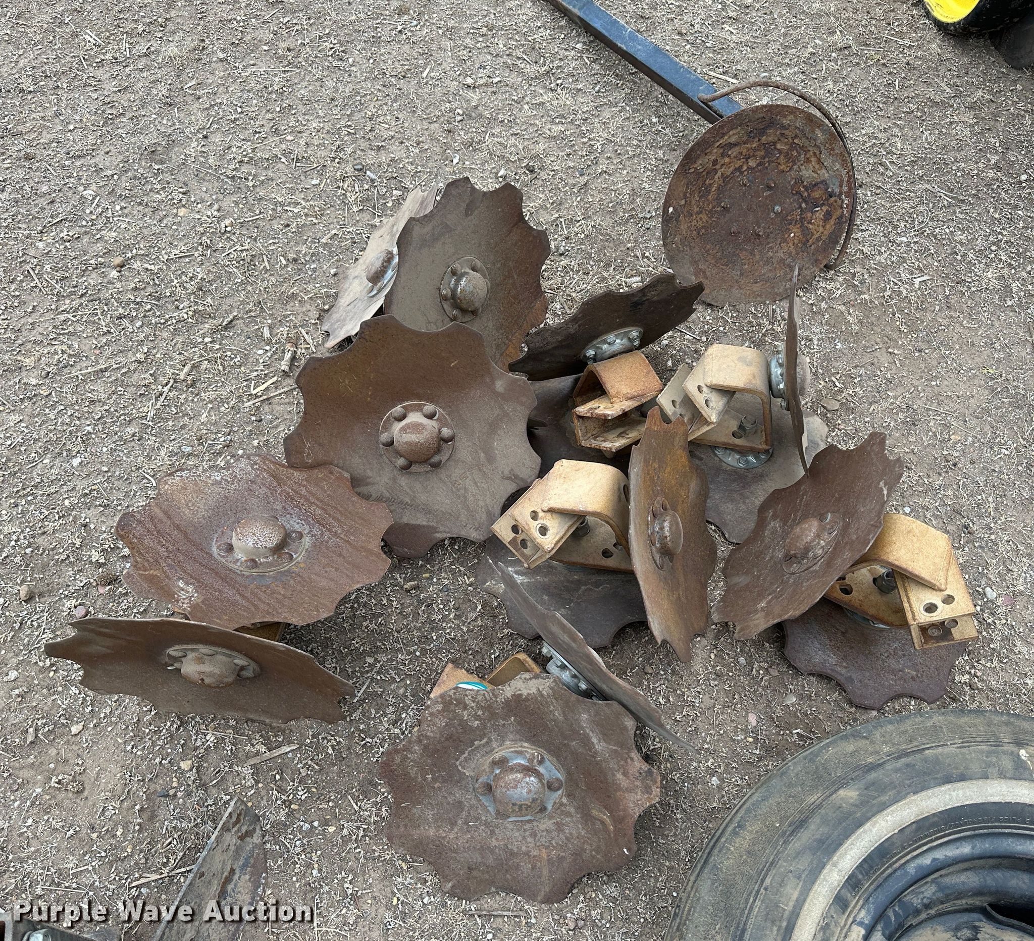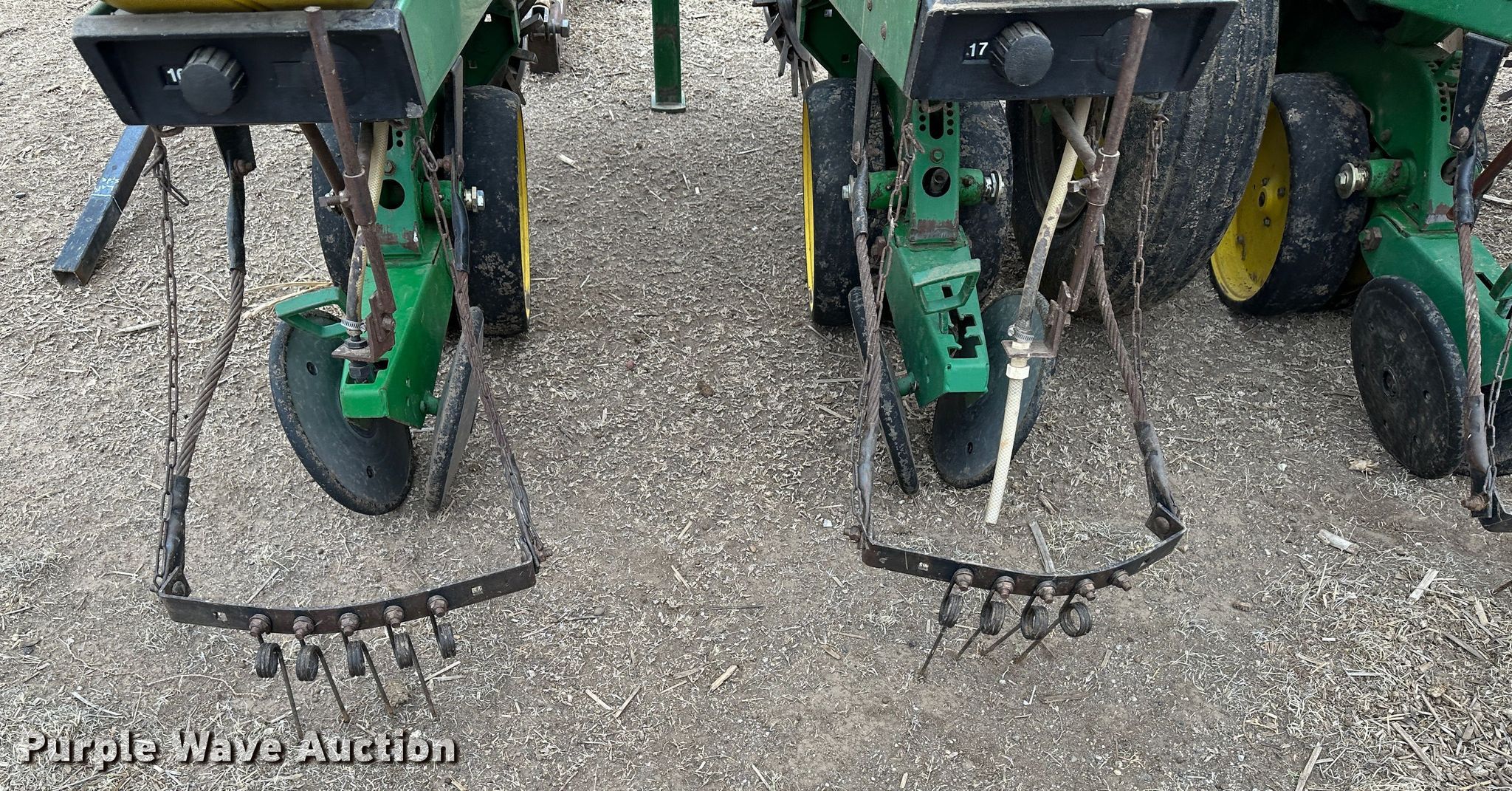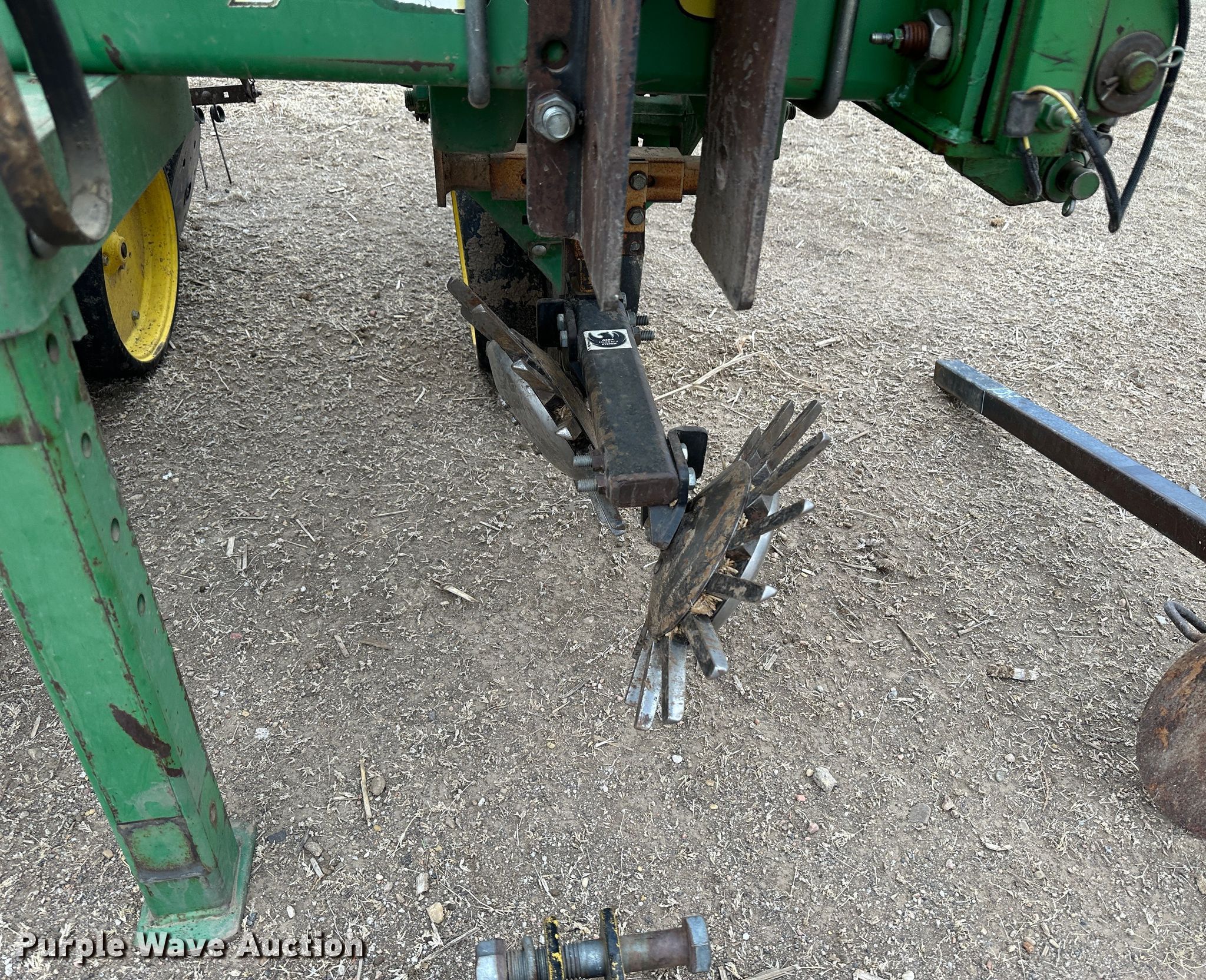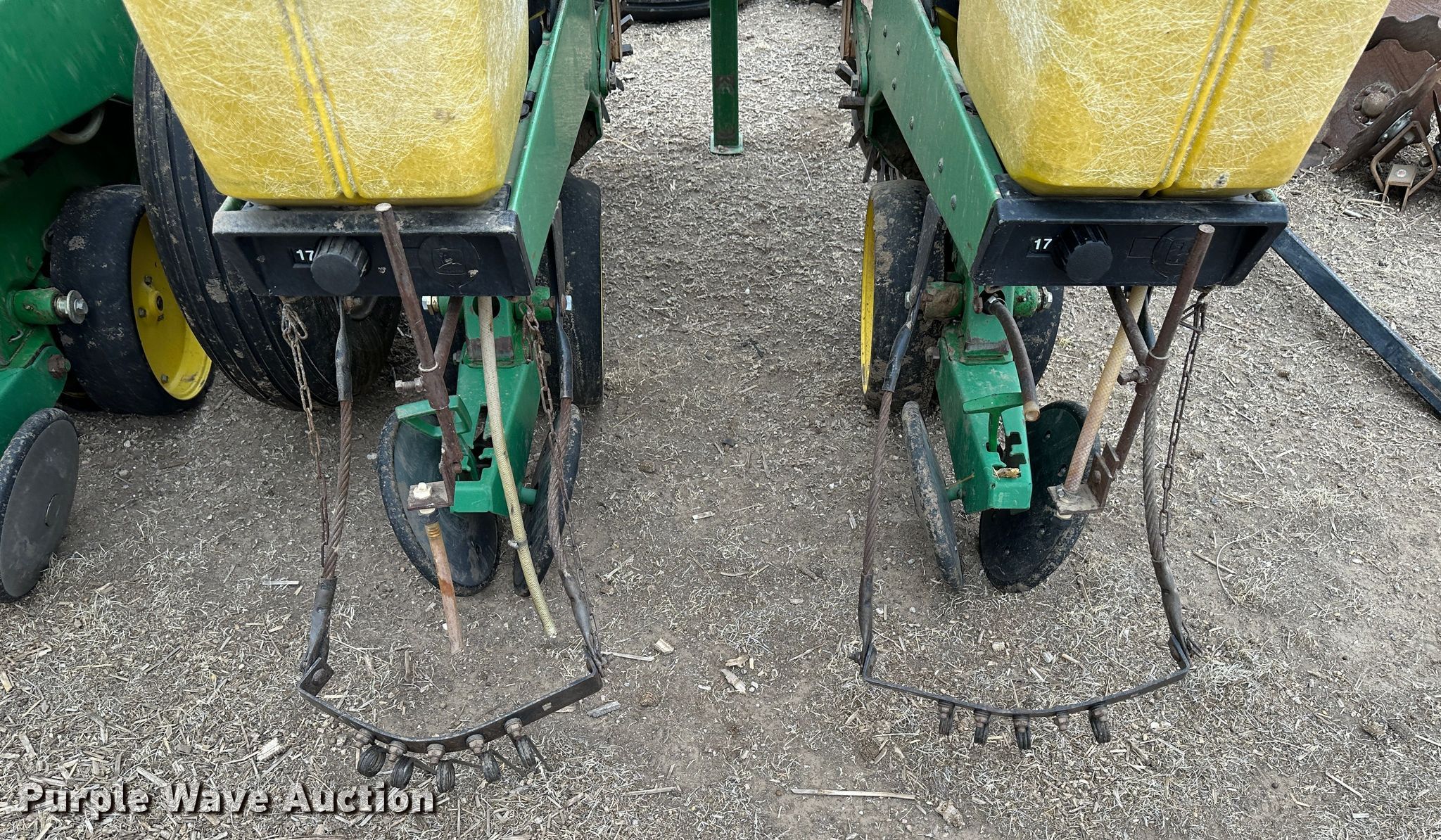 John Deere 7300 planter. Row units: 8, Row spacing: 30", Serial: H07300A107902. Features Frame Hitch: Three point, Marker arm, Seed delivery Individual seed hoppers, Row units Vacuum metering, Meter drive: Ground, Down pressure: Spring, Disk openers: Double, Gauge wheels: Double, Closing system: Double Type: Rubber, Fertilizer/ insecticide Insecticide boxes. Tires Drive/ outside tire size: 7.60-15. 25103 21 Rd. Cimarron, KS 67835