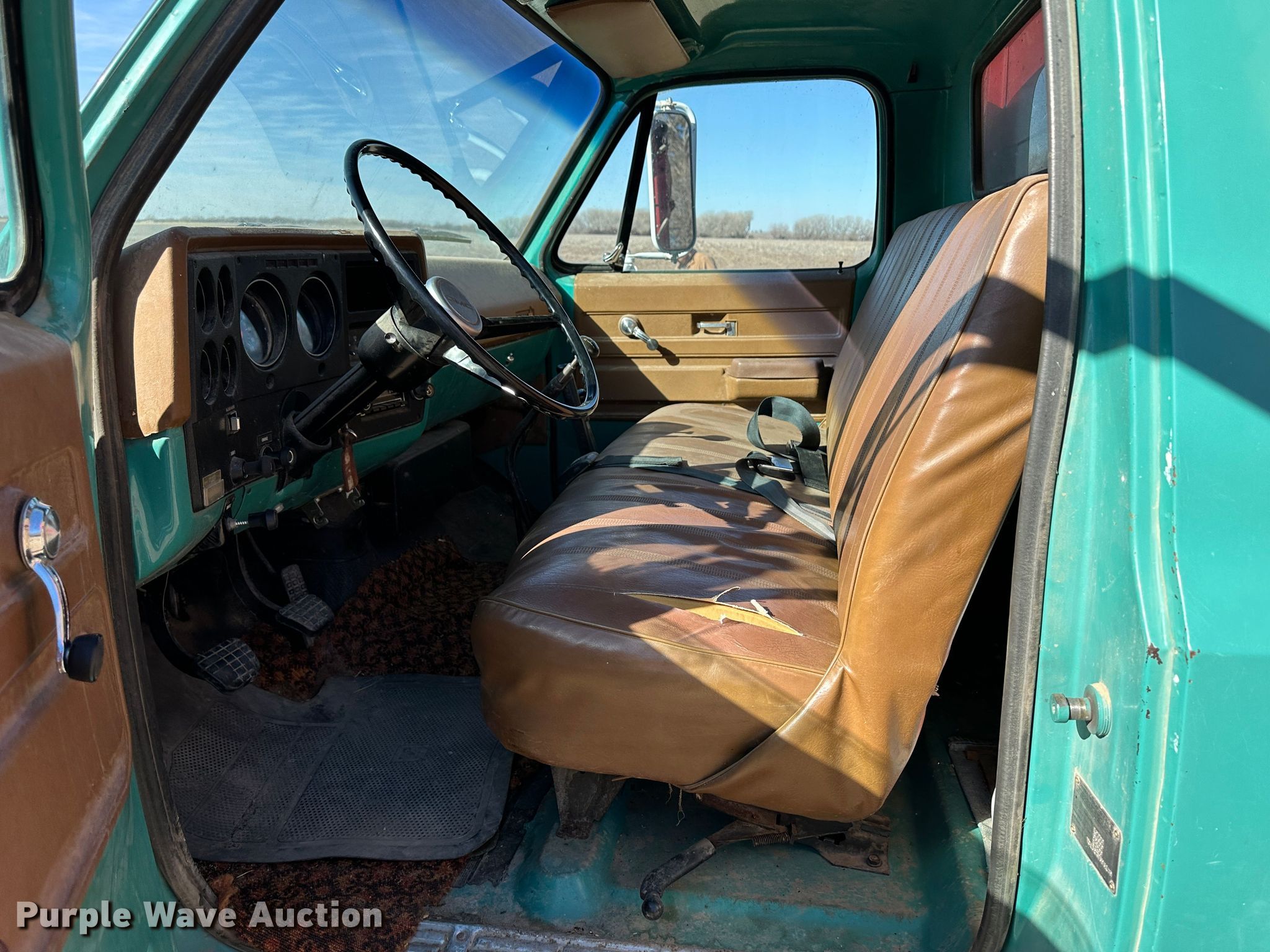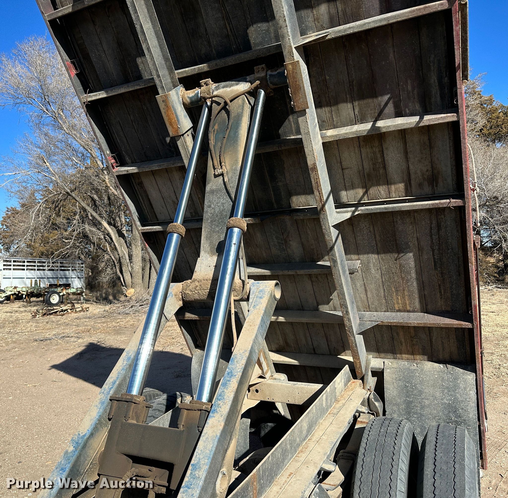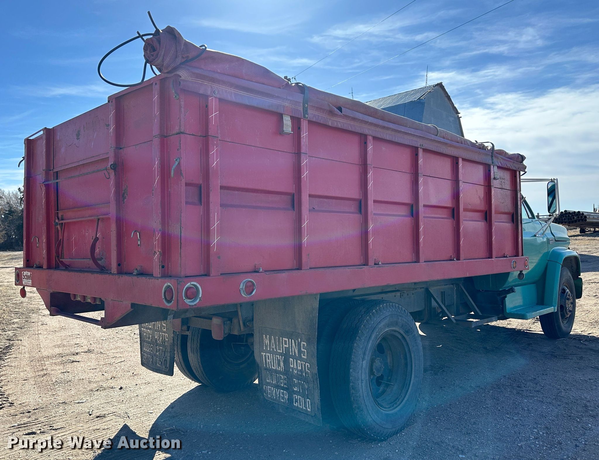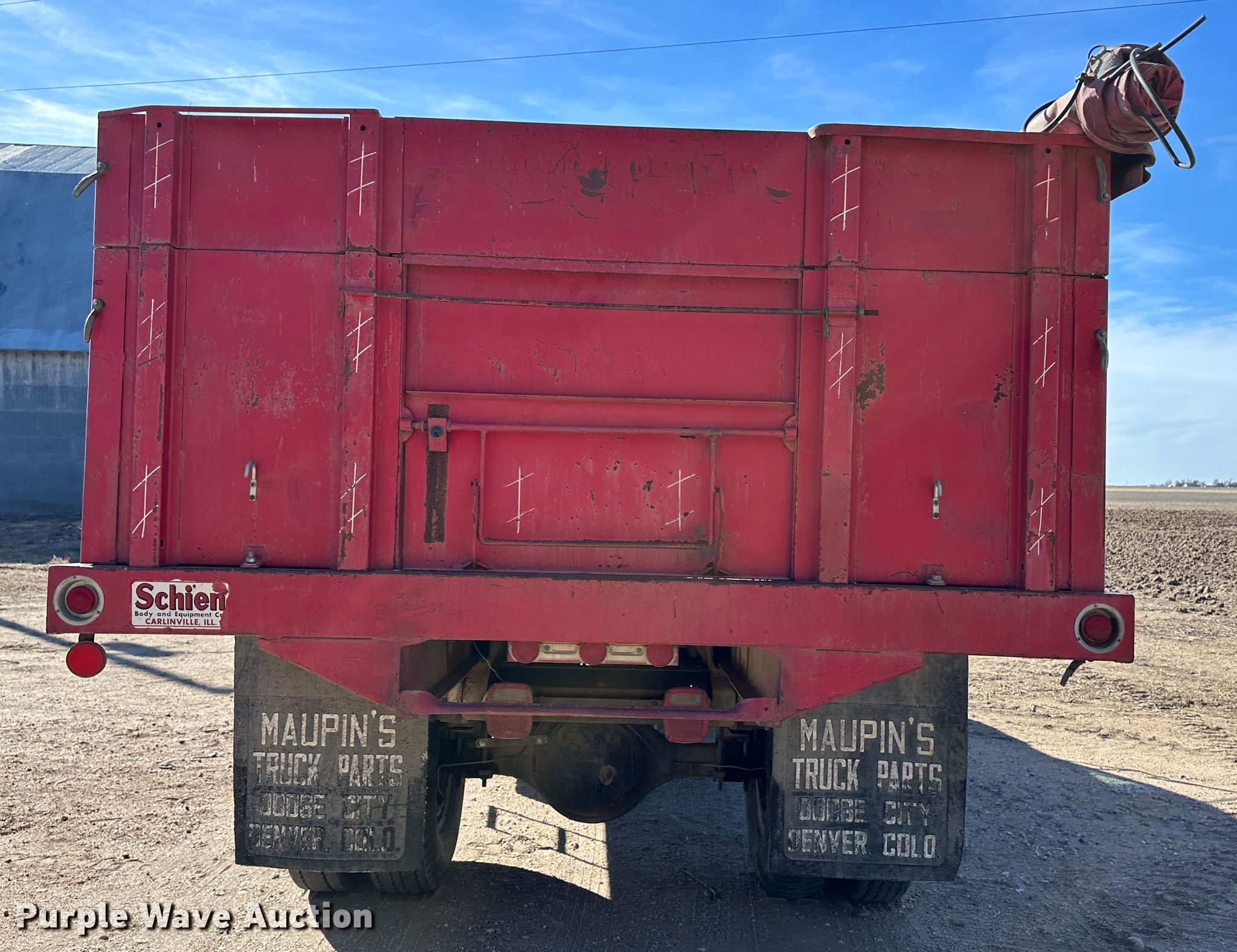 1974 GMC 6000 grain truck. Miles: 35,666 on odometer, VIN: TCE624V596189. Engine Cylinders: 8, Fuel type: Gas. Transmission Manual, Speed: 5, plus 2. Chassis Axles: Single, Suspension: Spring, Brakes: Hydraulic, PTO. Interior Heat. Features Dump bed 15' L x 94" W, Side height: 40", Ram: Dual, End gate: Manual. Tires Front: 9.00R20, Rear: 9.00-20. Kansas antique title. Title distribution may be delayed up to 14 days from verification of funds. Spearville, KS 67876