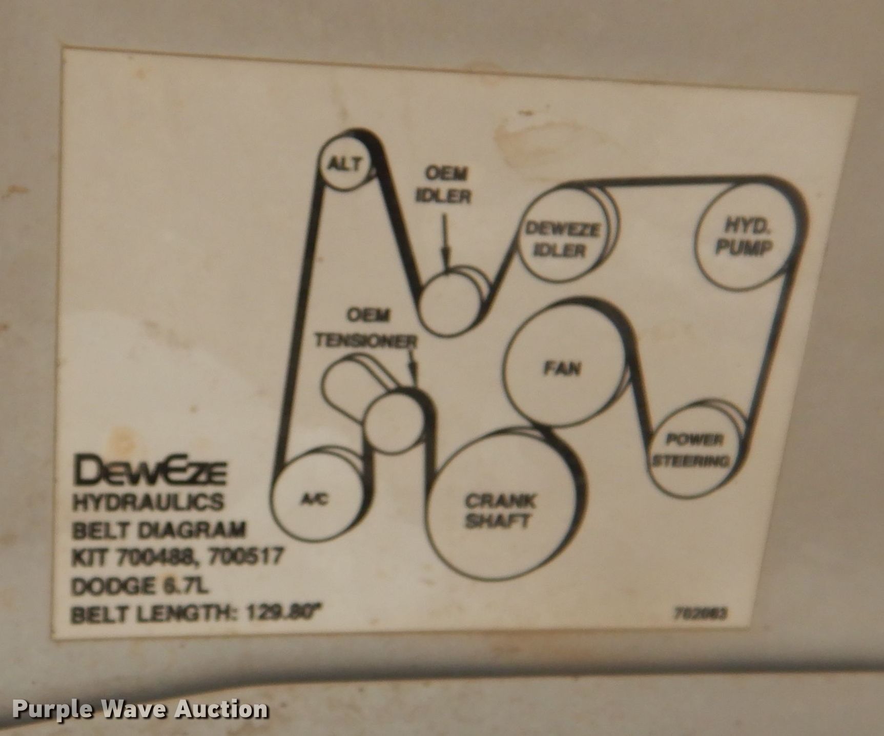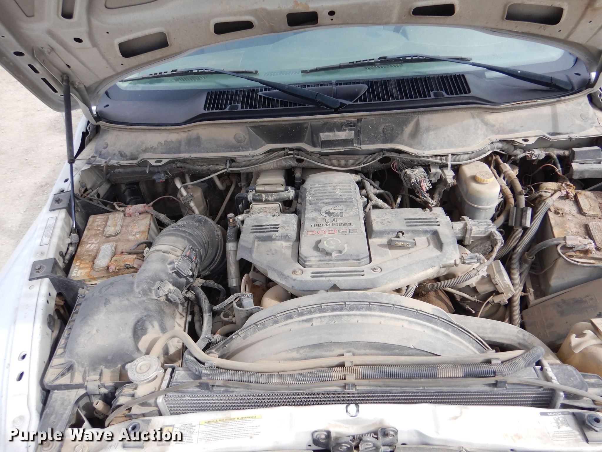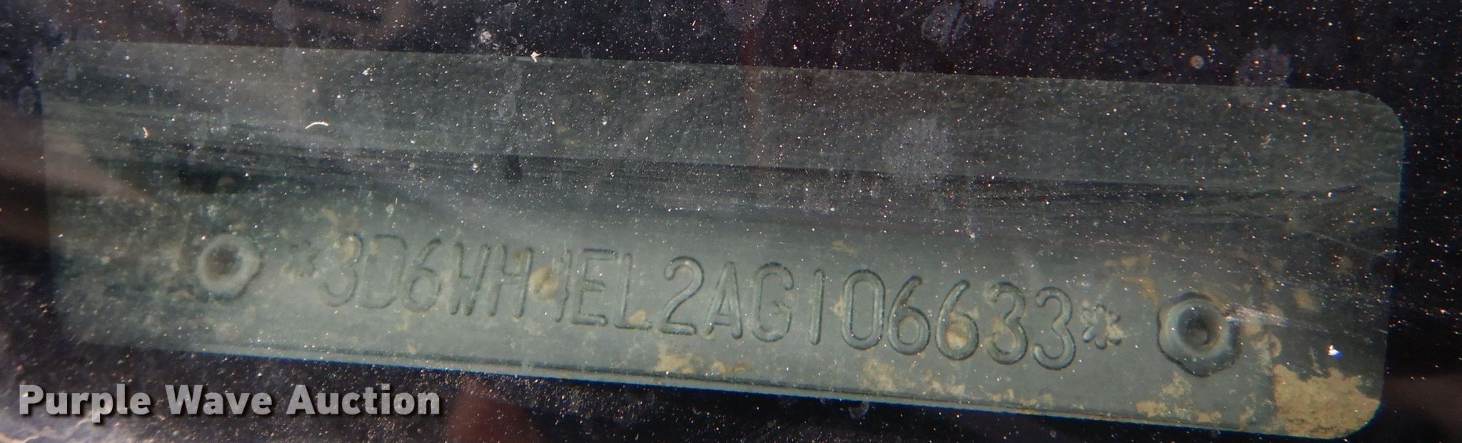 2010 Dodge Ram 3500HD bale bed pickup truck. Miles: 162,974 on odometer, VIN: 3D6WH4EL2AG106633. Engine Displacement: 6.7L L6 OHV, Cylinders: 6, Fuel type: Diesel. Transmission Manual, Speed: 6, Four wheel drive. Interior AC, Heat, Heated mirrors, Power windows, Power locks, Cruise control. Features Hydraulic bale bed DewEze 684 Bale Pick-Up, 9' 10" L x 94" W, Bale arm, Hitch: Gooseneck, Luco Task Master cake feeder Extra feed not included. Tires Size: 265/70R17. Notes ERG deleted, Bale bed synchronized squeeze cylinder removed Regular squeeze cylinder installed. Kansas title. Marion, KS 66861