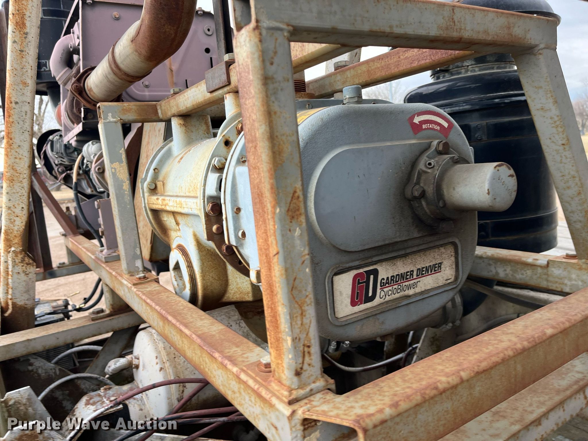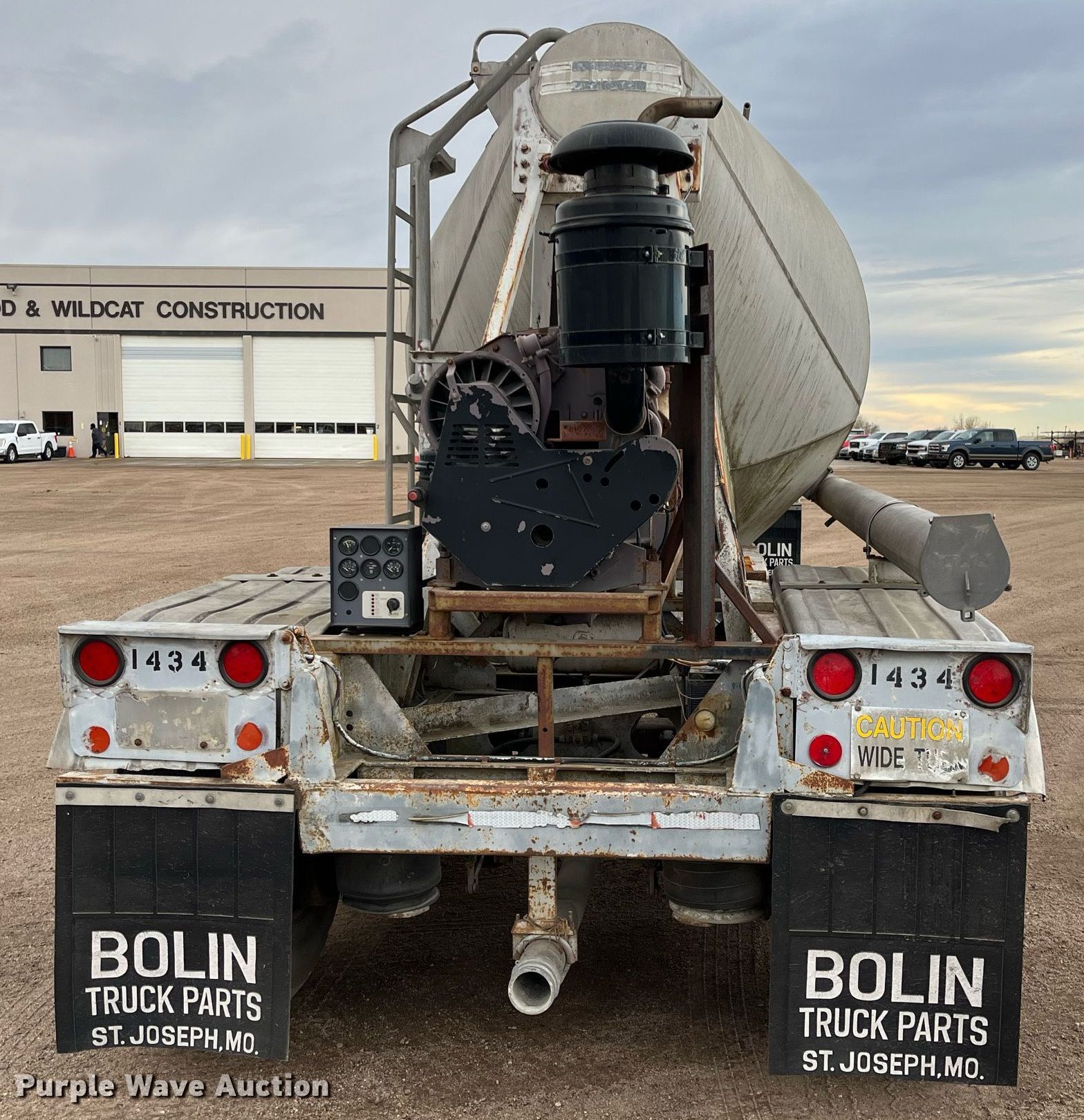 1989 Fruehauf pneumatic dry bulk trailer. VIN: 1H4B04126KL023301, Unit #: 1434. Dimensions Overall: 41' L x 102" W. Features Tank type: Aluminum, Compartments: 3, Outlet valves: 3 Size: 4", No. of manways/manholes: 3 Width: 24", Pump Gardner Denver CycloBlower, Engine Deutz BF4L914, Displacement: 4.314L, Cylinders: 4, Fuel type: Diesel. Chassis Landing gear: Dual, Suspension: Air, Brakes: Air, Axles: Tandem, GVWR: 68,000 lbs. Tires Steel wheels, Size: 425/65R22.5. Kansas title. Title distribution may be delayed up to 14 days from verification of funds. Sherwood Construction Company. 3219 W May St. Wichita, KS 67213