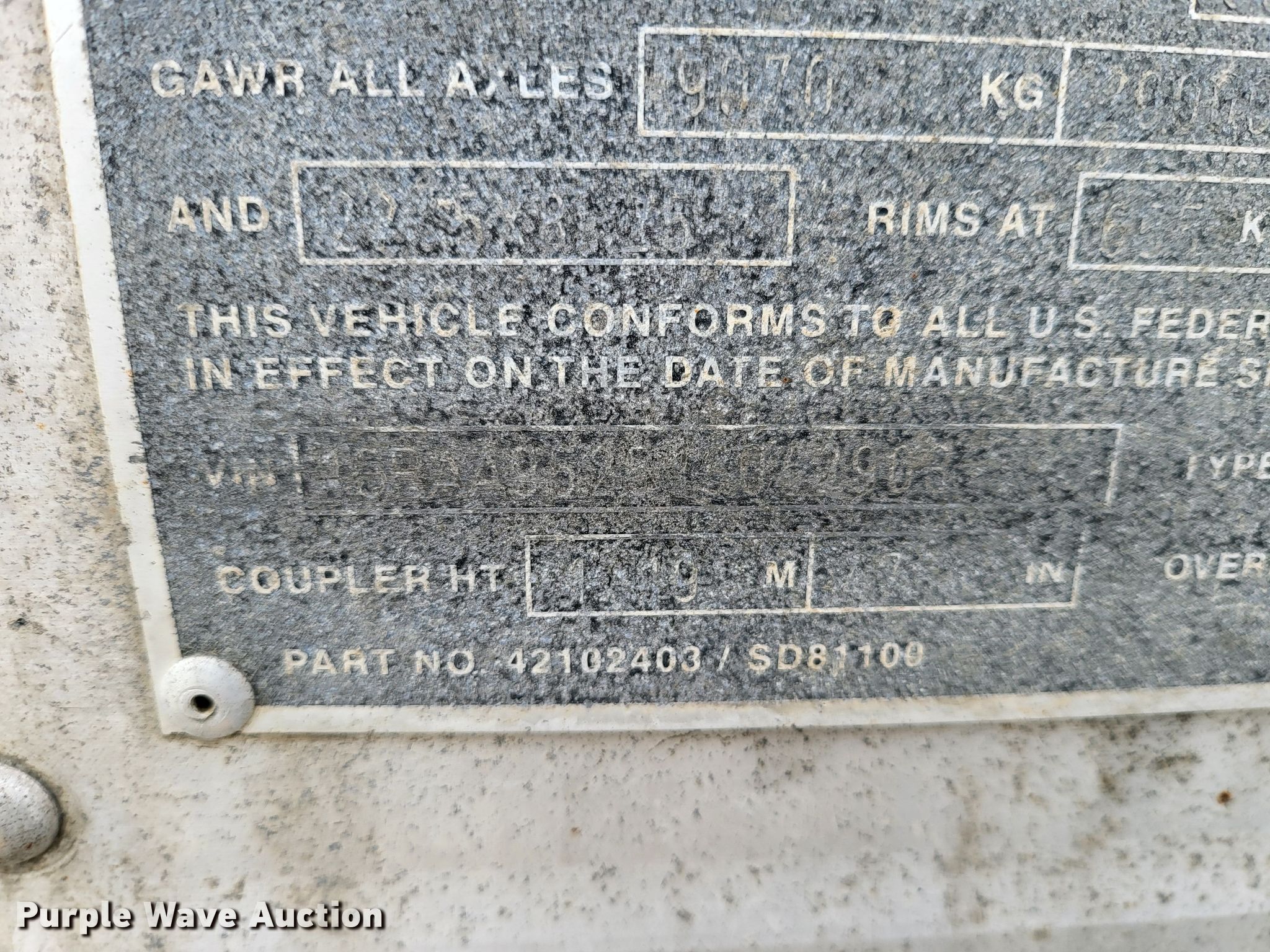 2001 Great Dane refrigerated van trailer. VIN: 1GRAA96251S042903, Unit #: 19114. Dimensions Overall: 45' x 96" W. Features Deck type: Steel, E-track rail system, Refrigeration unit Ingersoll Rand, Hours: 17,688. Chassis Landing gear: Dual, Two speed, Suspension: Spring, Brakes: Air, Axles: Tandem, Sliding, GVWR: 68,000 lbs, GAWR: 20,000 lbs. Tires Steel wheels, Size: 11R22.5. Notes Contents not included. Illinois title. Titles will be distributed after confirmation of payment and removal. NDSM Holdings. 6303 Maxon Rd. Chemung, IL 60033