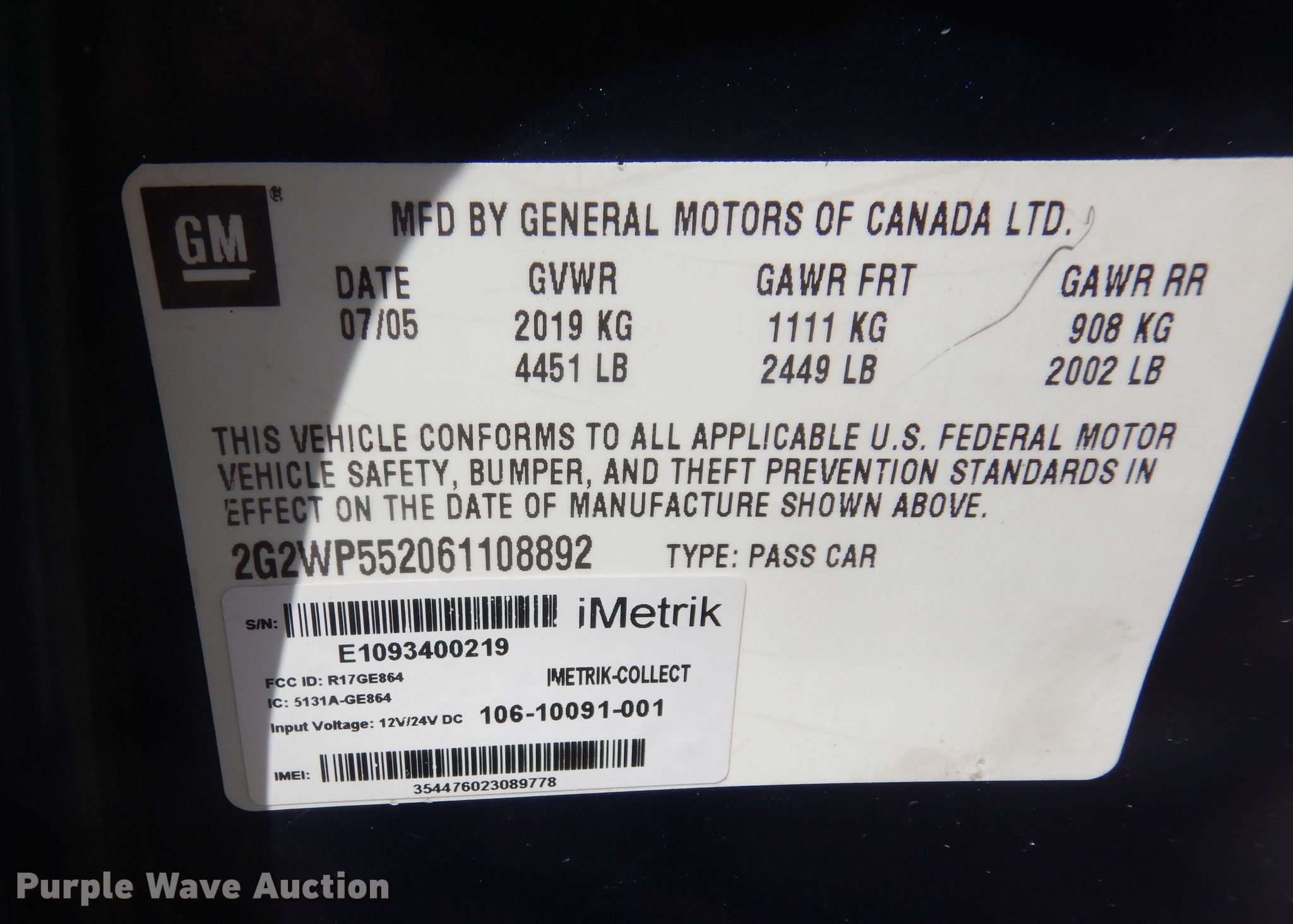 • VIN: 2G2WP552061108892