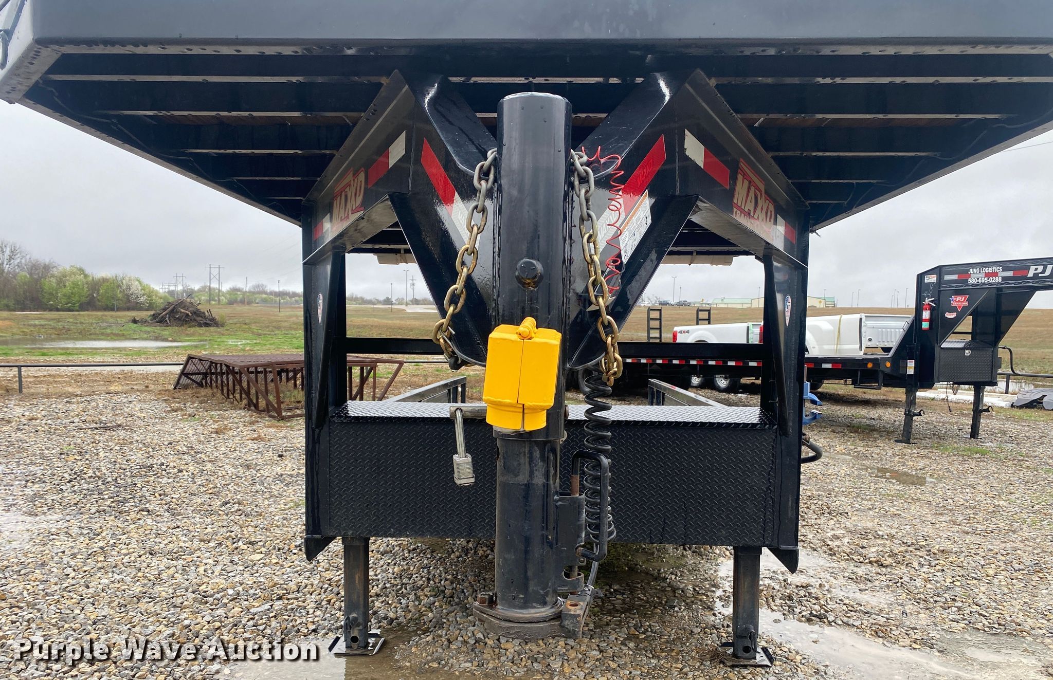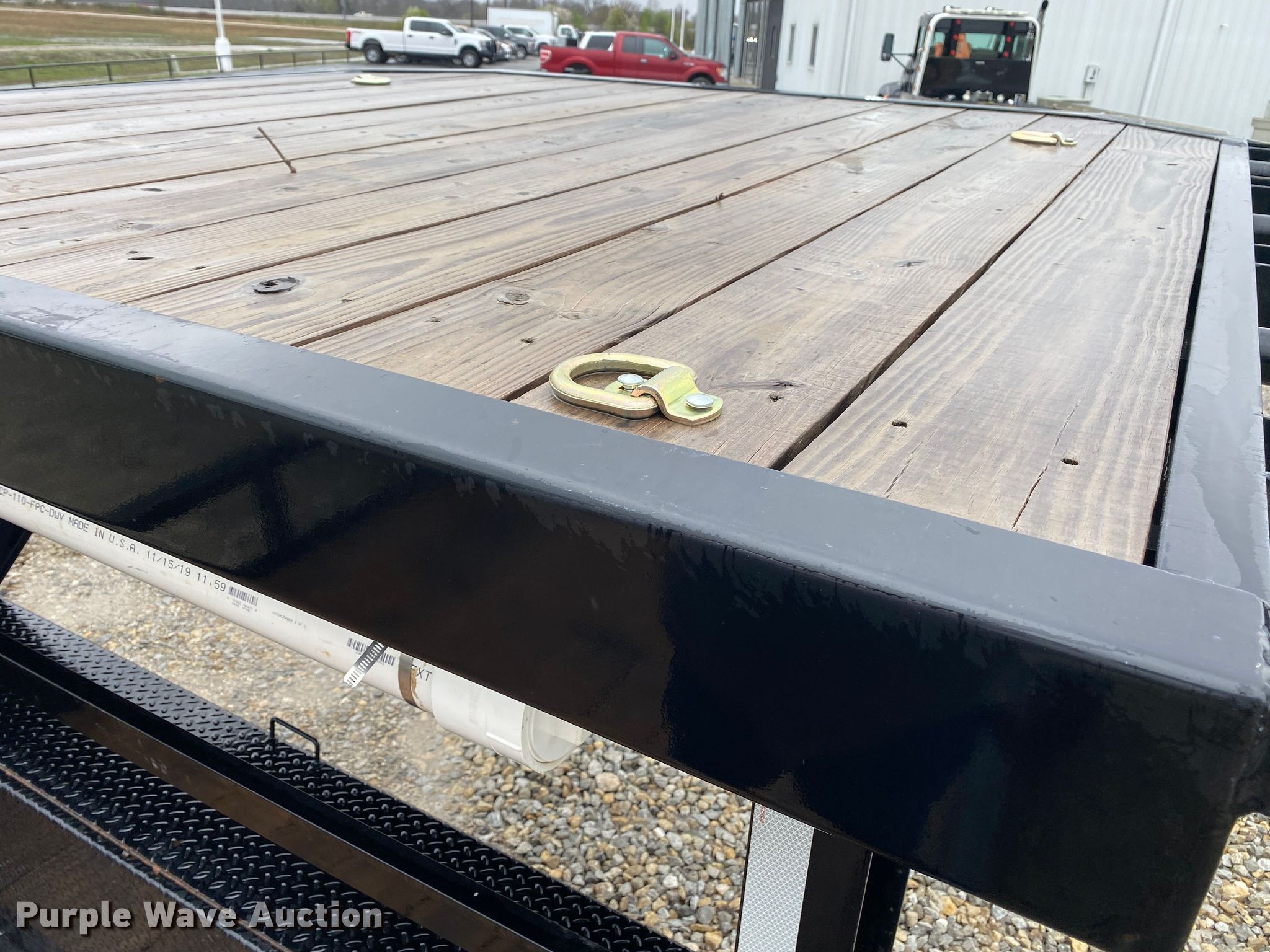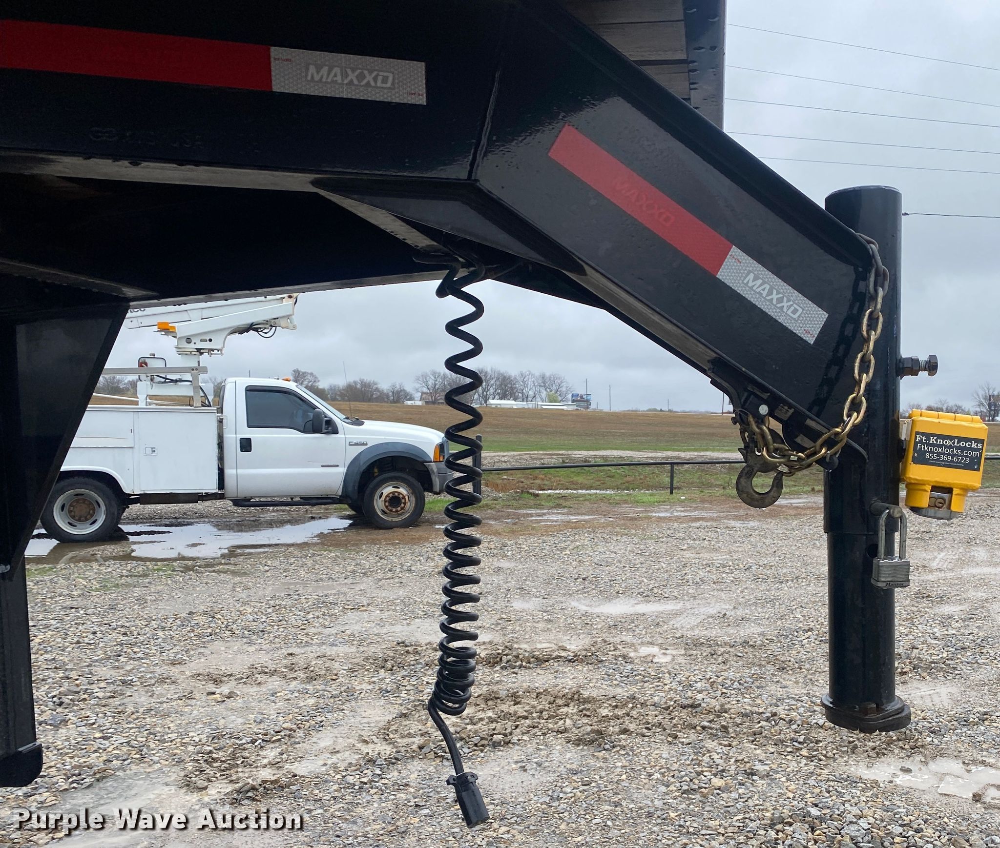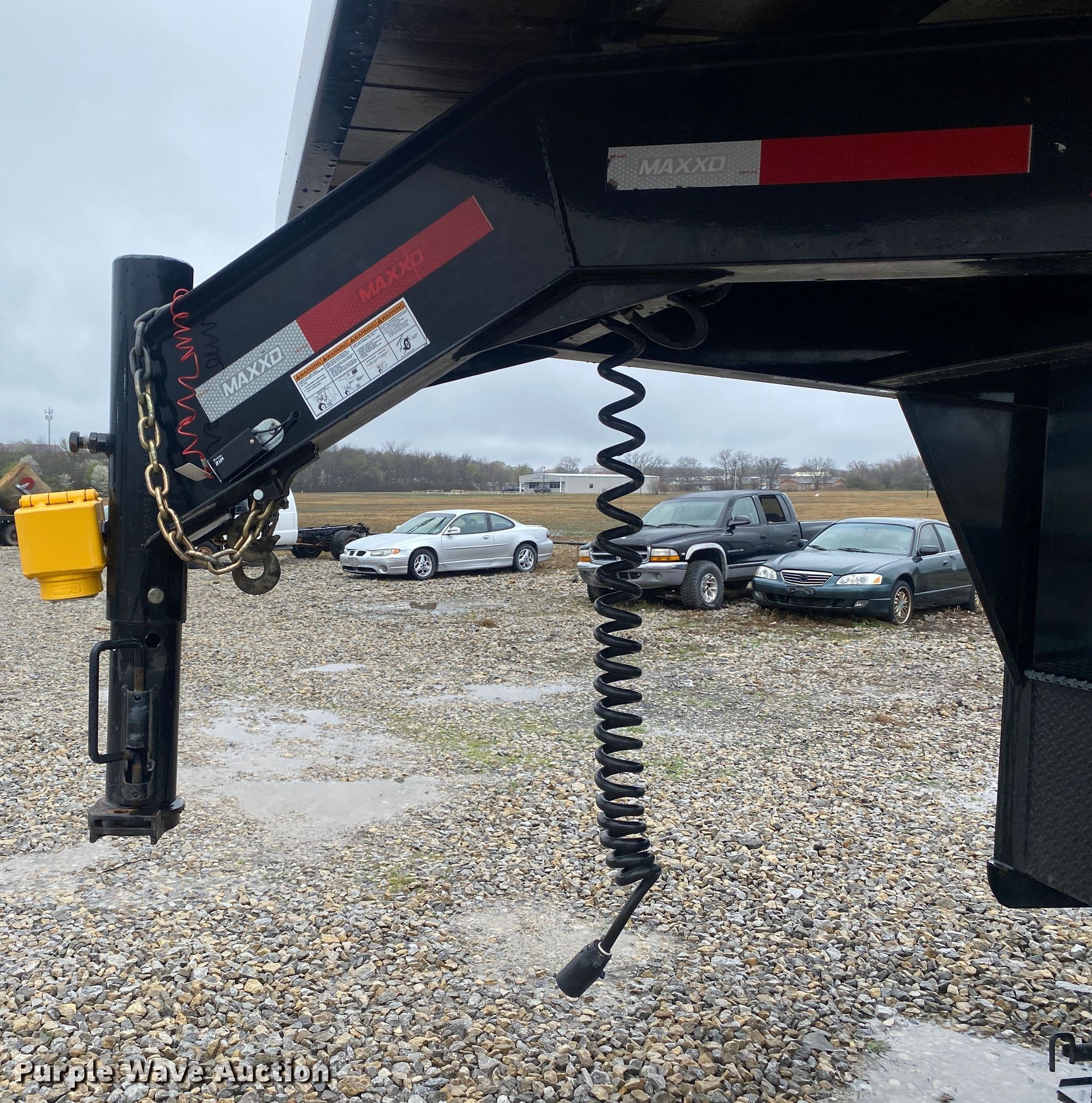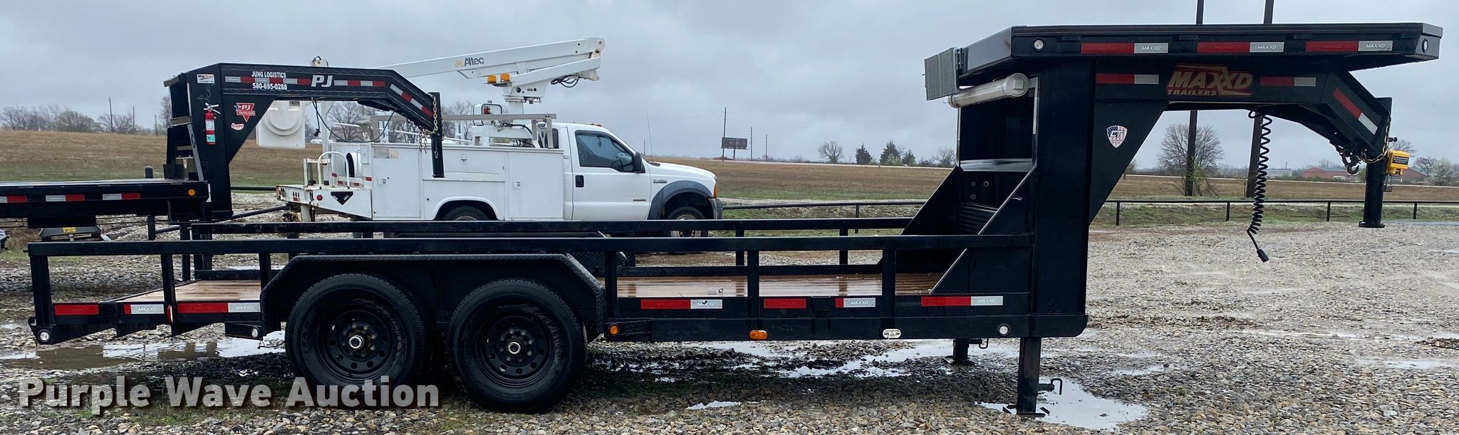 2020 Maxey Trailers equipment trailer. VIN: 5R8GU1829LM071010. Dimensions Overall: 26' L x 99" W, Deck: 18' L x 82" W, Top deck length: 8'. Features Deck type: Wood. Chassis Hitch: Gooseneck, Landing gear: Dual, Two speed, Suspension: Spring, Brakes: Electric, Axles: Tandem, GVWR: 14,000 lbs, GAWR: 7,000 lbs. Tires Size: ST235/80R16. Transfer of ownership documentation will be a bill of sale. 444 Glen D Johnson Road. Okemah, OK 74859