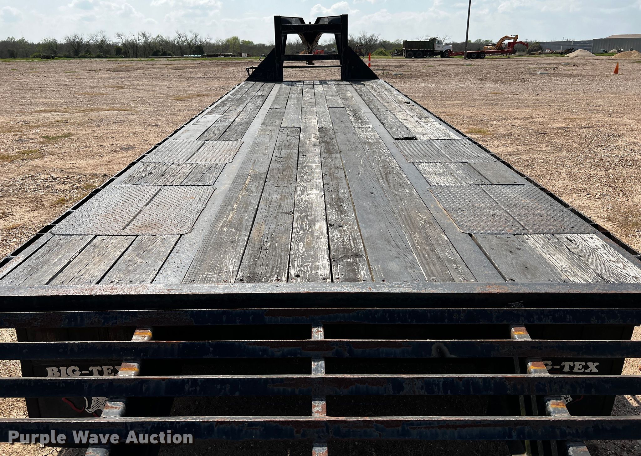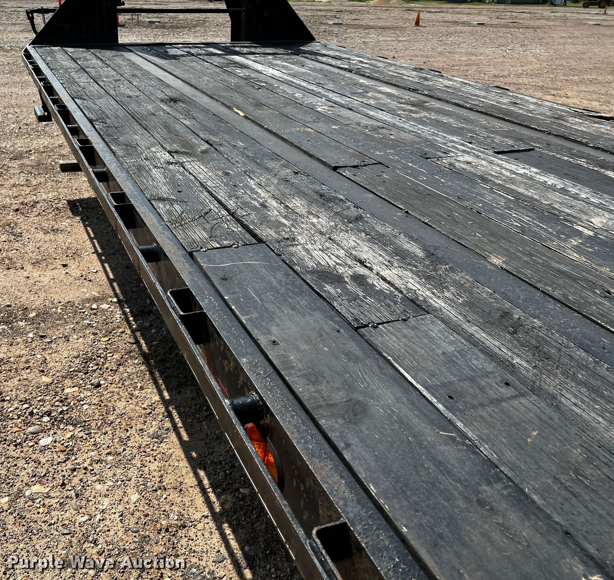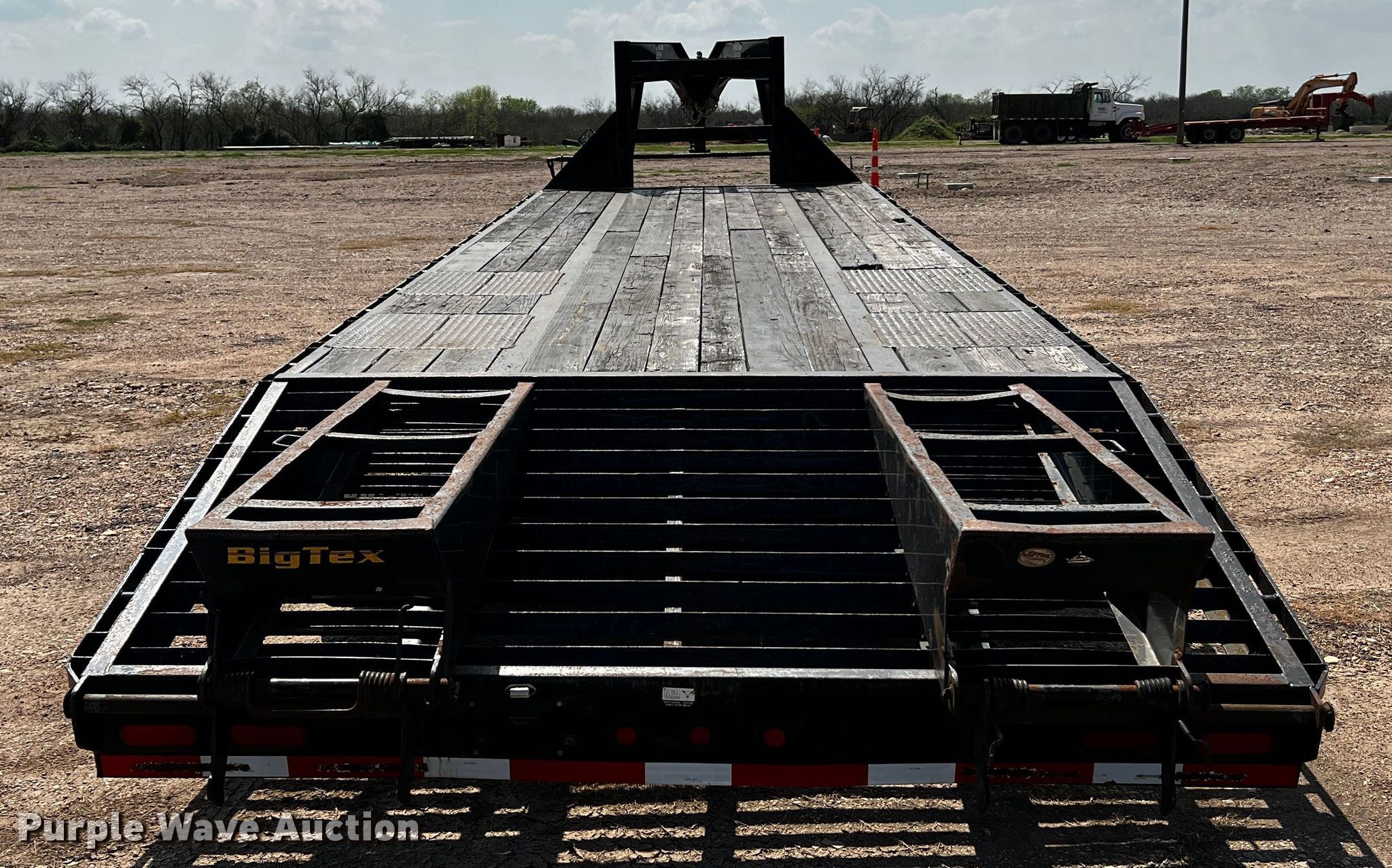 2012 Big Tex 22GN-25BK+5 equipment trailer. VIN: 16VGX2528C2642222. Dimensions Overall: 39' L x 102" W, Deck: 25' L x 98" W, Deck height: 32", Tail length: 5' 3", Ramps: Manual Length: 5' 3". Features Deck type: Wood. Chassis Hitch: Gooseneck, Landing gear: Dual, Two speed, Suspension: Spring, Brakes: Electric, Axles: Tandem, GVWR: 22,500 lbs, GAWR: 10,000 lbs. Tires Steel wheels, Size: 235/80R16. Texas title. Title distribution may be delayed up to 14 days from verification of funds. Falcon Lease Operating Company. 31 Salem Rd. Victoria, TX 77904