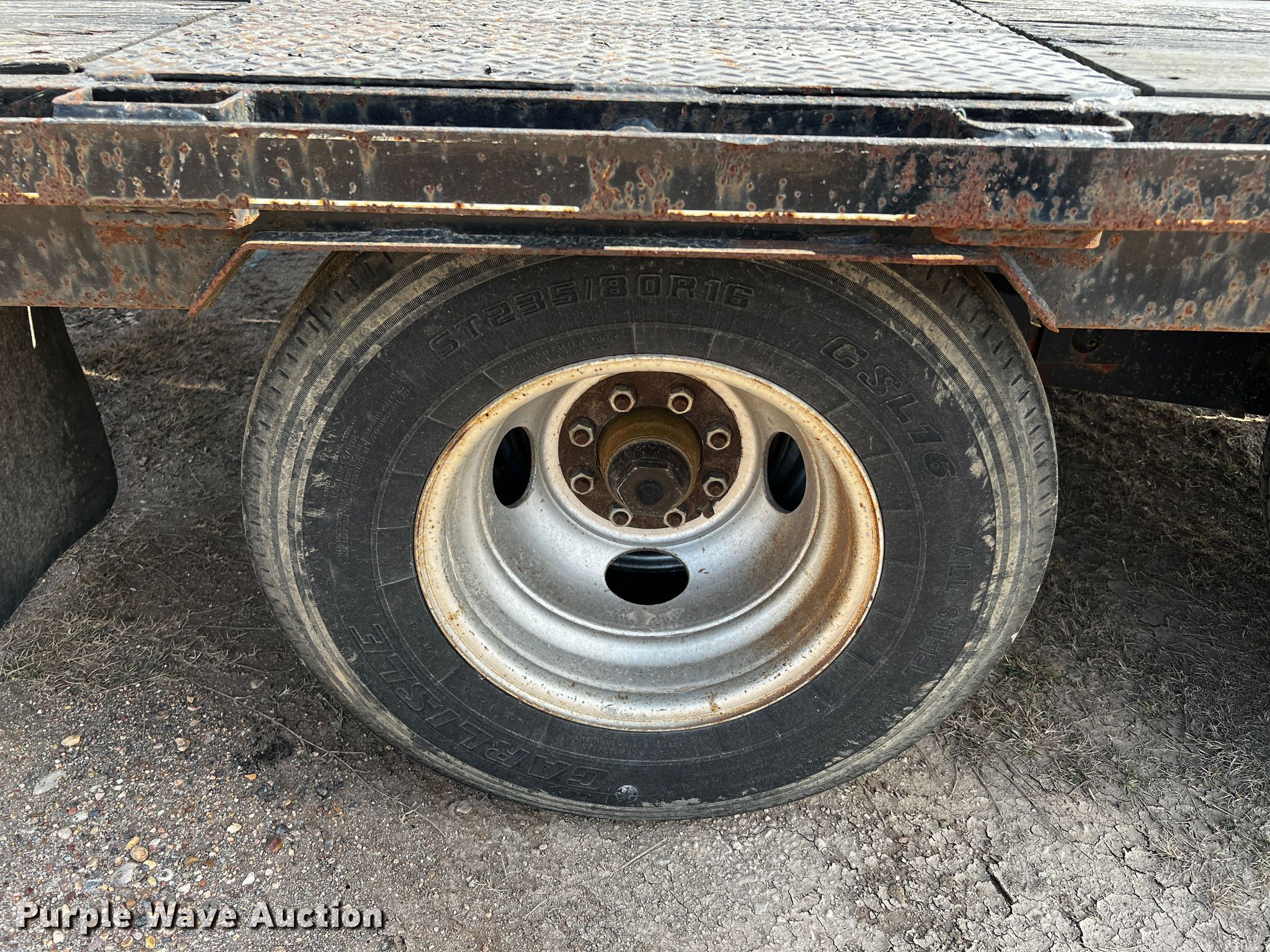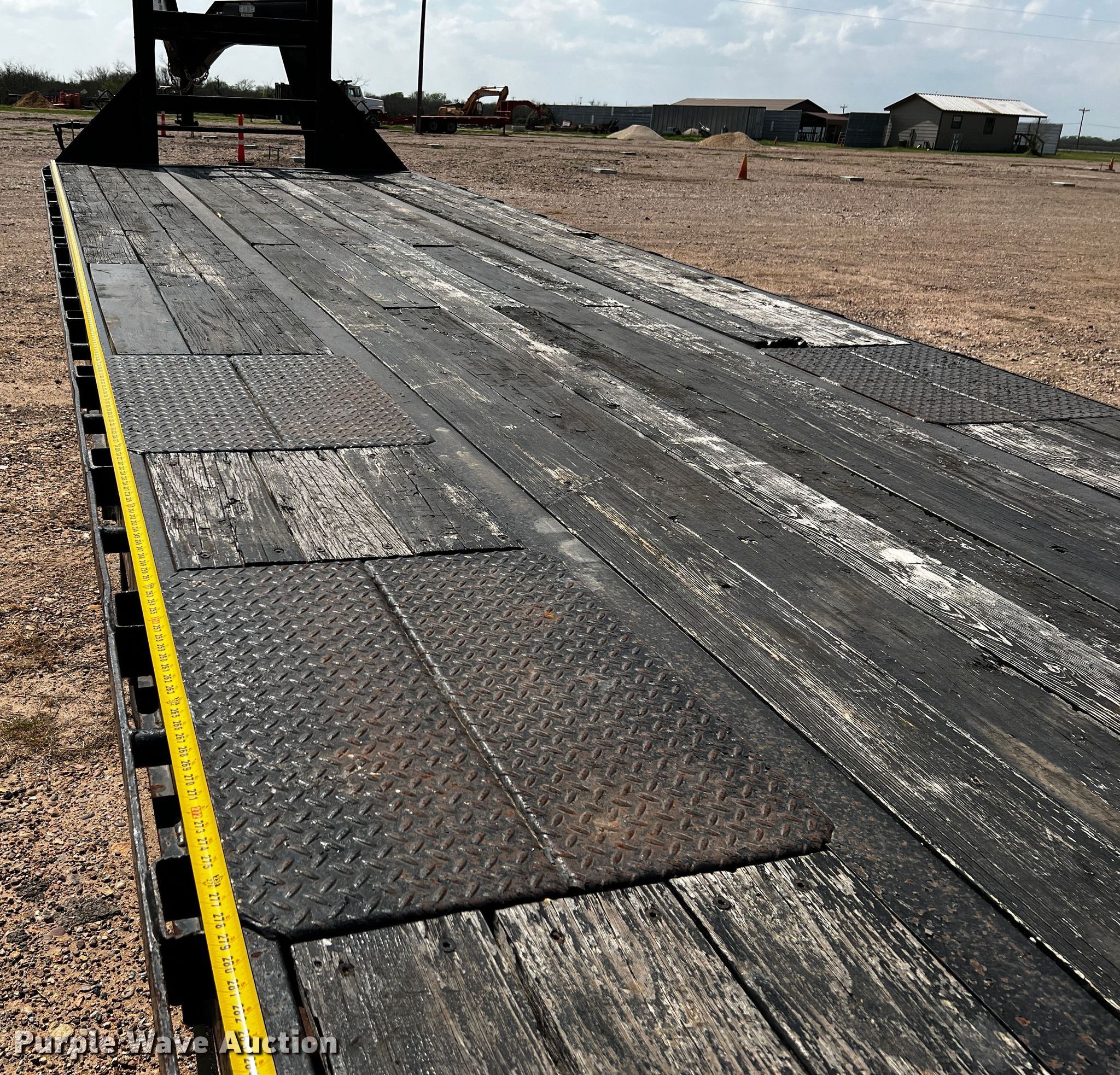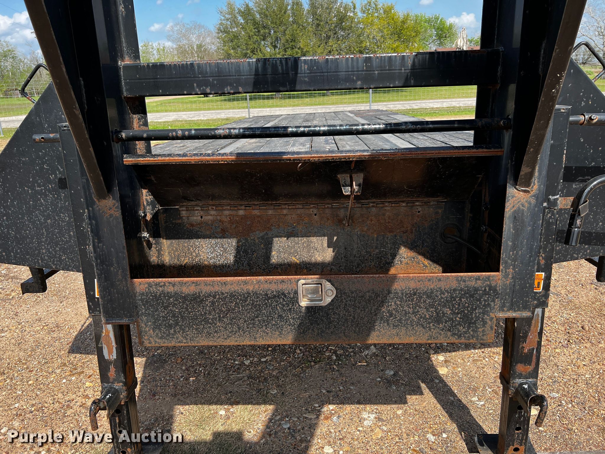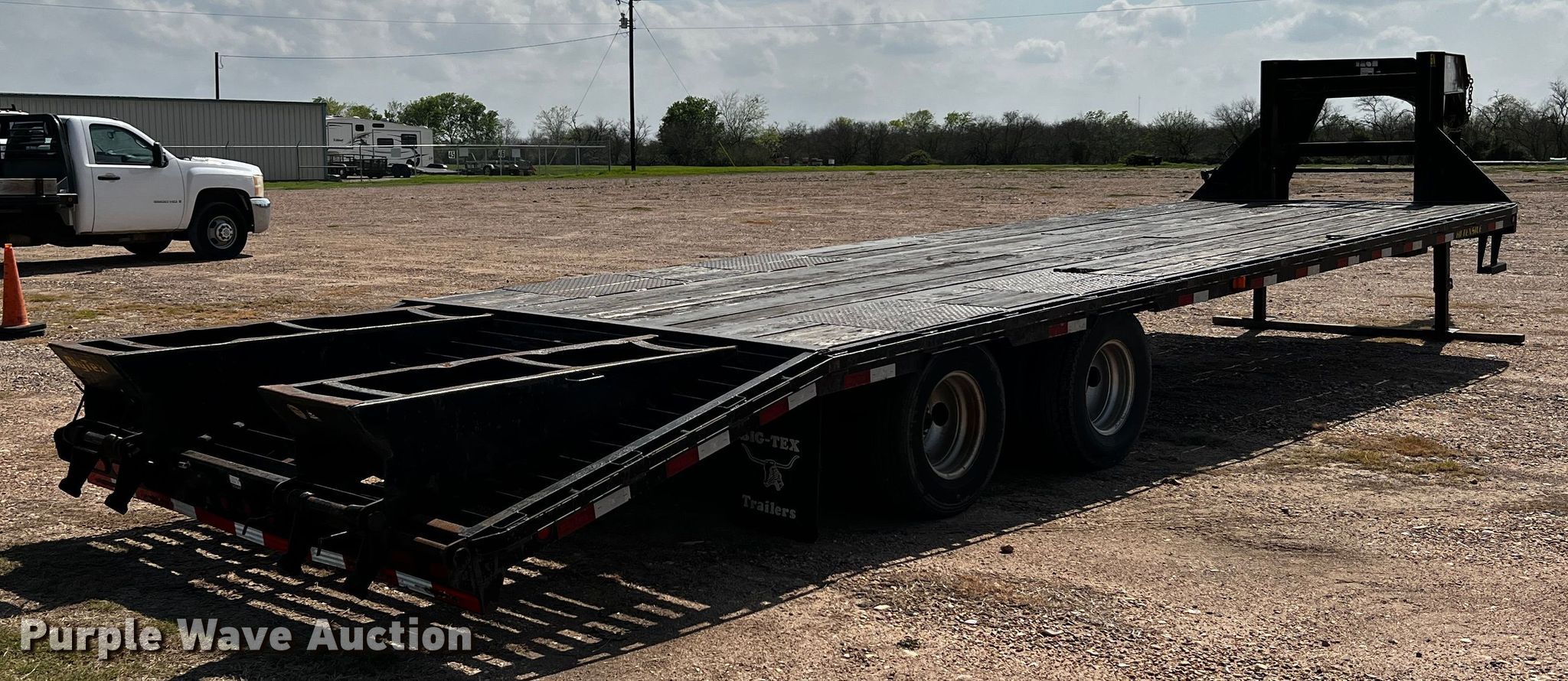 2012 Big Tex 22GN-25BK+5 equipment trailer. VIN: 16VGX2528C2642222. Dimensions Overall: 39' L x 102" W, Deck: 25' L x 98" W, Deck height: 32", Tail length: 5' 3", Ramps: Manual Length: 5' 3". Features Deck type: Wood. Chassis Hitch: Gooseneck, Landing gear: Dual, Two speed, Suspension: Spring, Brakes: Electric, Axles: Tandem, GVWR: 22,500 lbs, GAWR: 10,000 lbs. Tires Steel wheels, Size: 235/80R16. Texas title. Title distribution may be delayed up to 14 days from verification of funds. Falcon Lease Operating Company. 31 Salem Rd. Victoria, TX 77904