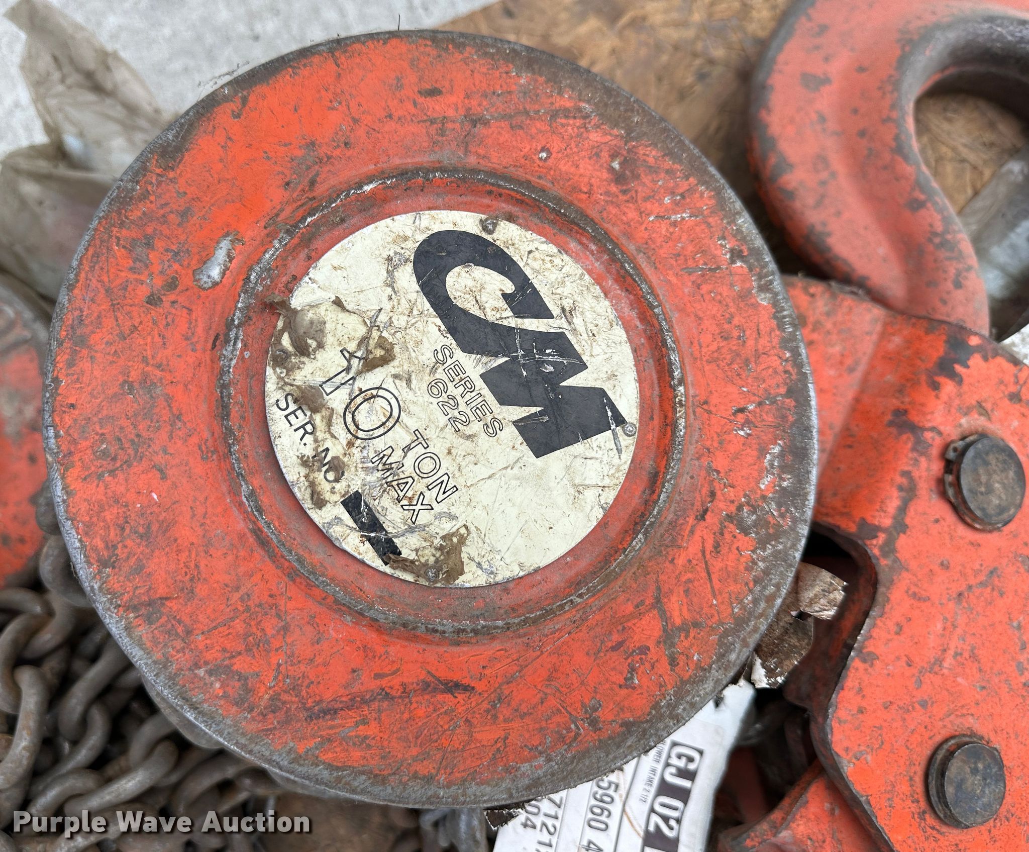 Purple Wave is selling a used Tools in Kansas. This item is a CM Series 622 chain hoist with the following: Capacity: 10 tons