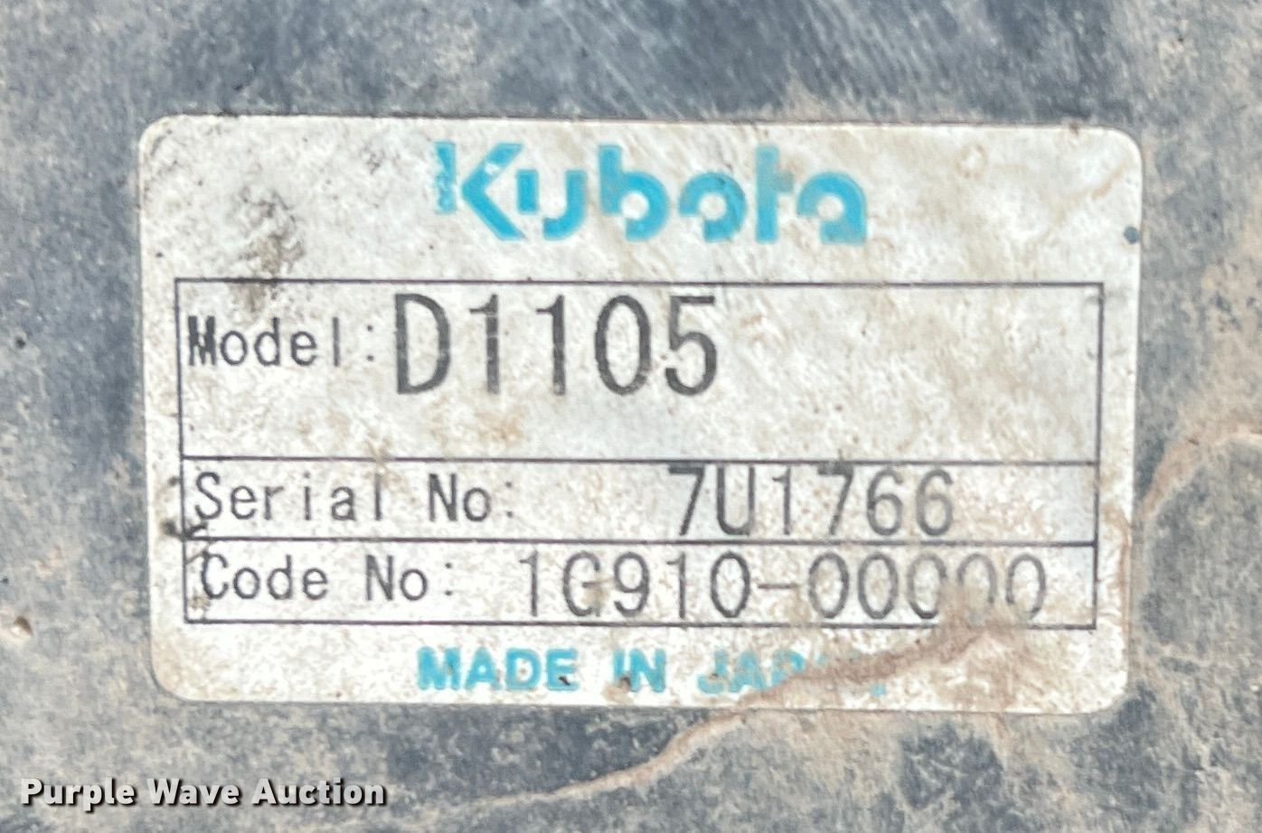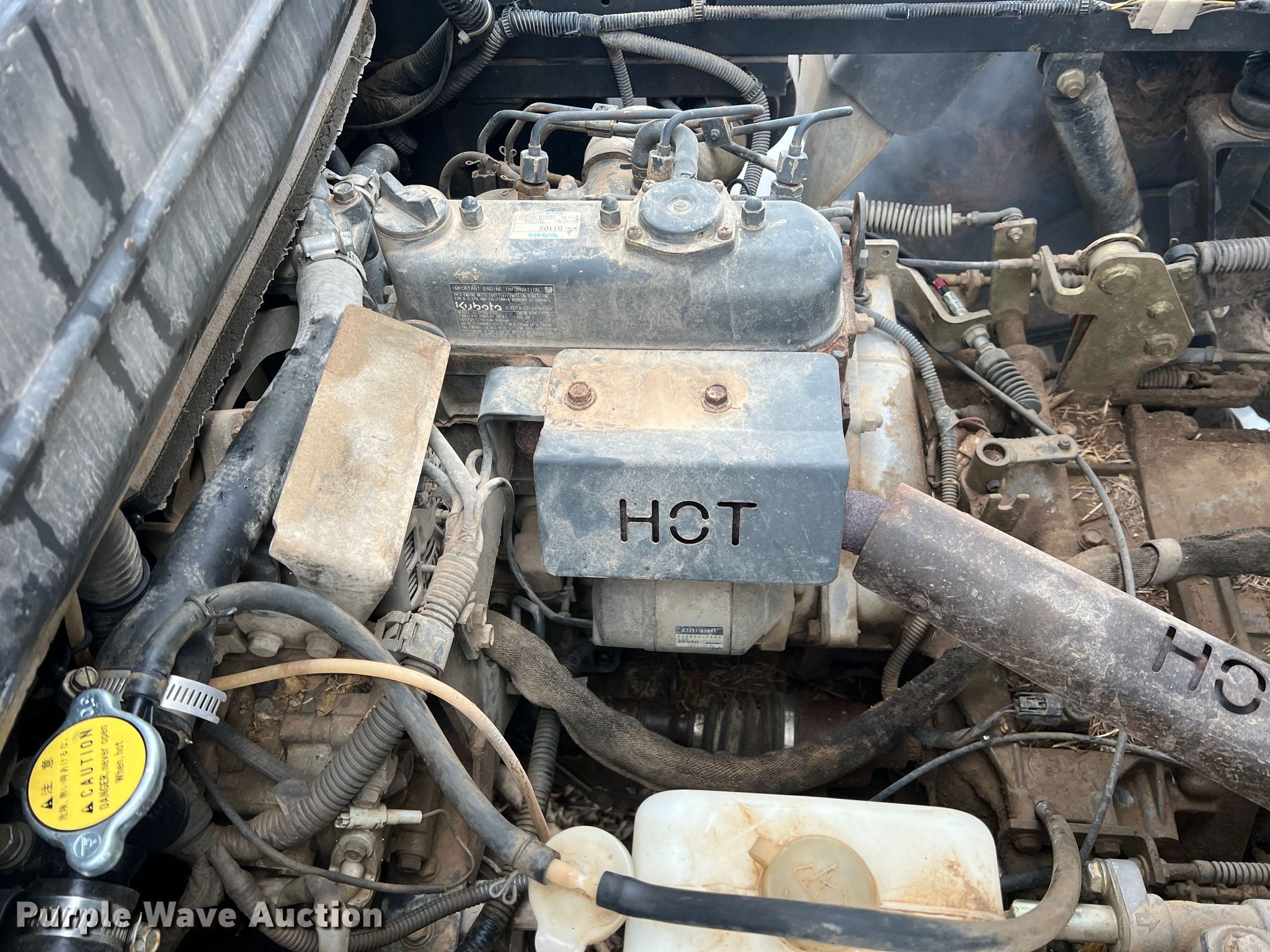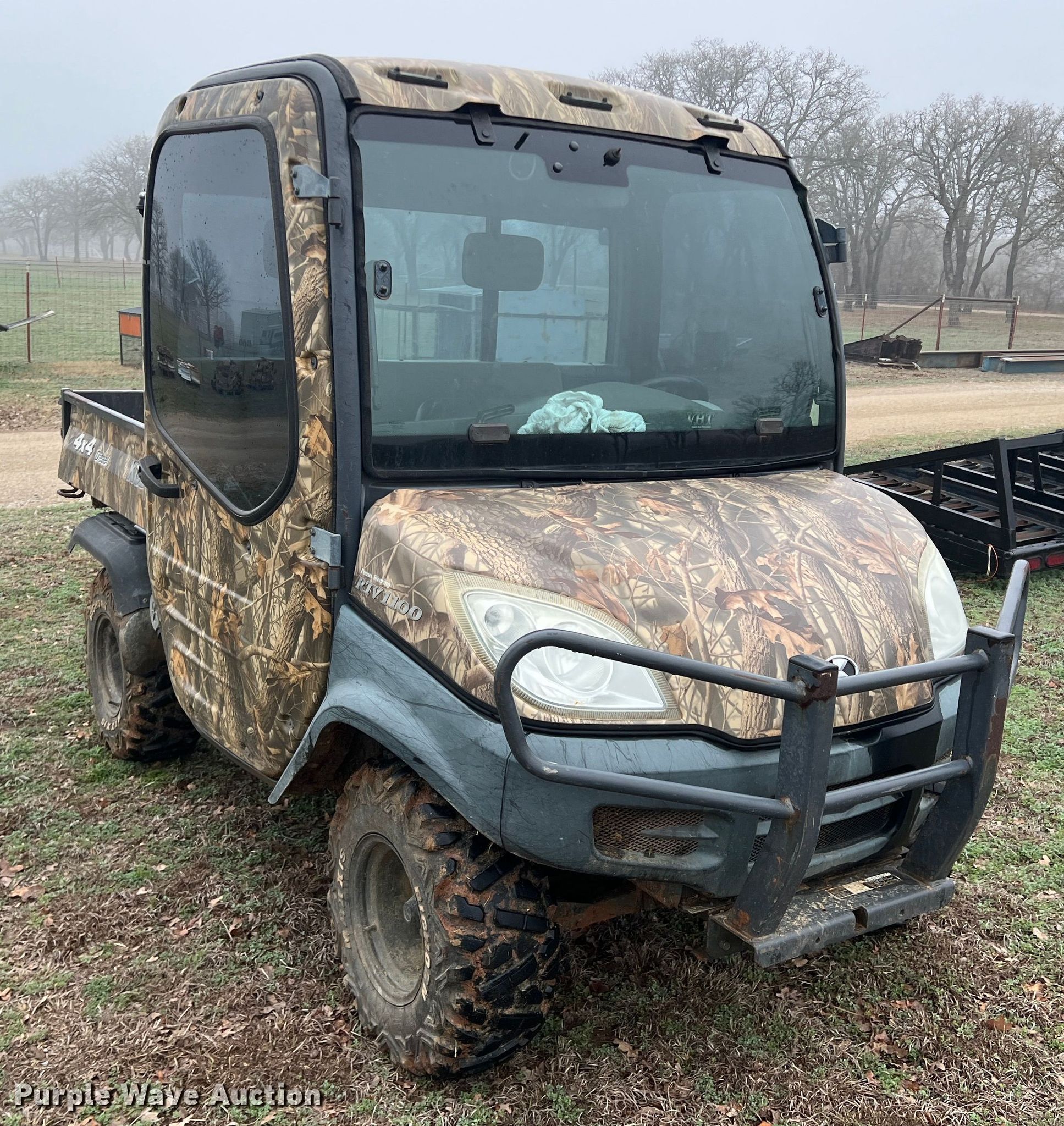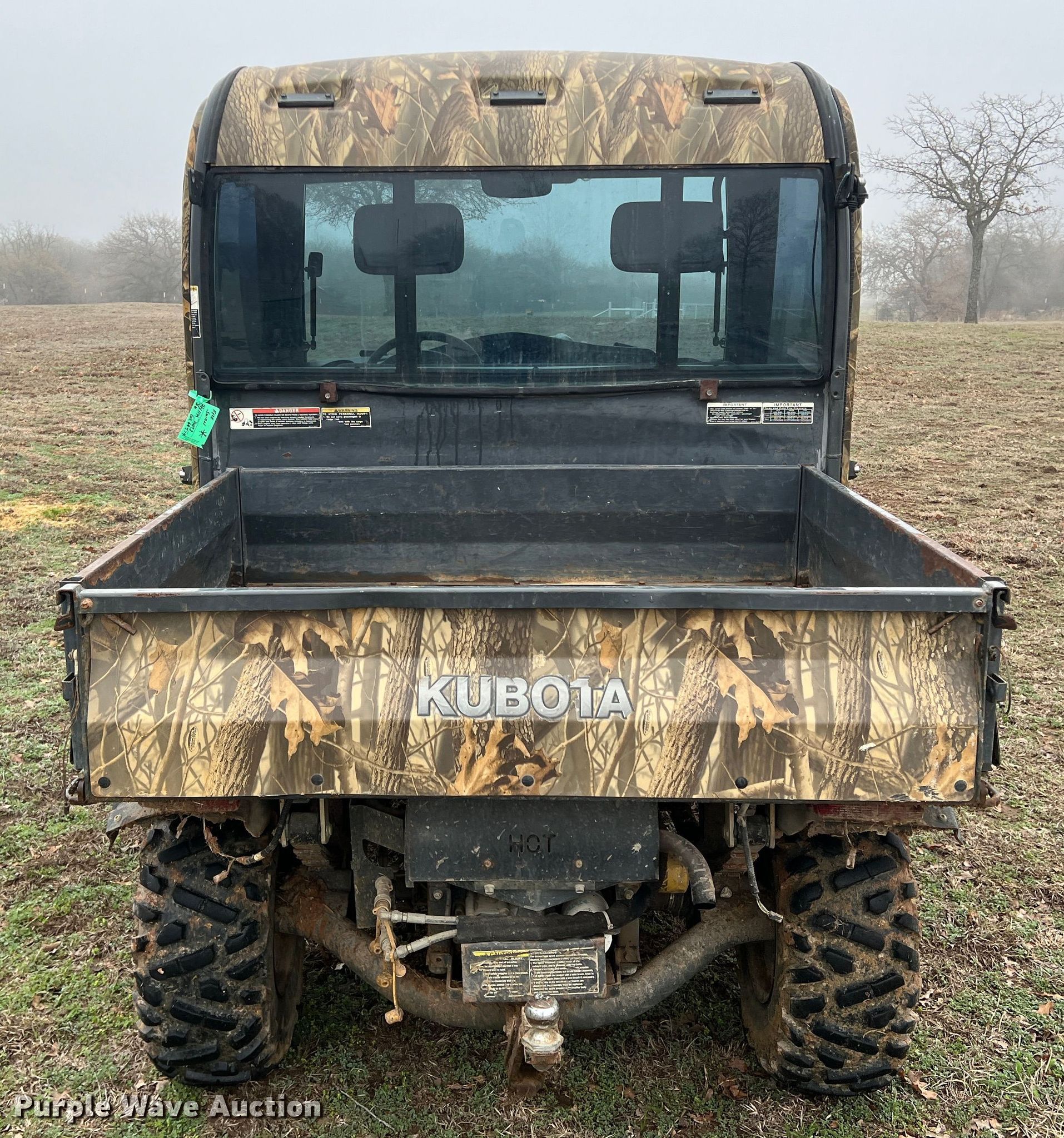 2001 Kubota RTV1100 utility vehicle. Miles: 838 on odometer, VIN: KRTV110071016073, Serial: 16073. Engine Kubota D1105, Displacement: 1.1L, Cylinders: 3, Fuel type: Diesel, Electric start. Transmission CVT. Chassis Four wheel drive. Operators station Enclosed cab, AC, Heat, Passengers: 2. Features Grill guard, Receiver hitch, Dump bed 49" L x 54" W, Dump bed type: Electric/ Hydraulic. Tires Size: 25x10R12. Notes Possible engine issues, smokes. Transfer of ownership documentation will be a bill of sale. 9301 Farm To Market Rd 4. Jacksboro, TX 76458