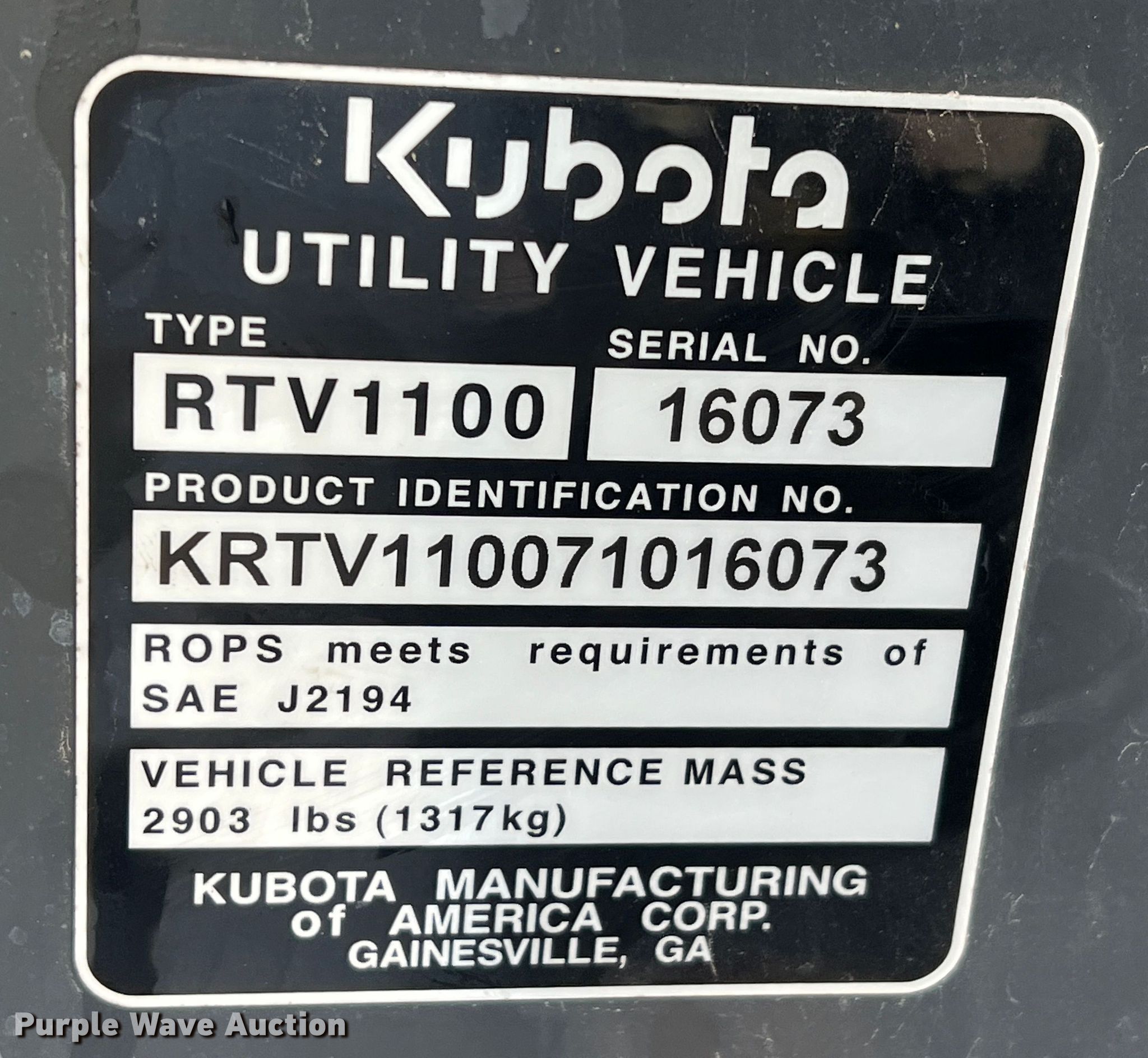 Purple Wave is selling a used Utility Vehicle in Texas. This item is a 2001 Kubota RTV1100 utility vehicle with the following: Miles: 838 on odometer, VIN: KRTV110071016073, Serial: 16073