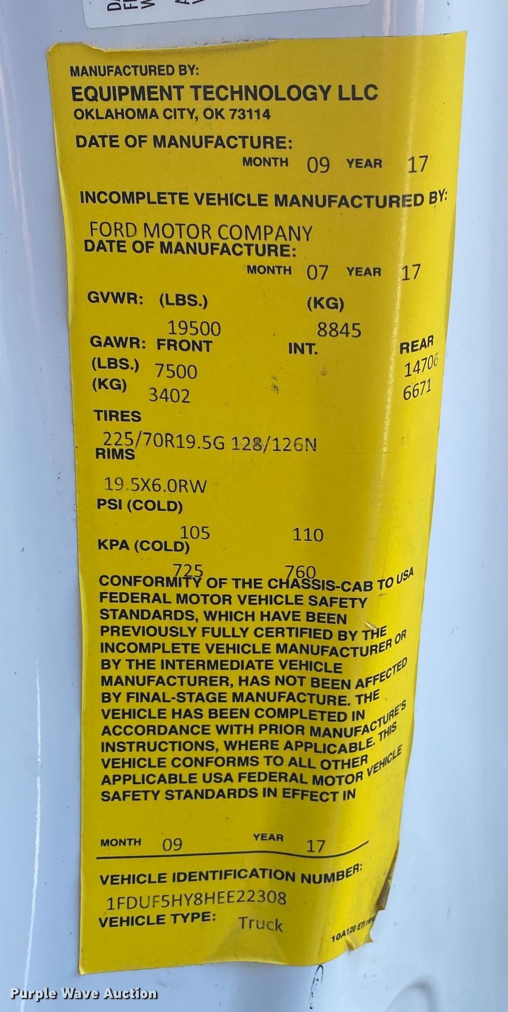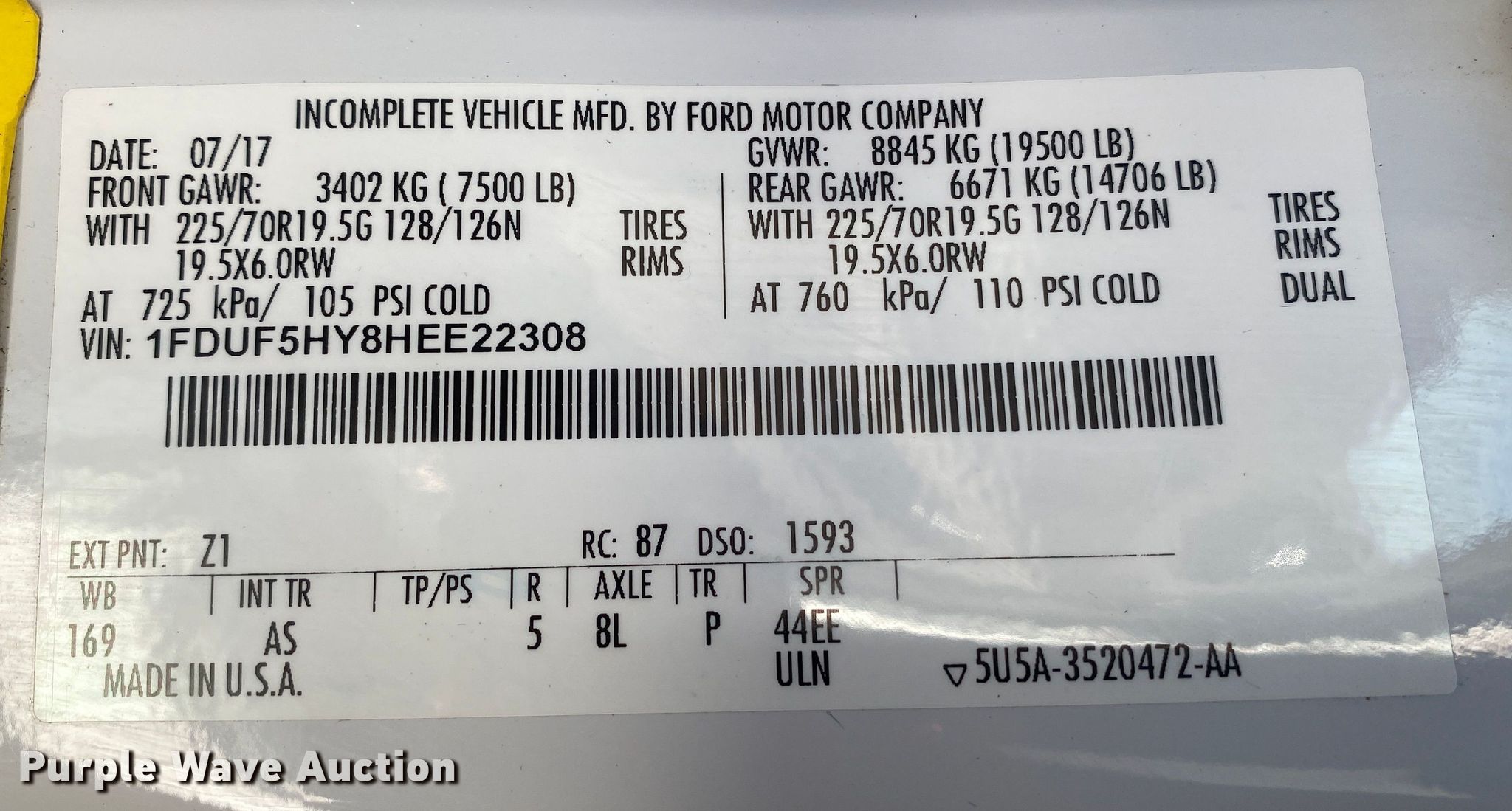 Purple Wave is selling a used Truck Chassis in Oklahoma. This item is a 2017 Ford F550 XL truck cab and chassis with the following: Miles: 63,223 on odometer, VIN: 1FDUF5HY8HEE22308