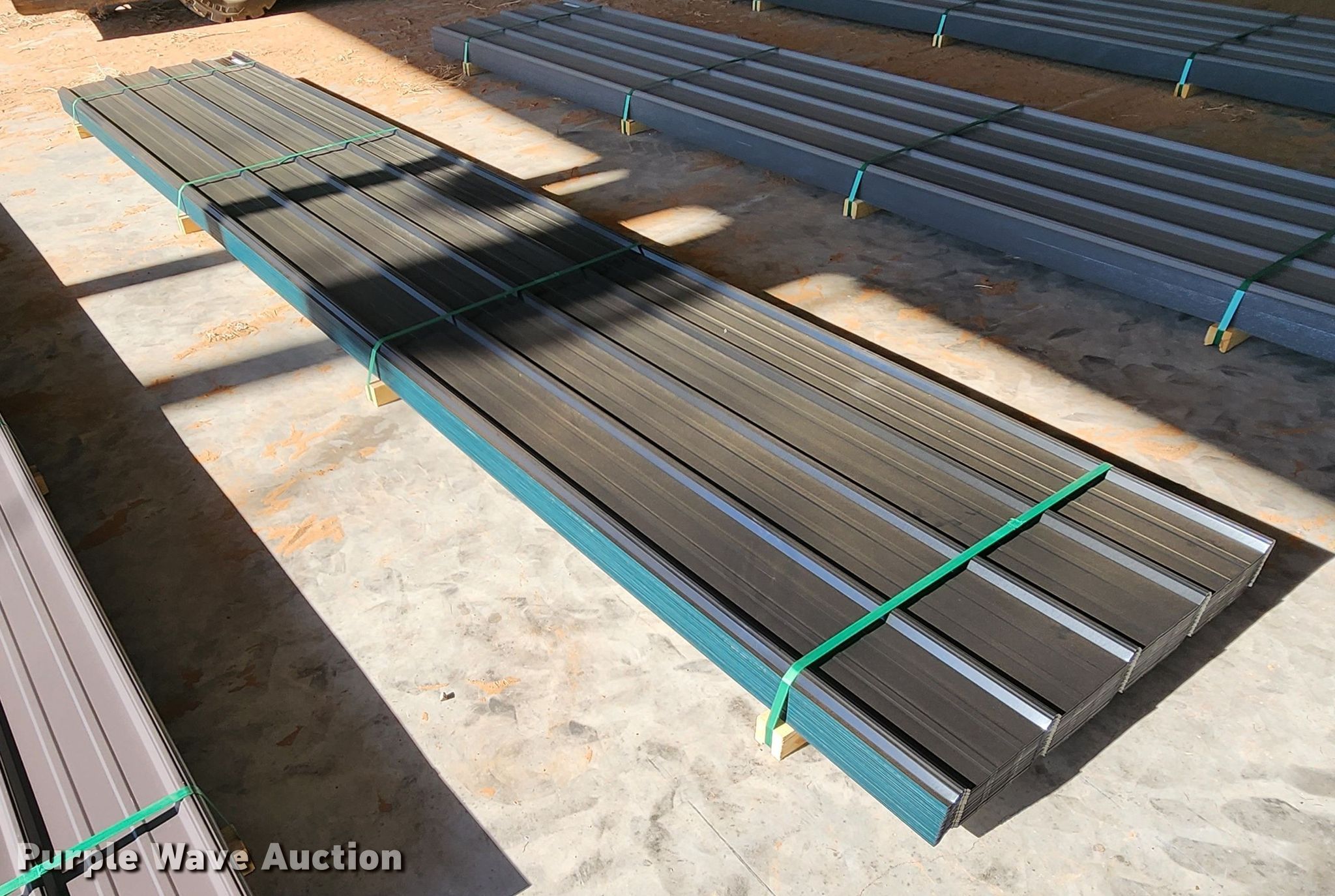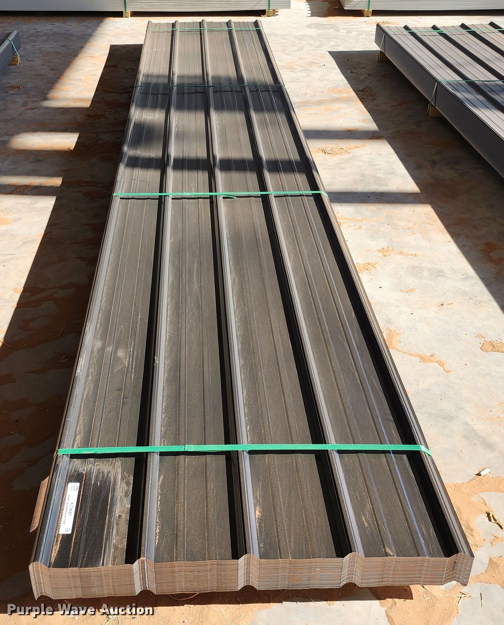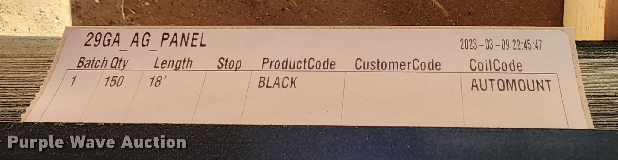 Purple Wave is selling a used Building Materials in Texas. This item is a (150) sheets of Doerksen Metal Components metal siding/roofing with the following: 18' L x 36" W overlap coverage, AG panel profile, 29 gauge, Color: Black, Possible blemishes