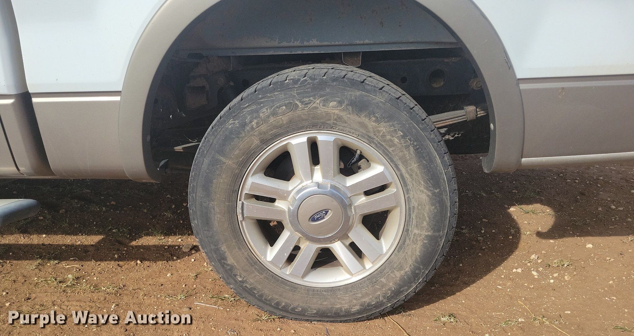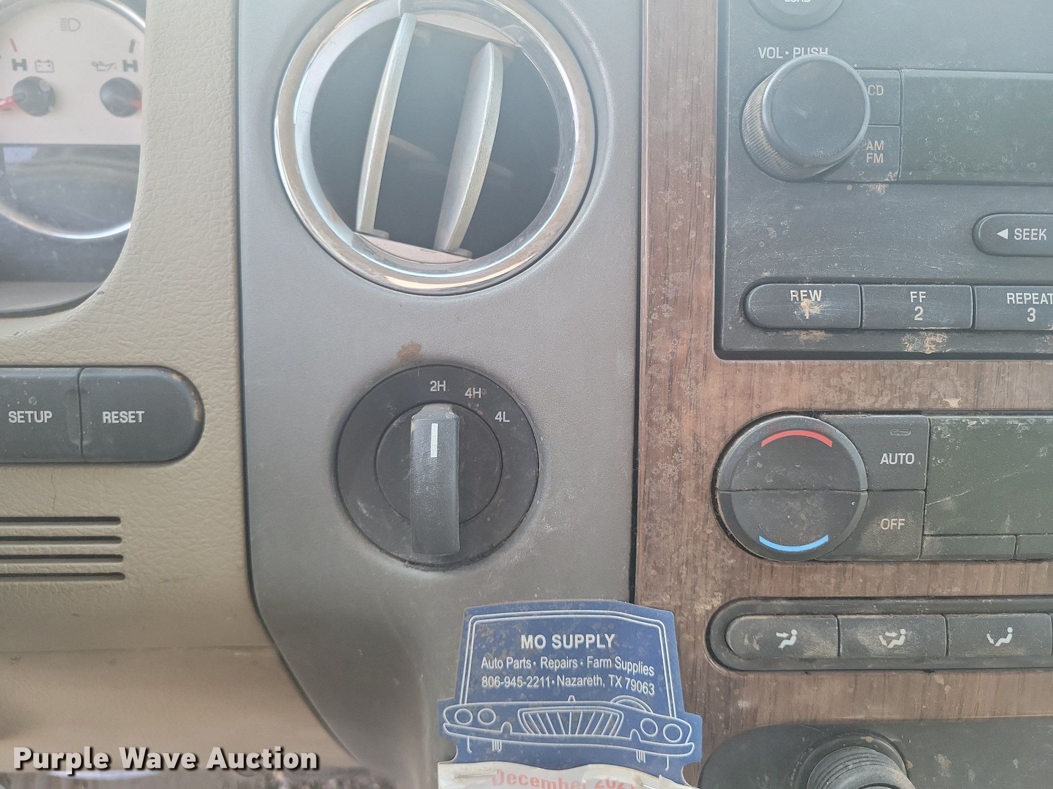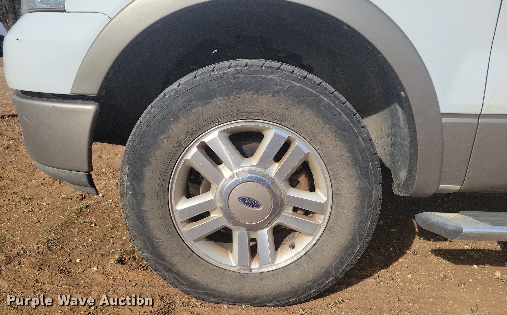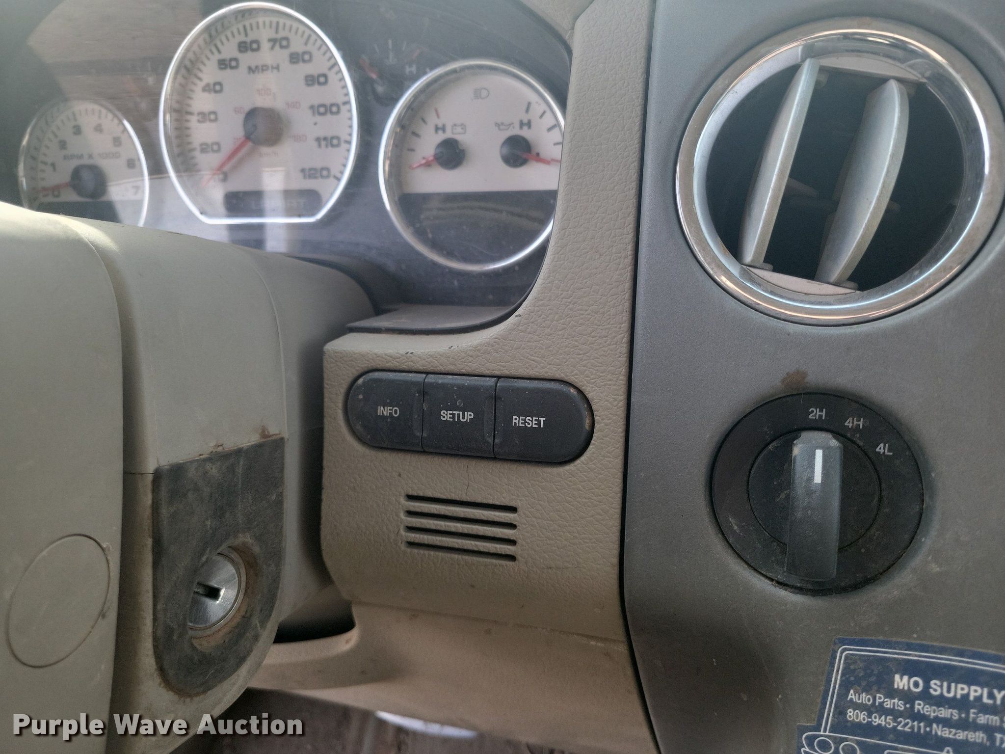 2004 Ford F150 SuperCrew pickup truck. Miles: Unknown, VIN: 1FTPW14524KD64858. Engine Displacement: 5.4L V8 SOHC, Cylinders: 8, Fuel type: Gas. Transmission Automatic, Four wheel drive. Interior AC, Heat, Seat: Power driver, Power windows, Power locks, Cruise control. Tires Size: LT275/65R18. Notes Battery missing, Windshield chipped or cracked, Unknown operating condition. Texas title. Dutton farms. 6428 County Road R. Tulia, TX 79088