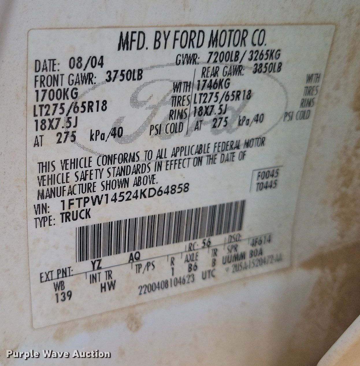 Purple Wave is selling a used 1/2 Ton Pickup or Van in Texas. This item is a 2004 Ford F150 SuperCrew pickup truck with the following: Miles: Unknown, VIN: 1FTPW14524KD64858