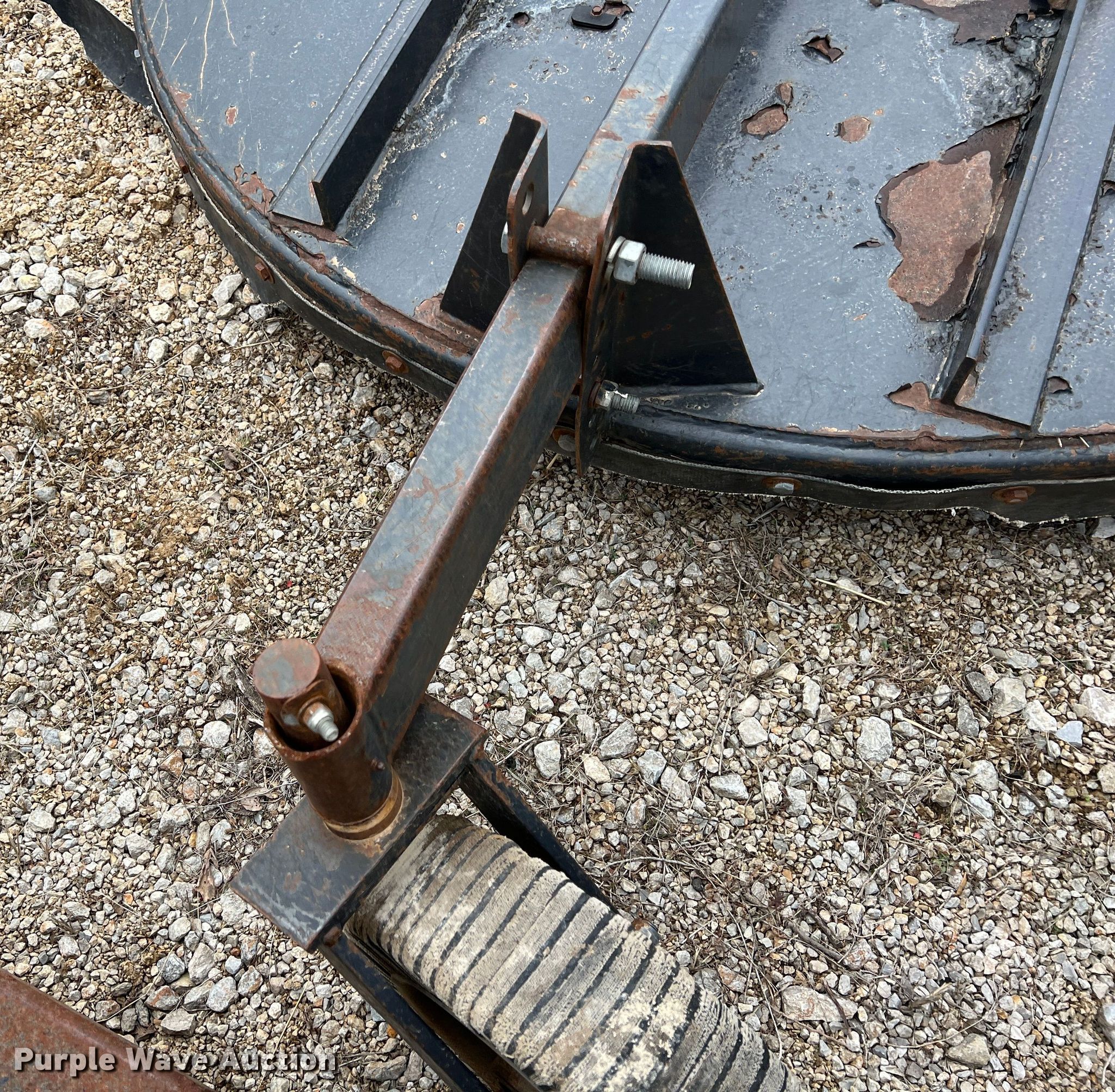 Rotary mower. Features. Width: 6', PTO: 540, Hitch: Three point. Tires Solid. Notes PTO half shaft missing. The Rental Station. Chanute, KS 66720