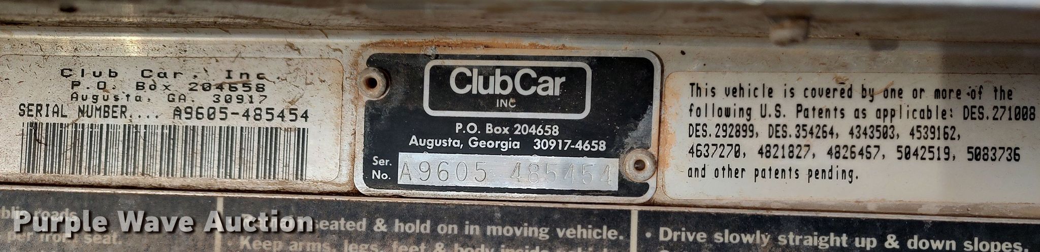 Purple Wave is selling a used Golf Cart in Oklahoma. This item is a Club Car golf cart with the following: Serial: A9605485464
