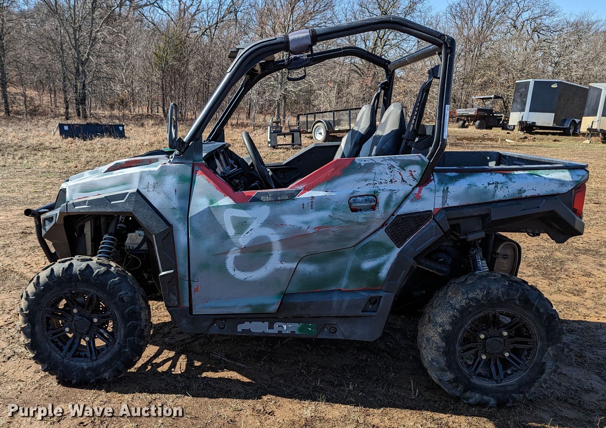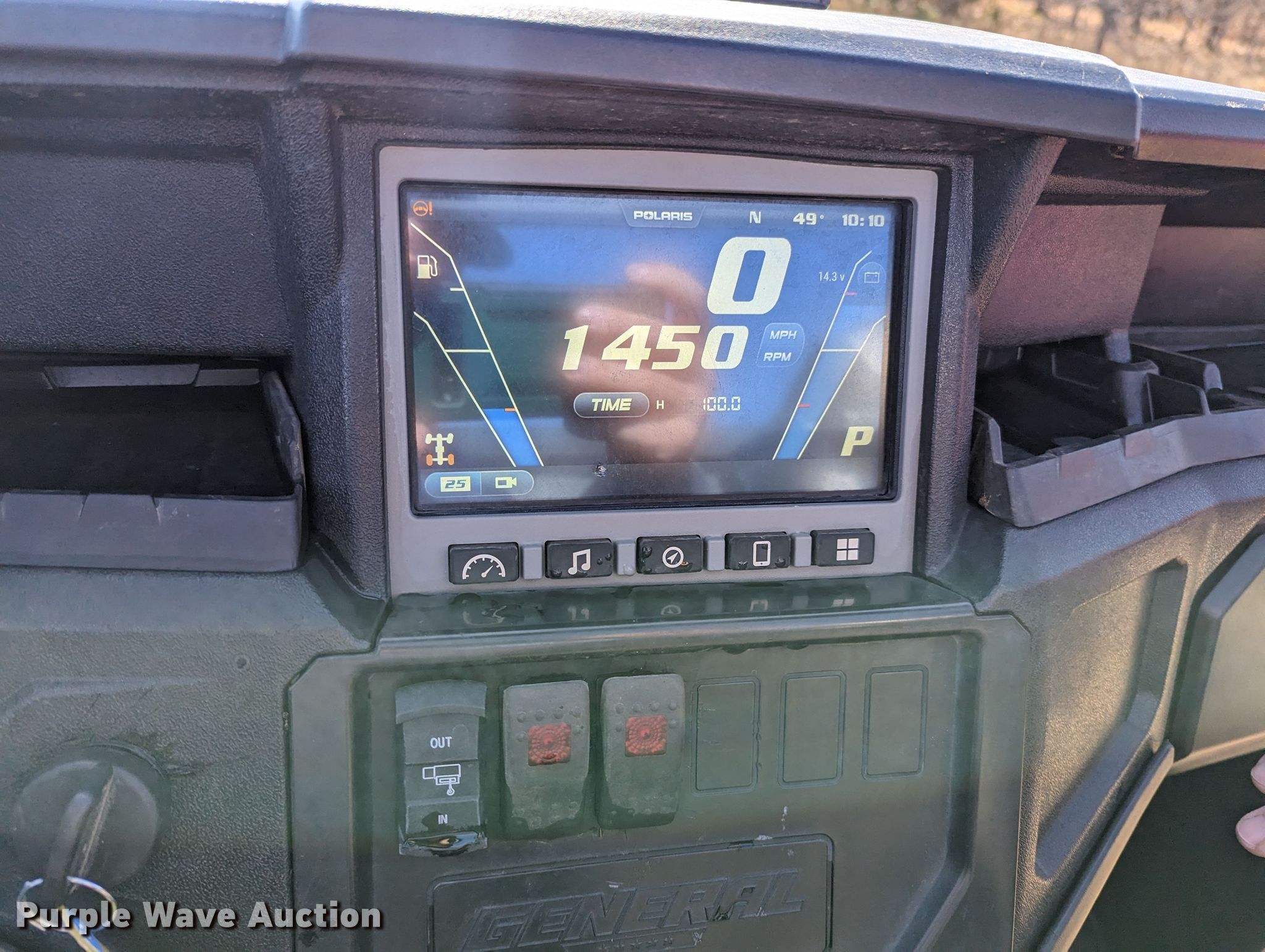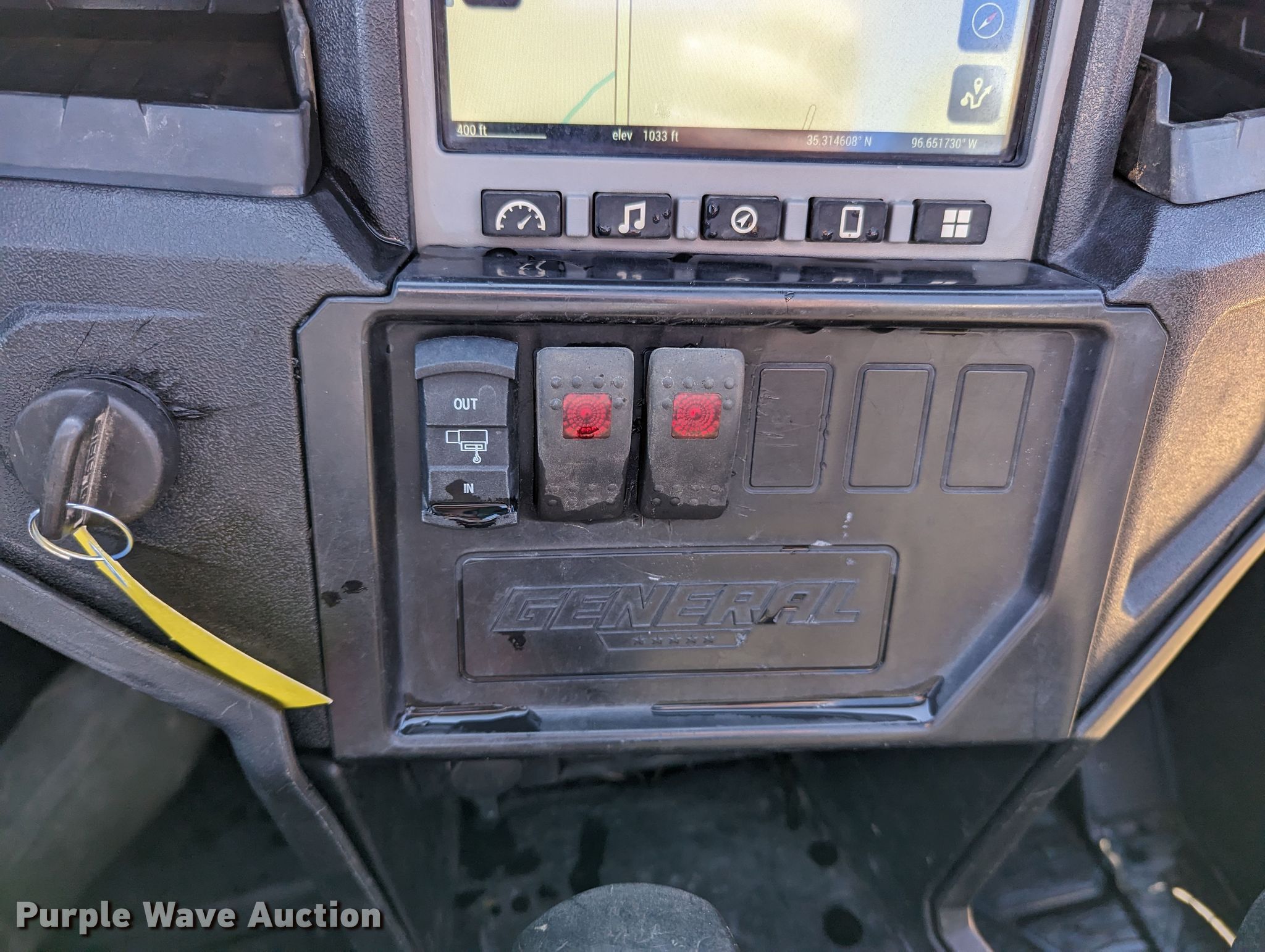 Purple Wave is selling a used Utility Vehicle in Oklahoma. This item is a 2018 Polaris General utility vehicle with the following: Miles: 5,191 on odometer, Hours: 585 on meter, VIN: 3NSRGK999JH469187, Claim # 2-810517