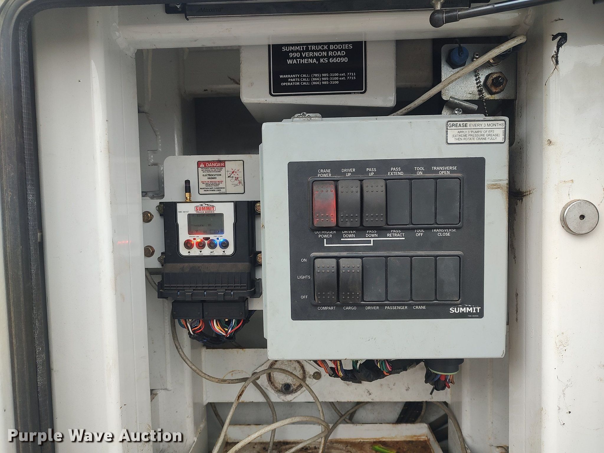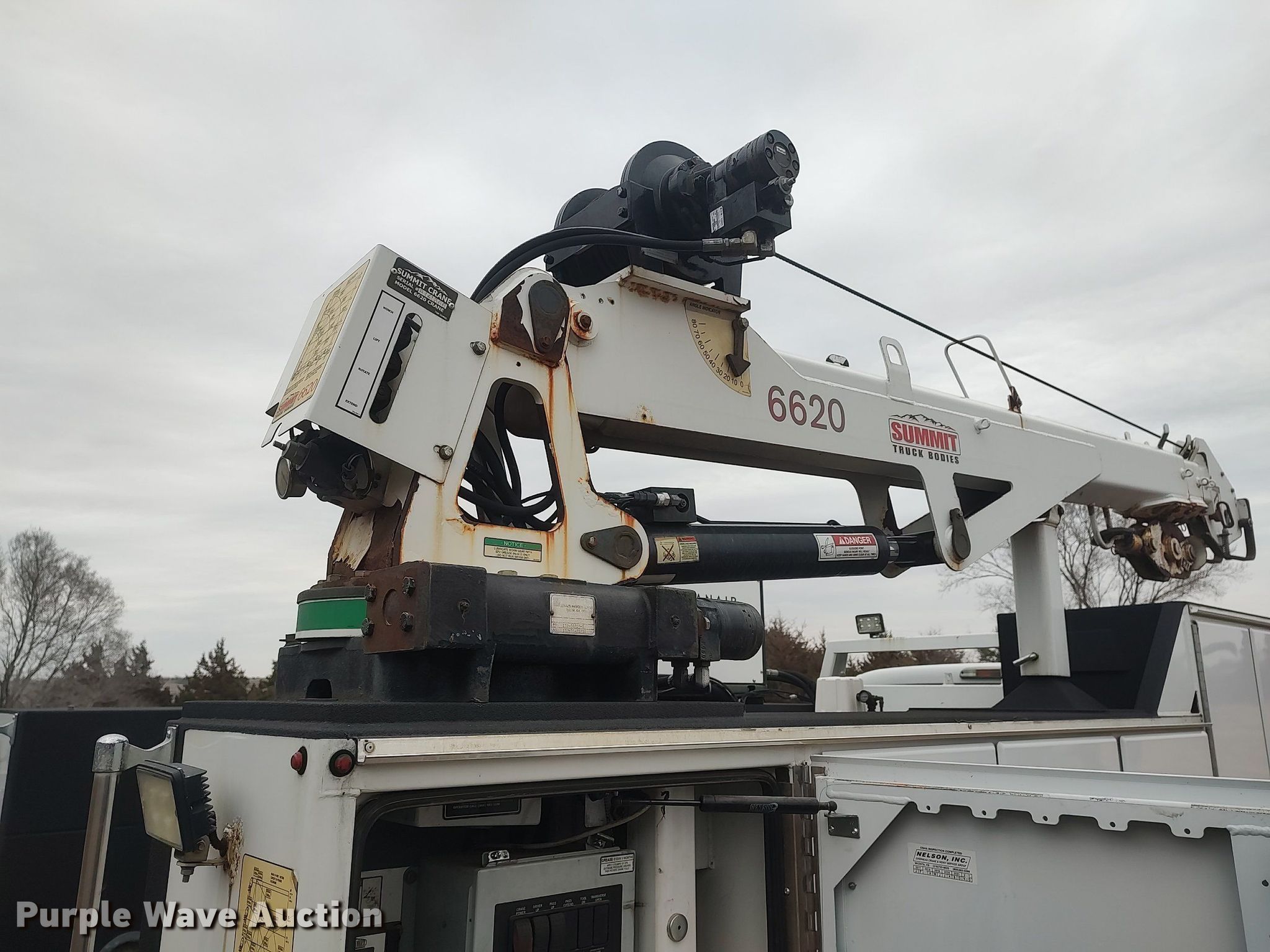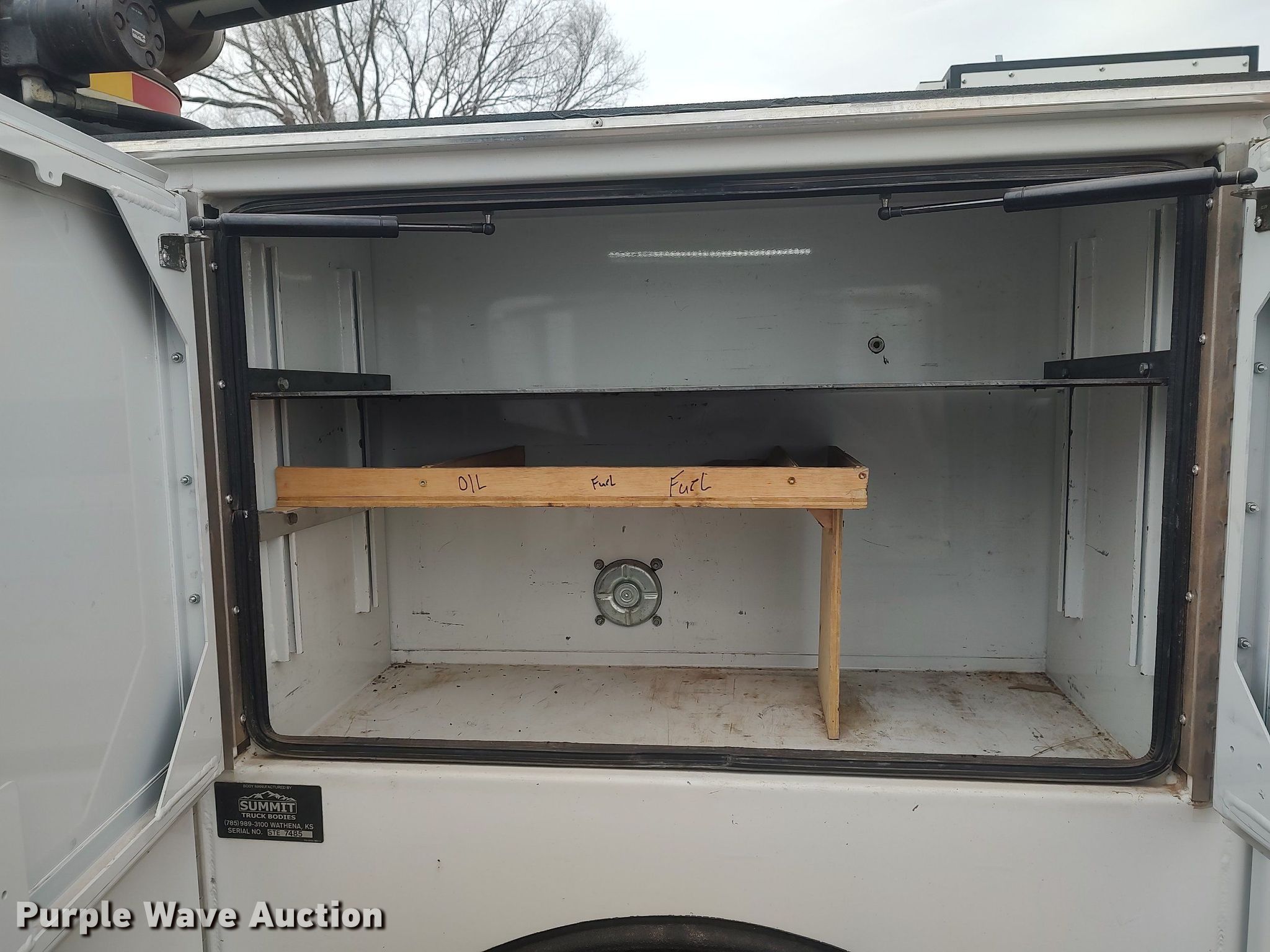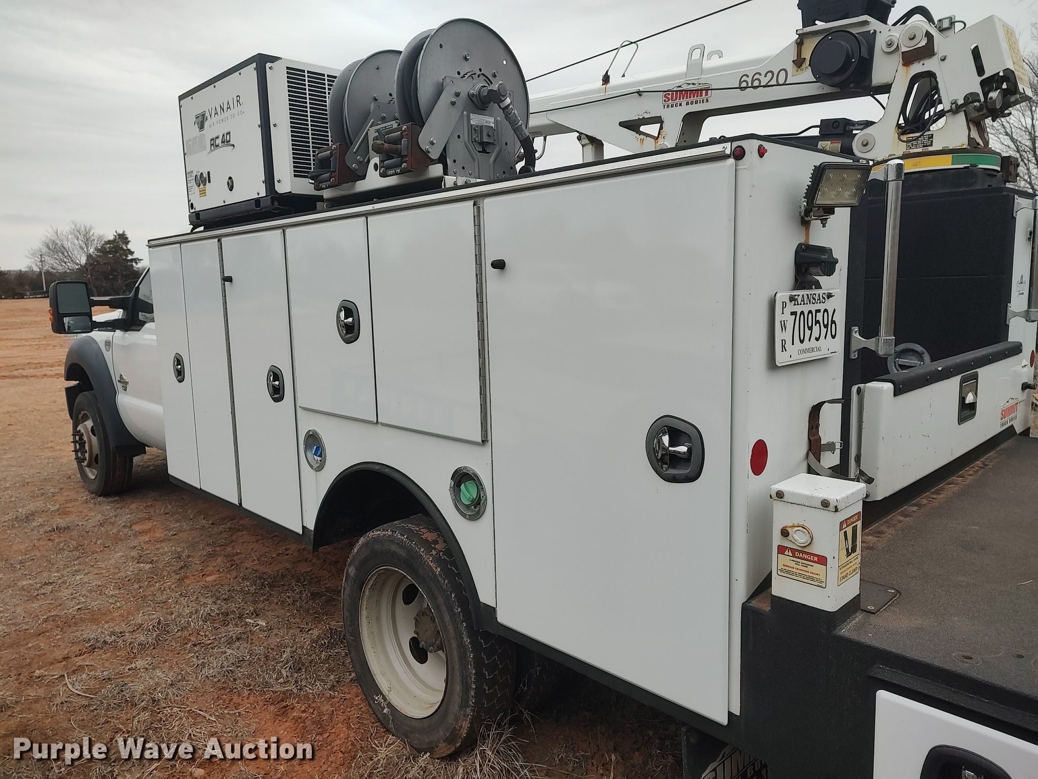 2014 Ford F550 utility / service truck. Miles: 139,438 on odometer, VIN: 1FDUF5GTXEEB28846. Engine Displacement: 6.7L, Cylinders: 8, Fuel type: Diesel. Transmission Automatic. Chassis Axles: Single, Suspension: Spring, Brakes: Hydraulic, PTO. Interior AC, Heat, Heated mirrors, Power windows, Power locks, Cruise control, Auxiliary controls, Brake controller. Features Bed Summit, 11' L x 96" W, Air compressor Vanair RC40, Crane Summit 6620, Maximum boom length: 22' Maximum lift capacity: 6,000 lbs.. Tires Size: 225/70R19.5. Notes Engine issues, low compression, Dash warning indicator: Check engine, Dead battery. Kansas title. Mileage has not been verified. Odometer discrepancy will be marked on the title. Title distribution may be delayed up to 14 days from verification of funds. PrairieLand Partners. 1202 U.S. 54. Kingman, KS 67068
