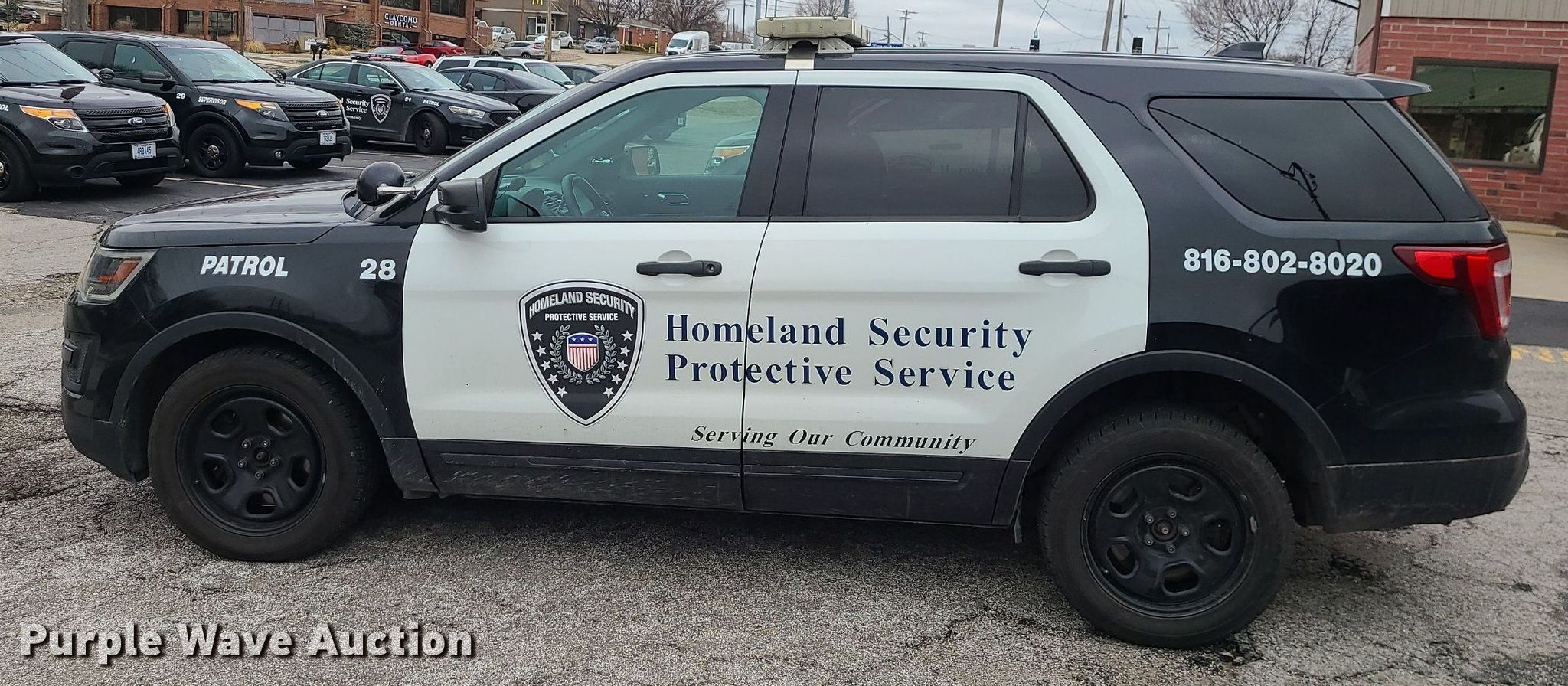 2016 Ford Explorer Police Interceptor SUV. Miles: 204,490 on odometer, VIN: 1FM5K8AT3GGA78597, Unit #: 28. Engine Displacement: 3.5L V6 DOHC, Cylinders: 6, Fuel type: Gas. Transmission Automatic. Interior AC, Heat, Seat: Power driver, Power windows, Power locks, Cruise control. Tires Size: 245/55R18. Notes Dash warning indicator: TPMS, Non-operational power steering. Missouri title. Seller is a Missouri licensed motor vehicle dealer. Title will be assigned and distributed by the dealer. Please contact the seller for distribution questions. Homeland Security Protective Service. 287 East 69 Highway. Claycomo, MO 64119