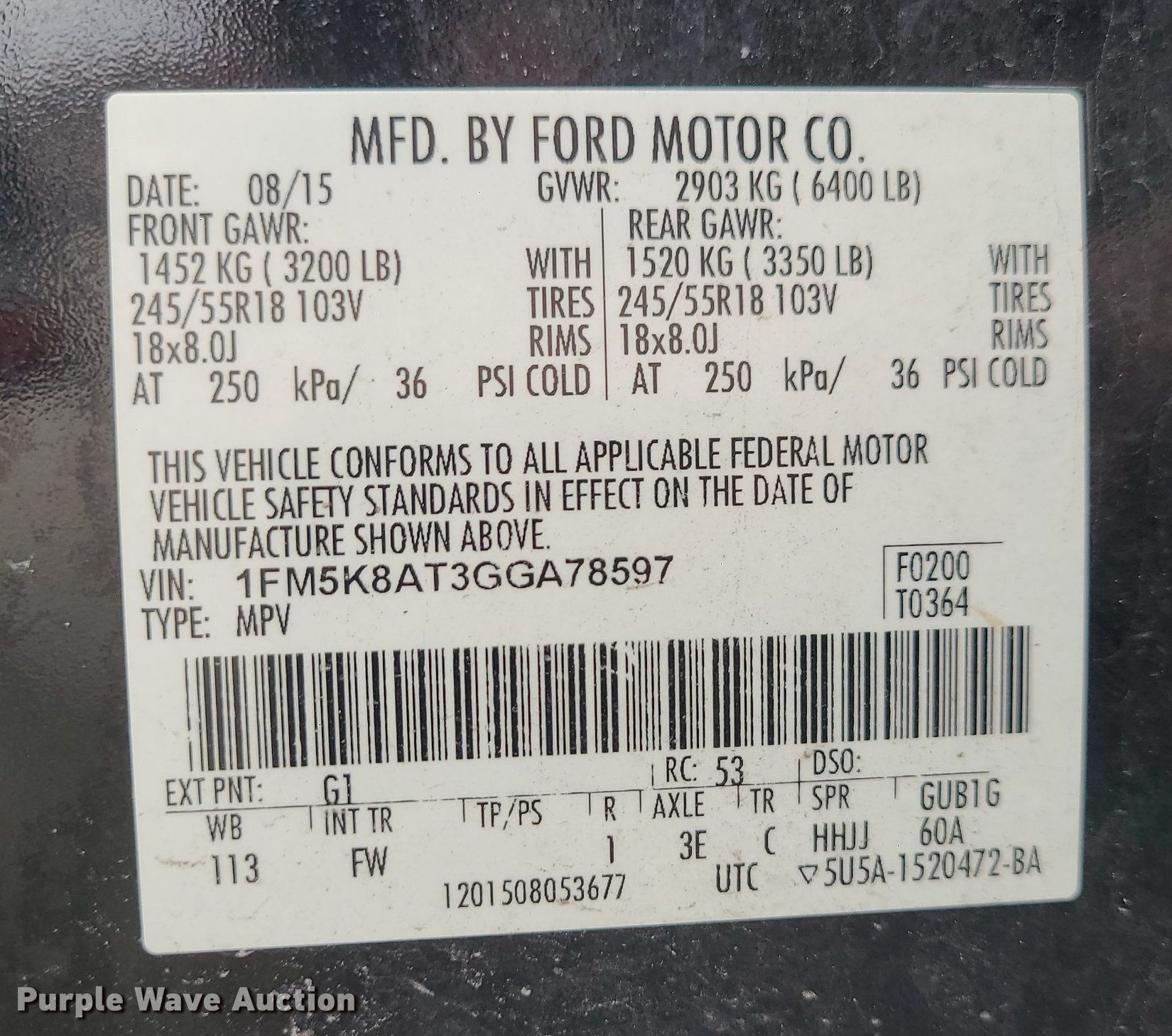 • VIN: 1FM5K8AT3GGA78597
