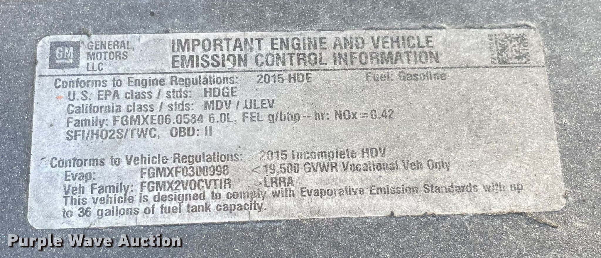 2015 Chevrolet Silverado 3500HD utility bed pickup truck. Miles: 200,022 on odometer, VIN: 1GB3CYCG3FZ120248. Engine Displacement: 6.0L V8 OHV, Cylinders: 8, Fuel type: Gas. Transmission Automatic. Interior AC, Heat, Power locks, Cruise control. Features Utility bed 8' L x 82" W, Anthony end gate lift. Tires Size: LT275/70R18. Notes Windshield chipped or cracked, Non-operational unit. Oklahoma title. Title distribution may be delayed up to 30 days from verification of funds. 10220 W Reno Ave. Oklahoma City, OK 73127