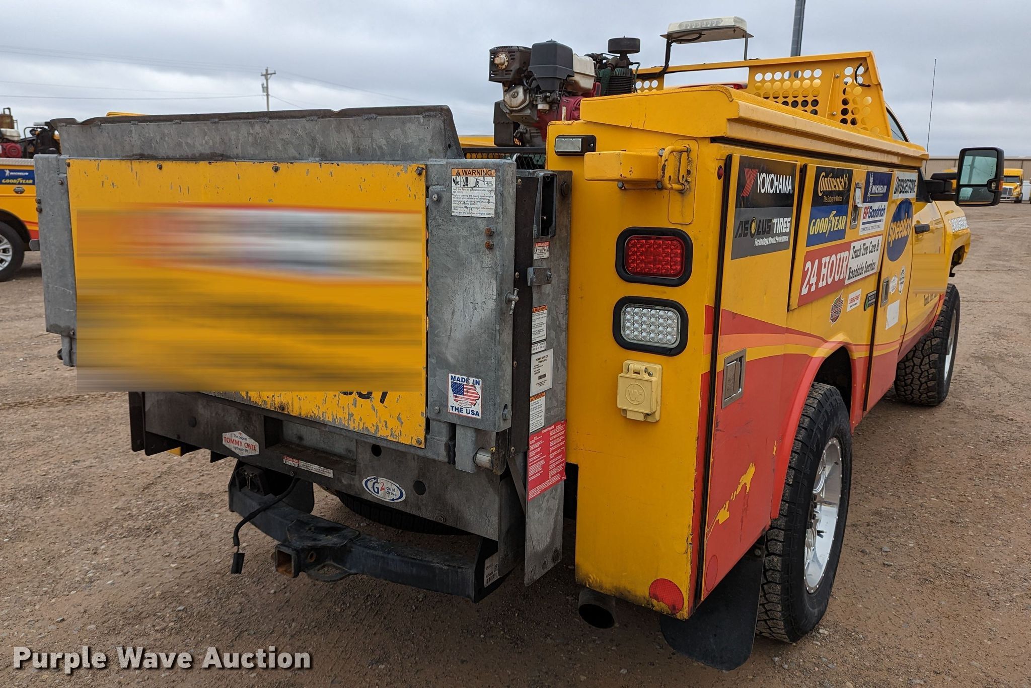 2017 Chevrolet Silverado 3500HD utility bed pickup truck. Miles: 111,648 on odometer, VIN: 1GB0KYEG9HZ181707. Engine Displacement: 6.0L V8 OHV, Cylinders: 8, Fuel type: Gas. Transmission Automatic, Four wheel drive. Interior AC, Heat, Power windows, Power locks, Cruise control. Features Utility bed Reading, 8' L, Tommy Gate liftgate Capacity: 1,300 lbs, Champion air compressor, Fill-Rite fuel tank Pump, Hose, Nozzle. Tires Front: LT275/70R18. Notes Windshield chipped or cracked, Collision damage, Airbags deployed. Oklahoma title. Title distribution may be delayed up to 30 days from verification of funds. 10220 W Reno Ave. Oklahoma City, OK 73127