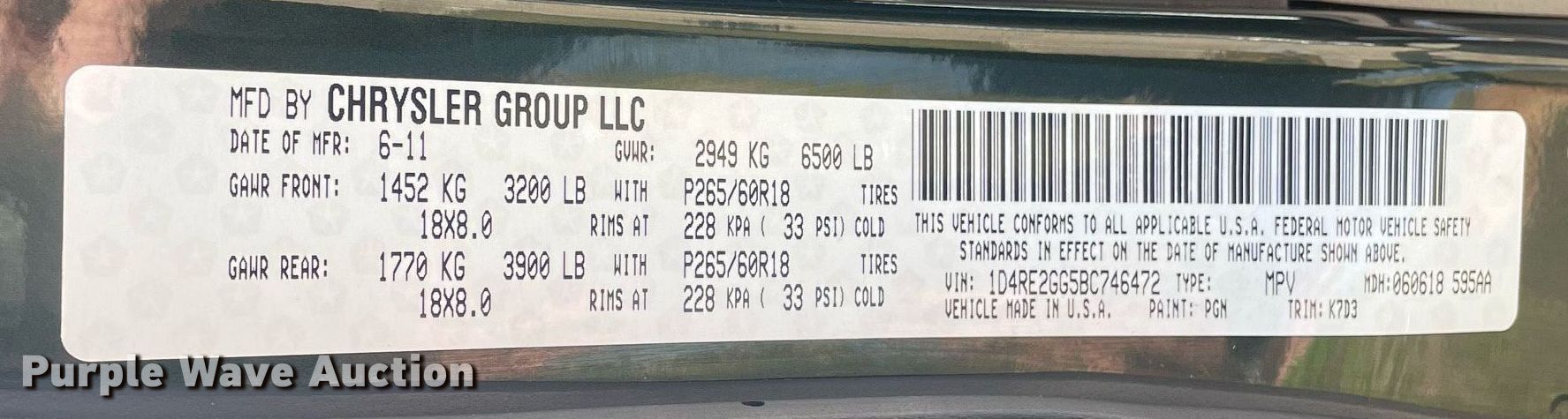 Purple Wave is selling a used Passenger Vehicle in Oklahoma. This item is a 2011 Dodge Durango SUV with the following: Miles: 167,551 on odometer, VIN: 1D4RE2GG5BC746472