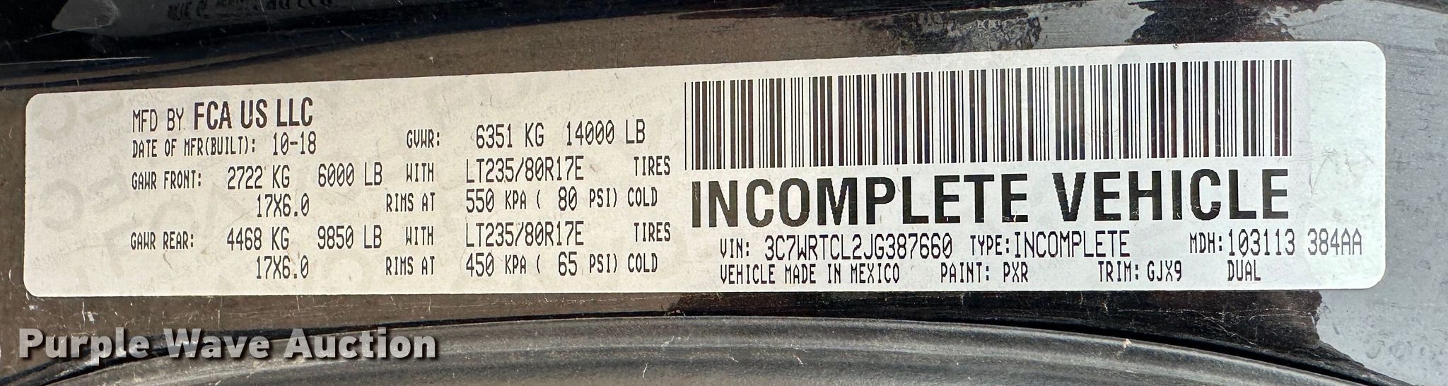 Purple Wave is selling a used 3/4 or 1 Ton Pickup or Van in Kansas. This item is a 2018 Dodge Ram 3500 Crew Cab flatbed pickup truck with the following: Miles: 161,805 on odometer, VIN: 3C7WRTCL2JG387660