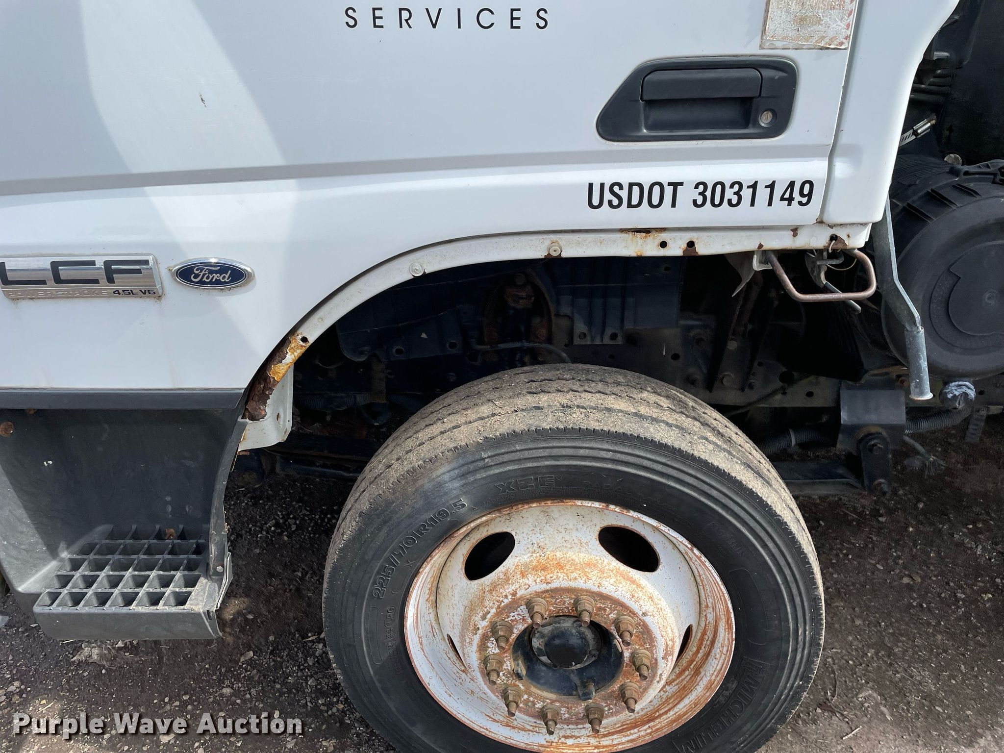 2008 Ford LCF flatbed truck. Miles: 197,772 on odometer, VIN: 3FRLL45Z38V090172. Engine International A200, Serial: 8NVXH0275AGA, Displacement: 4.5L, Cylinders: 6, Fuel type: Diesel. Transmission Automatic. Chassis Axles: Single, Suspension: Spring, Brakes: Hydraulic, GVWR: 16,000 lbs, Wheelbase: 115". Interior AC, Heat, Power windows. Features Flatbed 11' L x 86" W, Hitch: Gooseneck. Tires Size: 225/70R19.5. Notes Non-operational unit. Illinois title. Title distribution may be delayed up to 14 days from verification of funds. Streets of Chicago Services. 7838 S Union Rd. Huntley, IL 60142