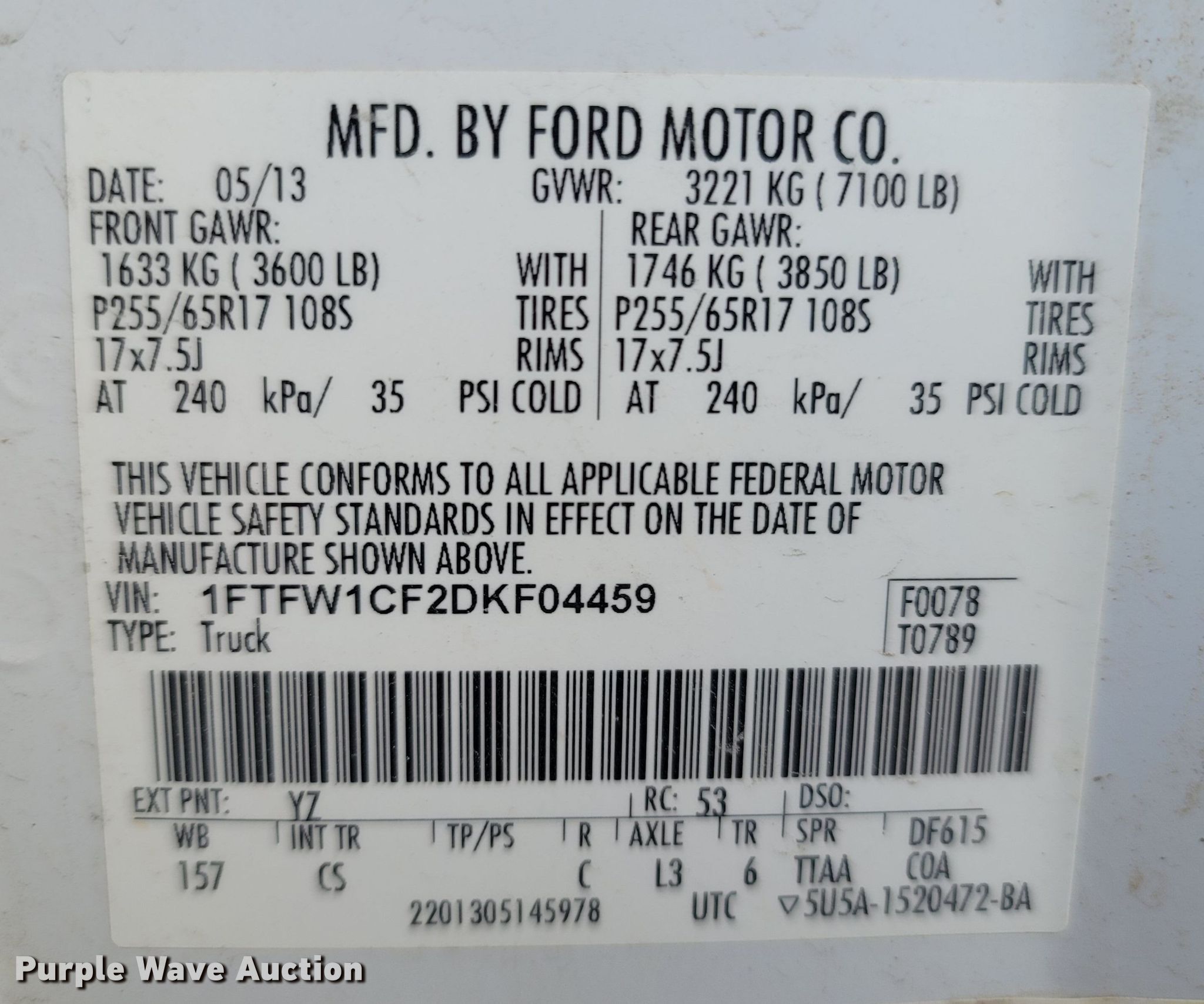 Purple Wave is selling a used 1/2 Ton Pickup or Van in Kansas. This item is a 2013 Ford F150 SuperCrew pickup truck with the following: Miles: 253,364 on odometer, VIN: 1FTFW1CF2DKF04459