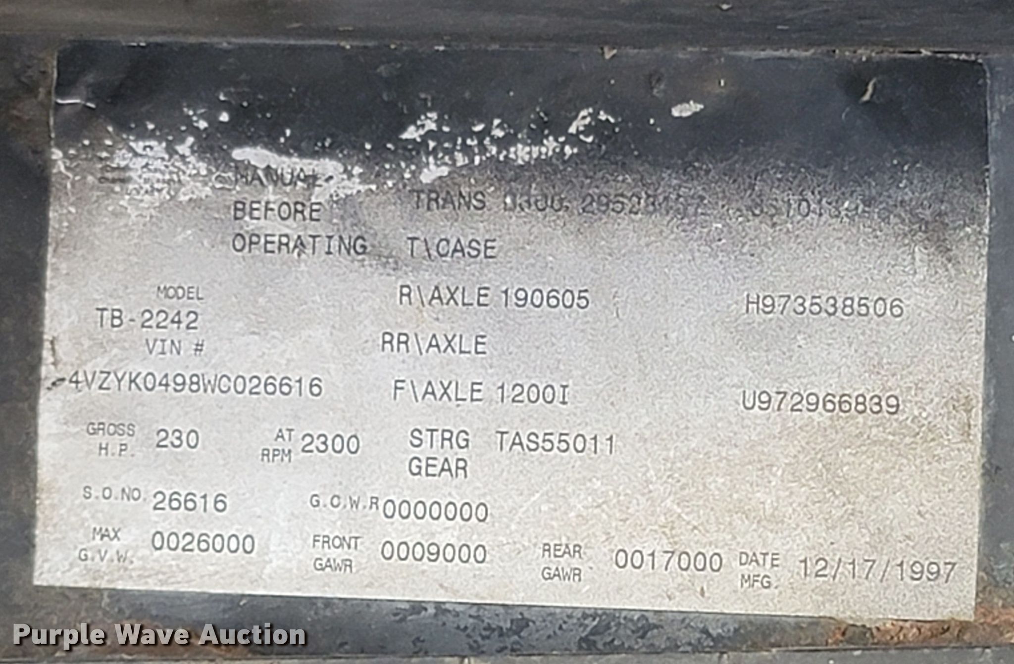 Purple Wave is selling a used Bus in Missouri. This item is a 1998 Metrotrans TB2242 coach bus with the following: Miles: Unknown, VIN: 4VZYK0498WC026616