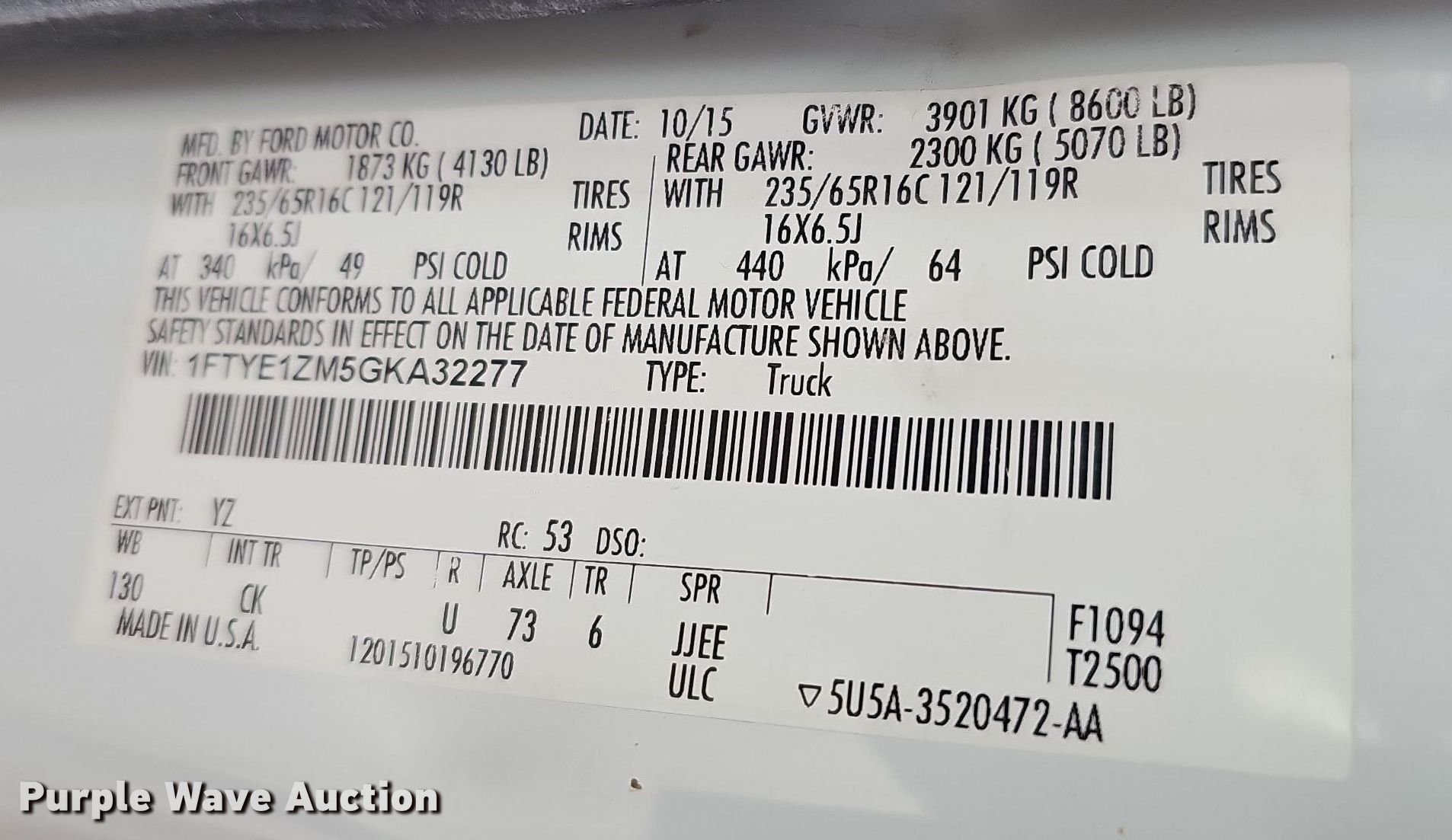 - VIN: 1FTYE1ZM5GKA32277