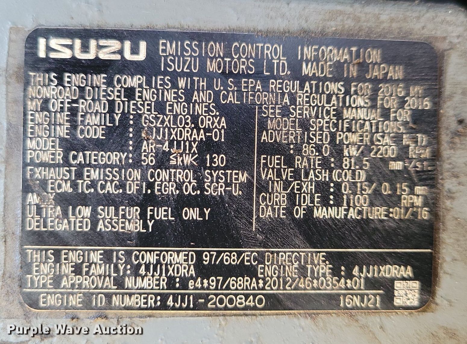 2016 Case CX160D excavator. Hours: 2,967 on meter, Serial: DCH160R7NGE7F1108. Engine Isuzu AR-4JJ1X, Serial: 4JJ1-200840, Displacement: 3.0L, Cylinders: 4, Fuel type: Diesel, HP: 115, kW: 86. Transmission Hydrostatic, Two speed travel. Operators station EROPS, AC, Heat. Features Auxiliary hydraulics Standard, Two-way, Boom Standard, Stick Stick length: 10', Quick coupler: Hydraulic ABS, Bucket BMC, Width: 46", Cutting edge: Weld-on, Teeth: 5. Tracks Width: 28", Steel, Grouser pads: Triple. Mort's Water Co. 1410 Gull Avenue. Latimer, IA 50452