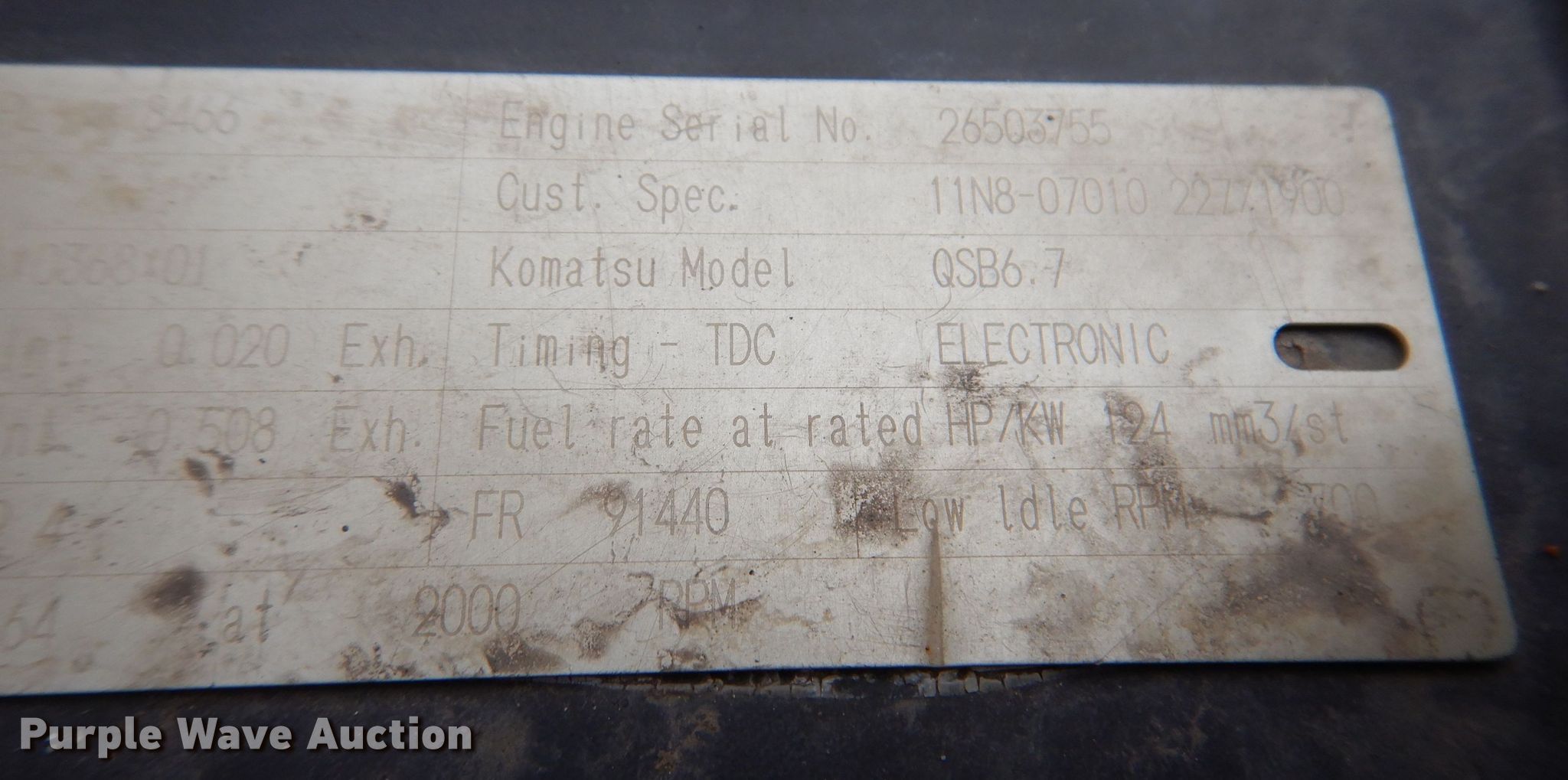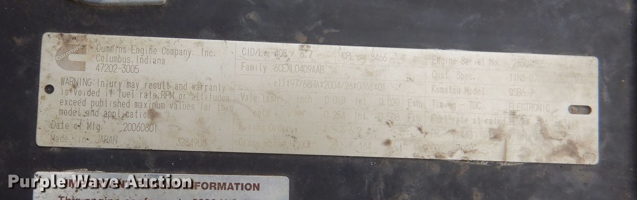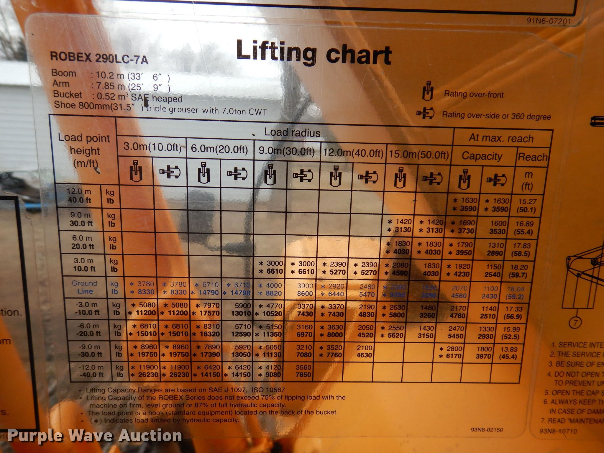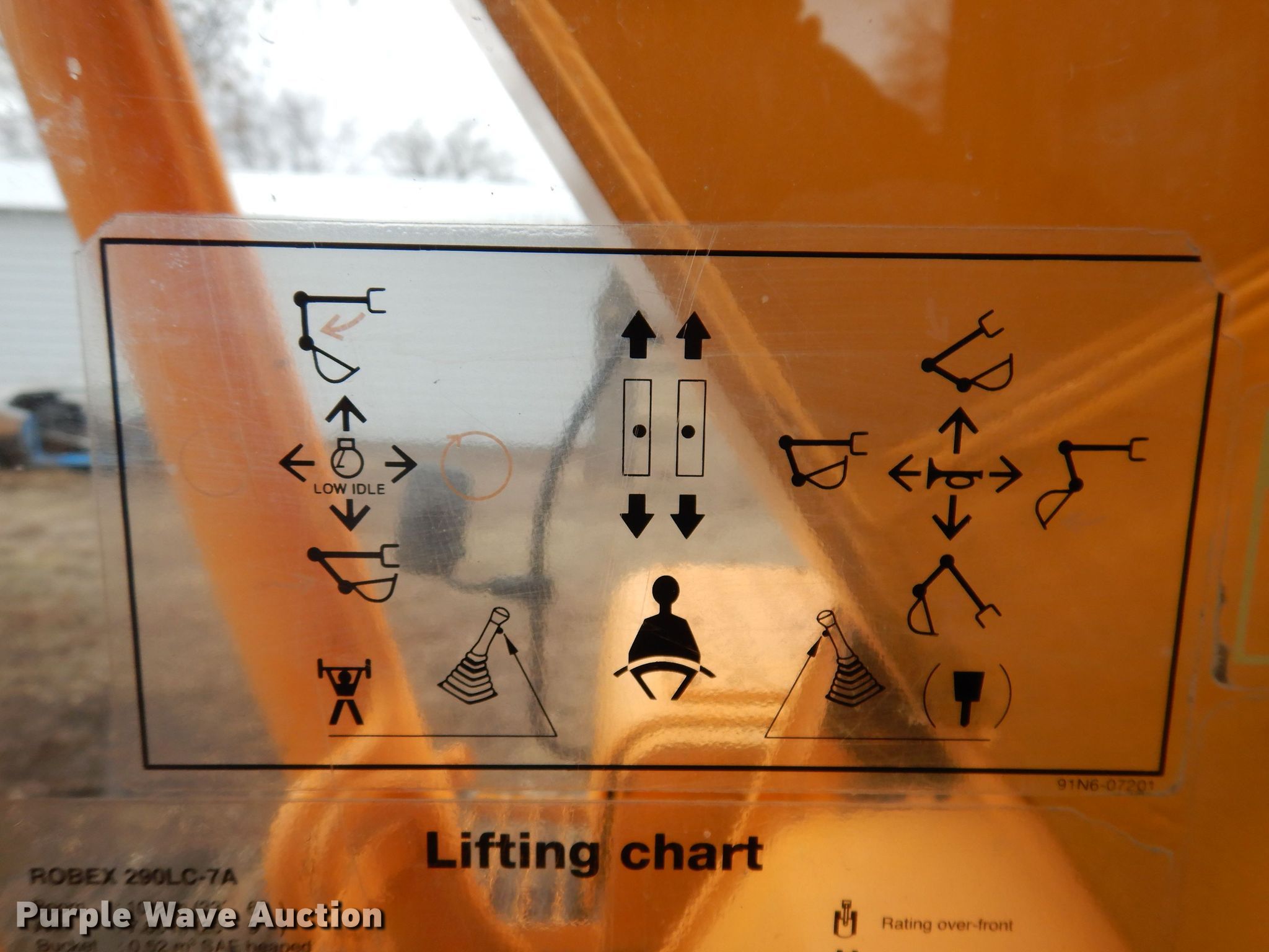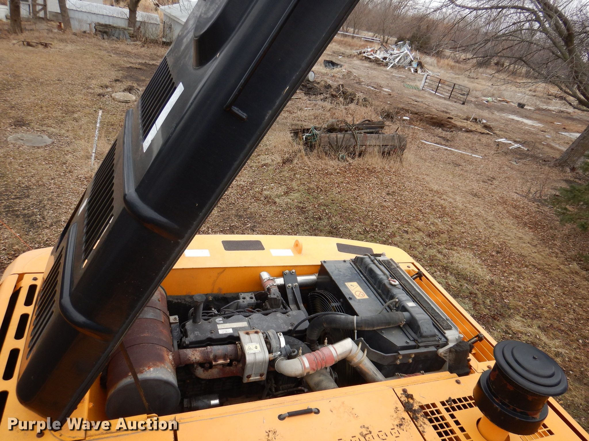 Hyundai 290LC-7A long reach excavator. Hours: 6,314 on meter, Serial: N80710145. Engine Cummins QSB6.7, Serial: 26503755, Displacement: 6.7L, Cylinders: 6, Fuel type: Diesel, HP: 220, kW: 164. Transmission Hydrostatic. Operators station Enclosed cab, AC, Heat. Features Counter weights, Boom Standard, Stick Stick length: 26', Long reach, Bucket Width: 60". Tracks Width: 32", Steel, Grouser pads: Triple. Martin Hildreth Co. Rockwell City, IA 50579