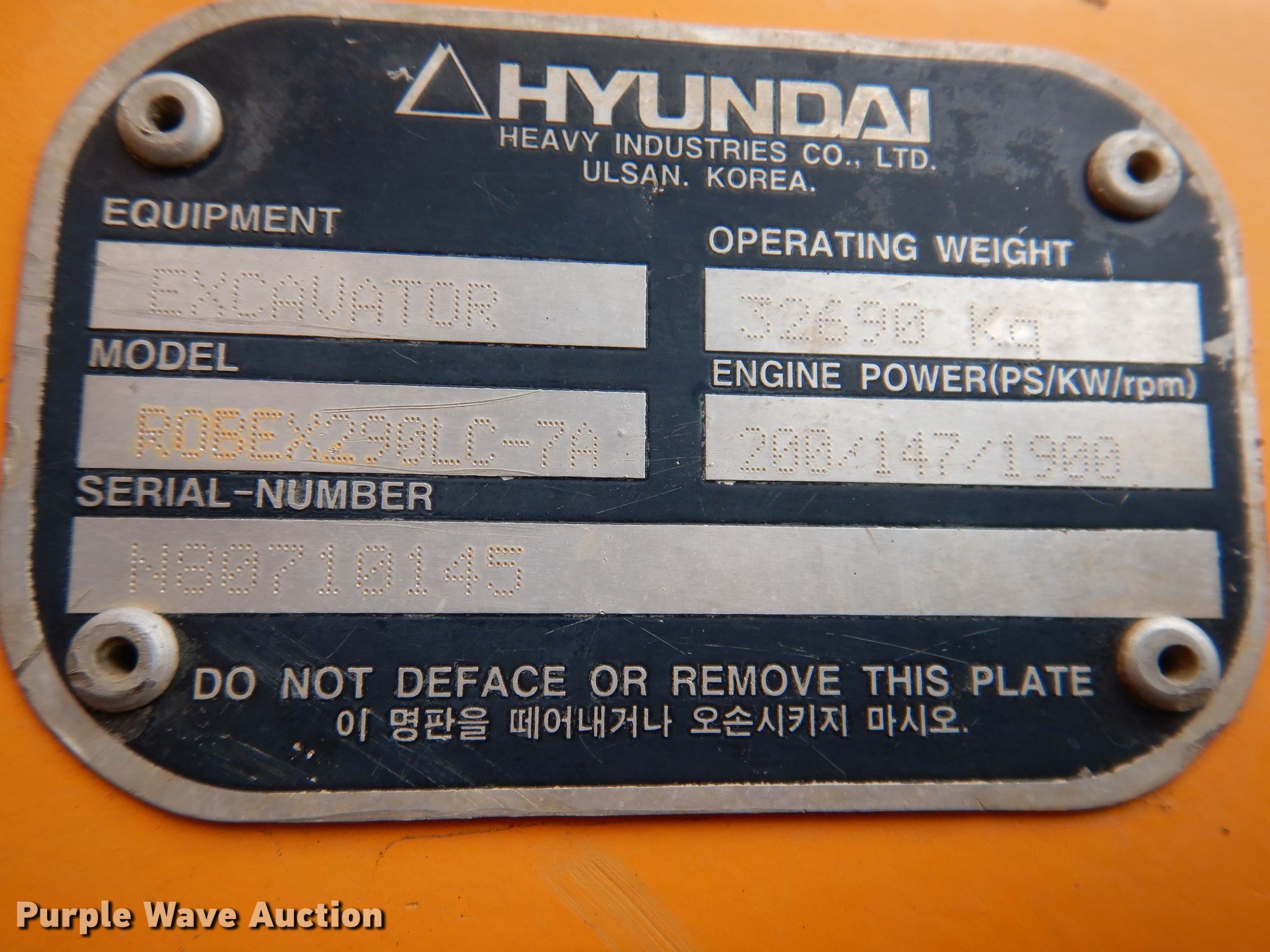Purple Wave is selling a used Hydraulic Excavator in Iowa. This item is a Hyundai 290LC-7A long reach excavator with the following: Hours: 6,314 on meter, Serial: N80710145