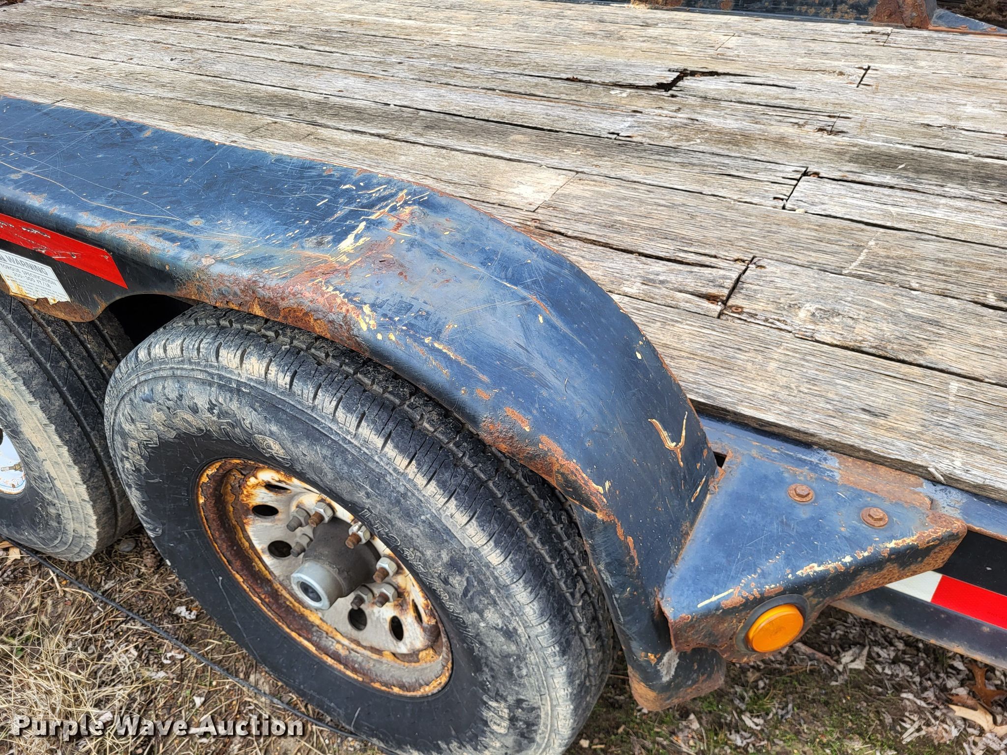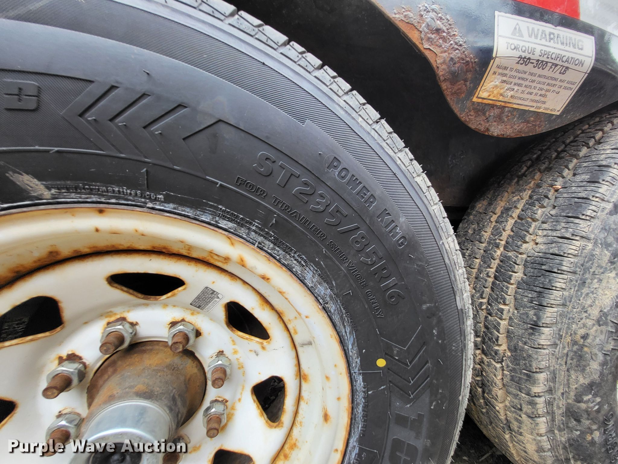 2013 Trail King TK14U equipment trailer. VIN: 1TKU02020DR019950, Unit #: TL-146. Dimensions Overall: 26' 9" L x 101" W, Deck: 20' L x 81" W, Deck height: 25", Ramps: Manual Length: 77". Features Deck type: Wood. Chassis Ball hitch: 2 5/16", Landing gear: Single, Brakes: Electric, Axles: Tandem, Sliding, GVWR: 18,200 lbs. Tires Steel wheels, Size: ST235/85R16. Missouri title. Title distribution may be delayed up to 14 days from verification of funds. 1505 Dale St. Salem, MO 65560